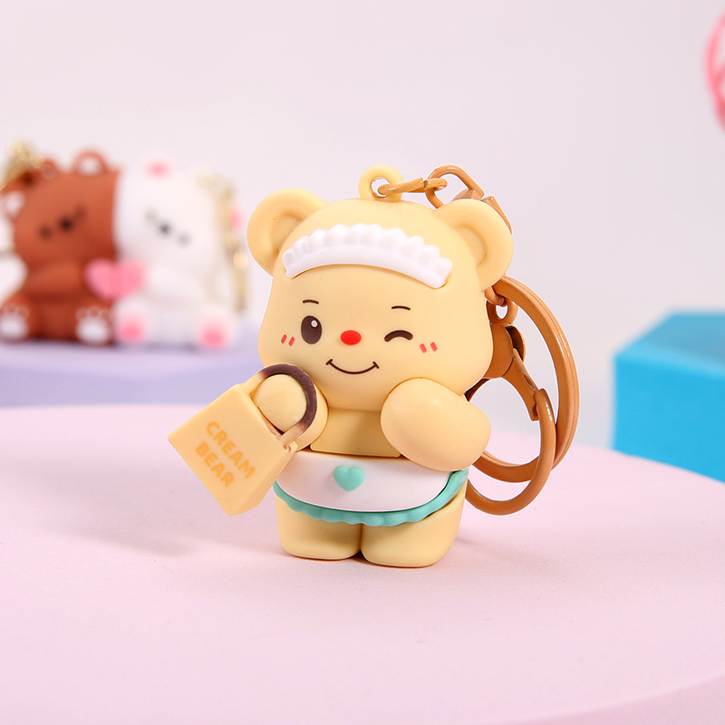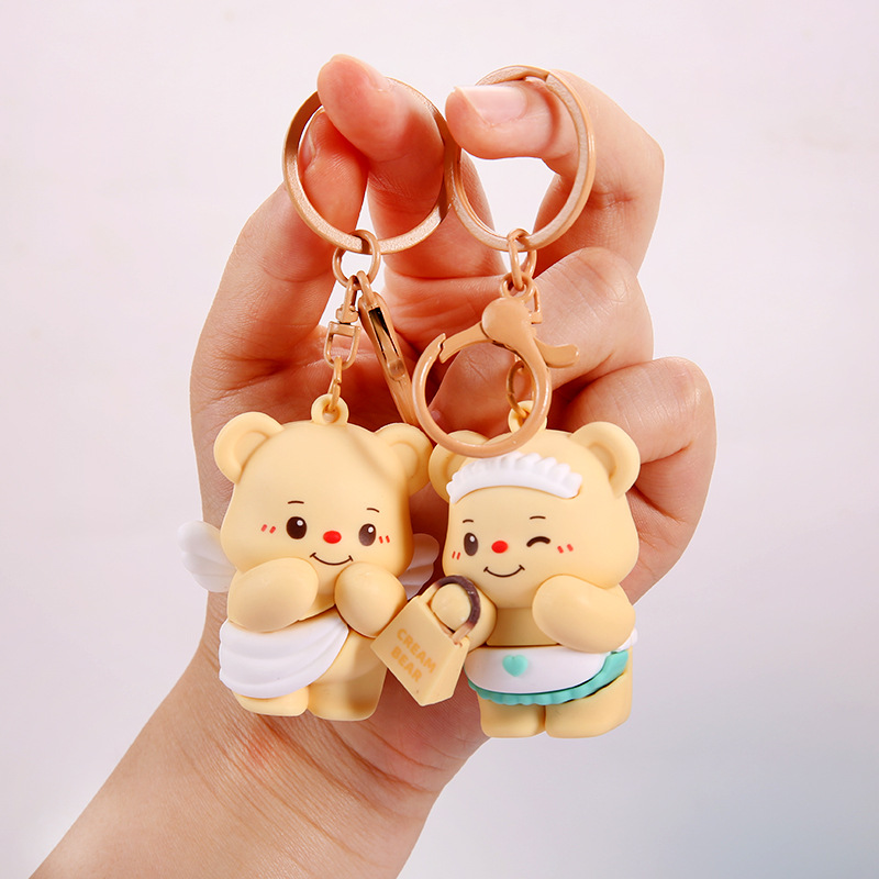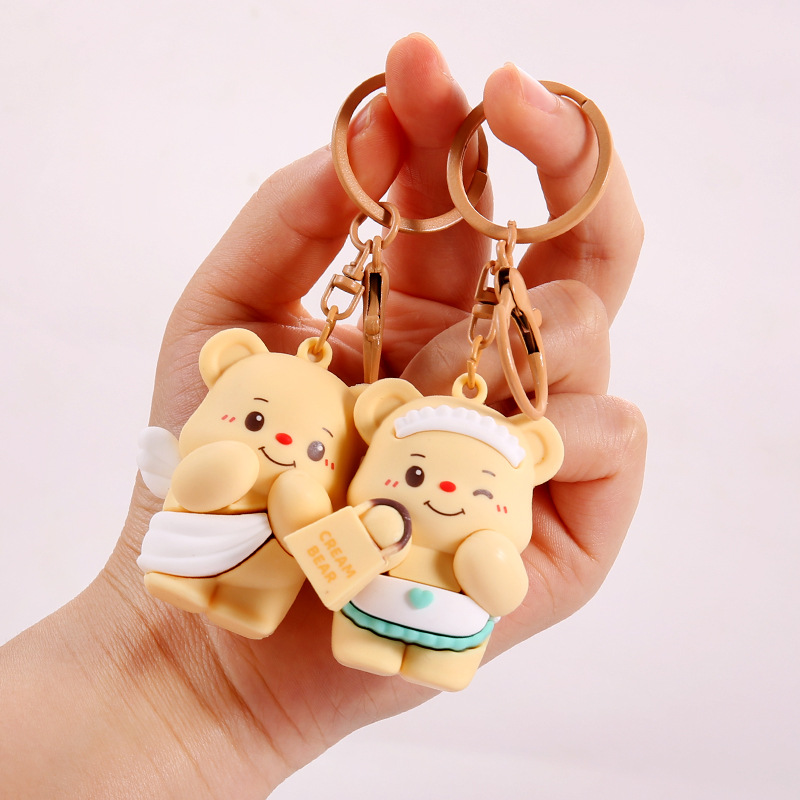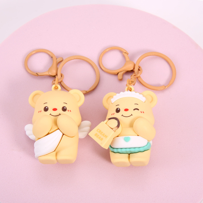 귀여운 만화 버터곰 자동차 열쇠고리 인형, 창의적이고 사랑스러운 가방 장식, 커플을 위한 작은 선물 장식품