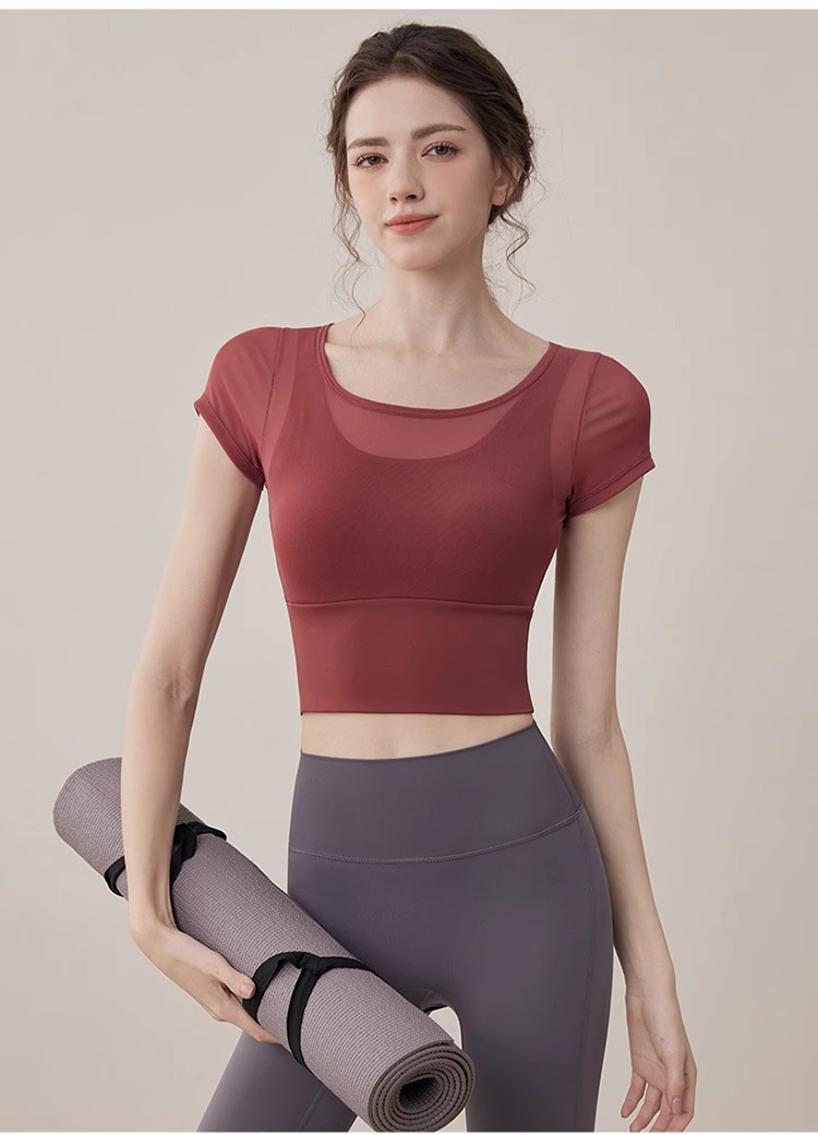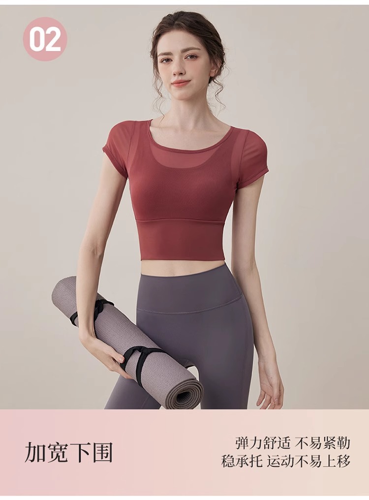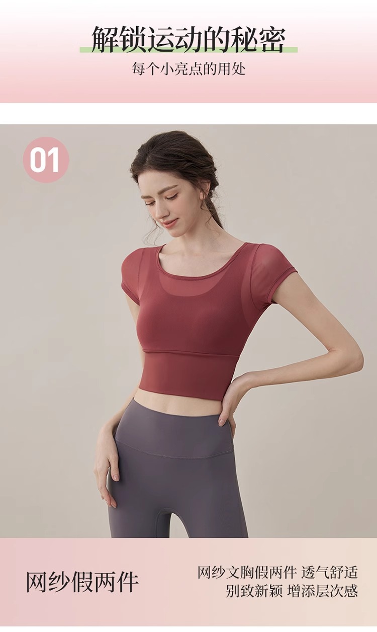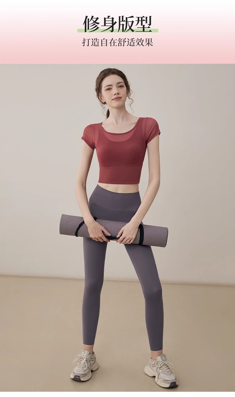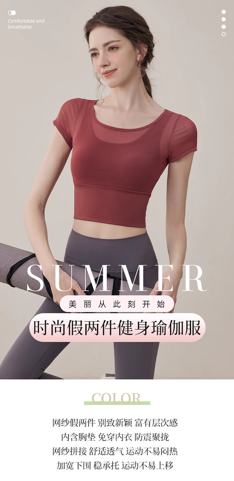 여성용 요가복, 페이크 투피스 여름 신작, 가볍고 통기성이 뛰어난 스포츠 반팔 올인원 필라테스 피트니스 트레이닝복스토어 가기