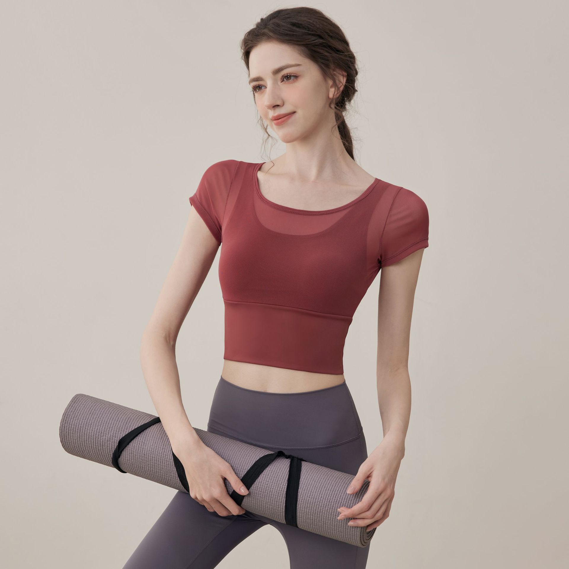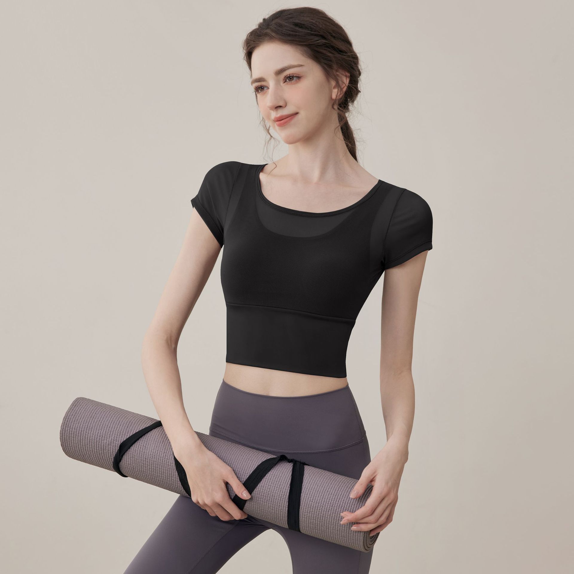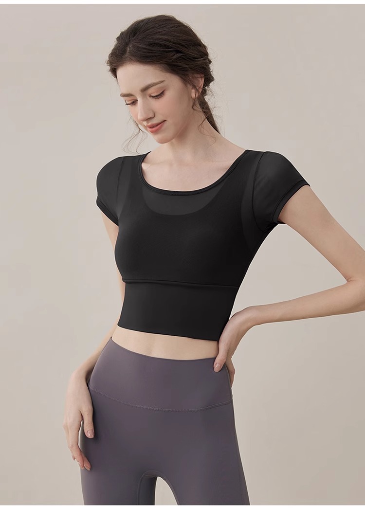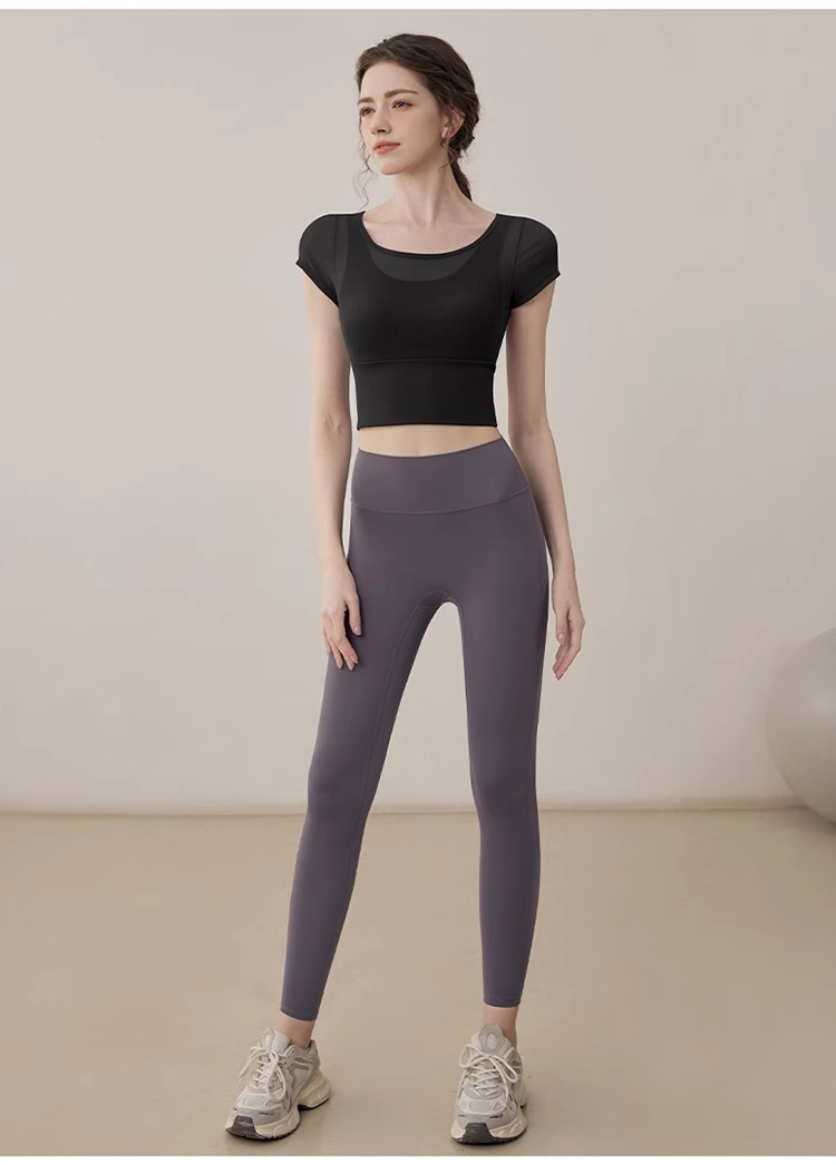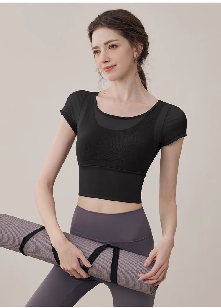 여성용 요가복, 페이크 투피스 여름 신작, 가볍고 통기성이 뛰어난 스포츠 반팔 올인원 필라테스 피트니스 트레이닝복스토어 가기