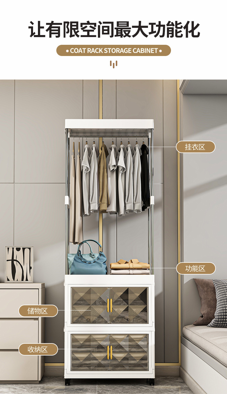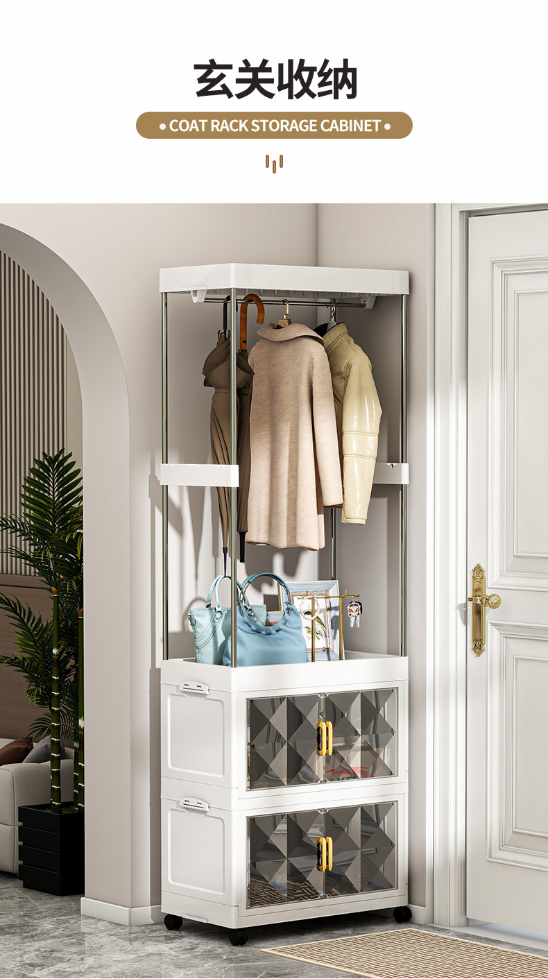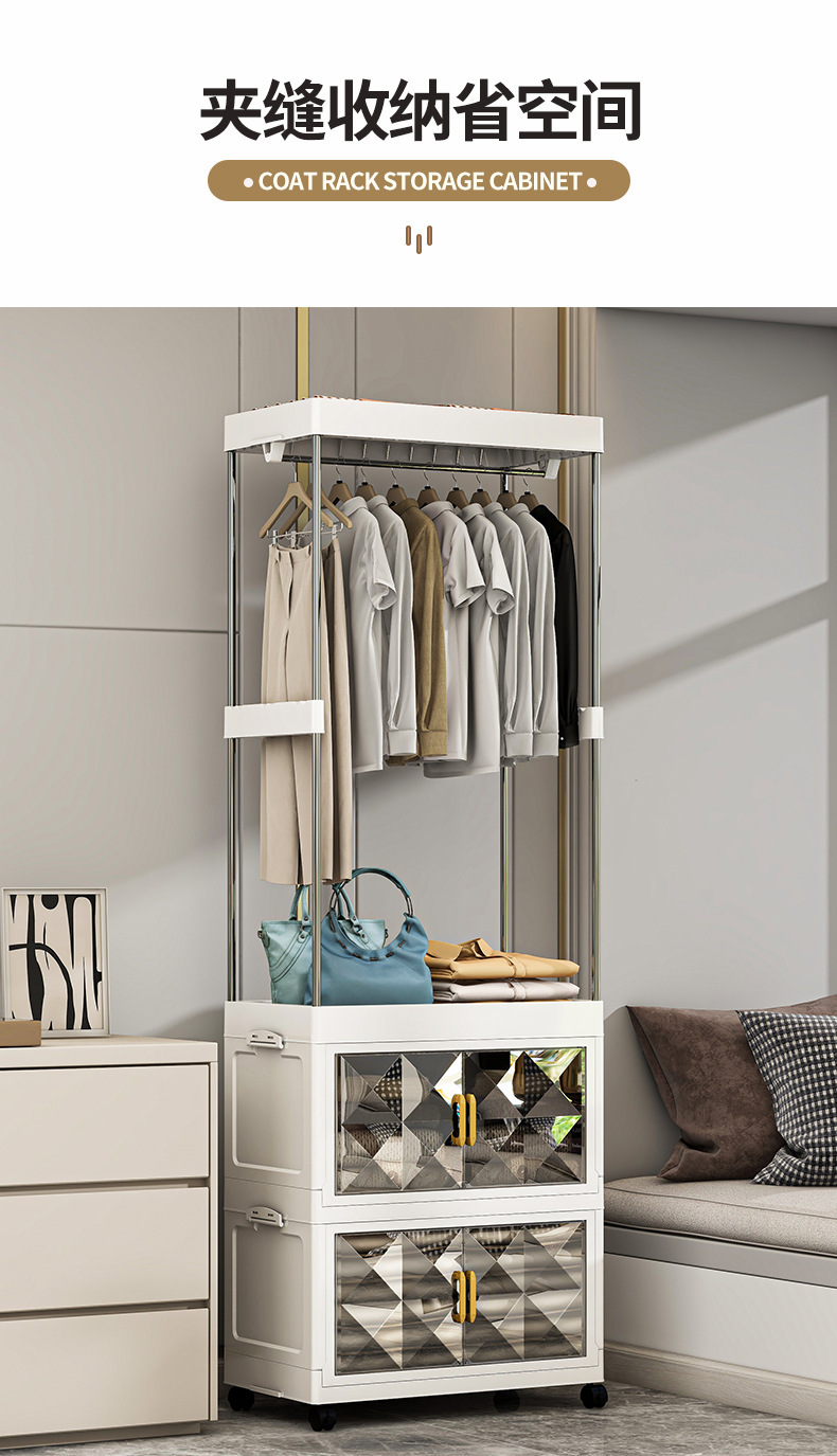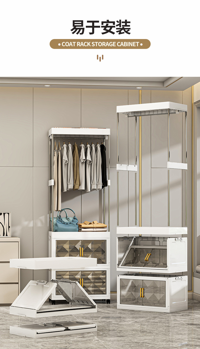 가정용 코트 랙 바닥 설치가 필요없는 접이식 옷장 침실 다기능 옷걸이 사물함 옷장 보관 캐비닛스토어 가기