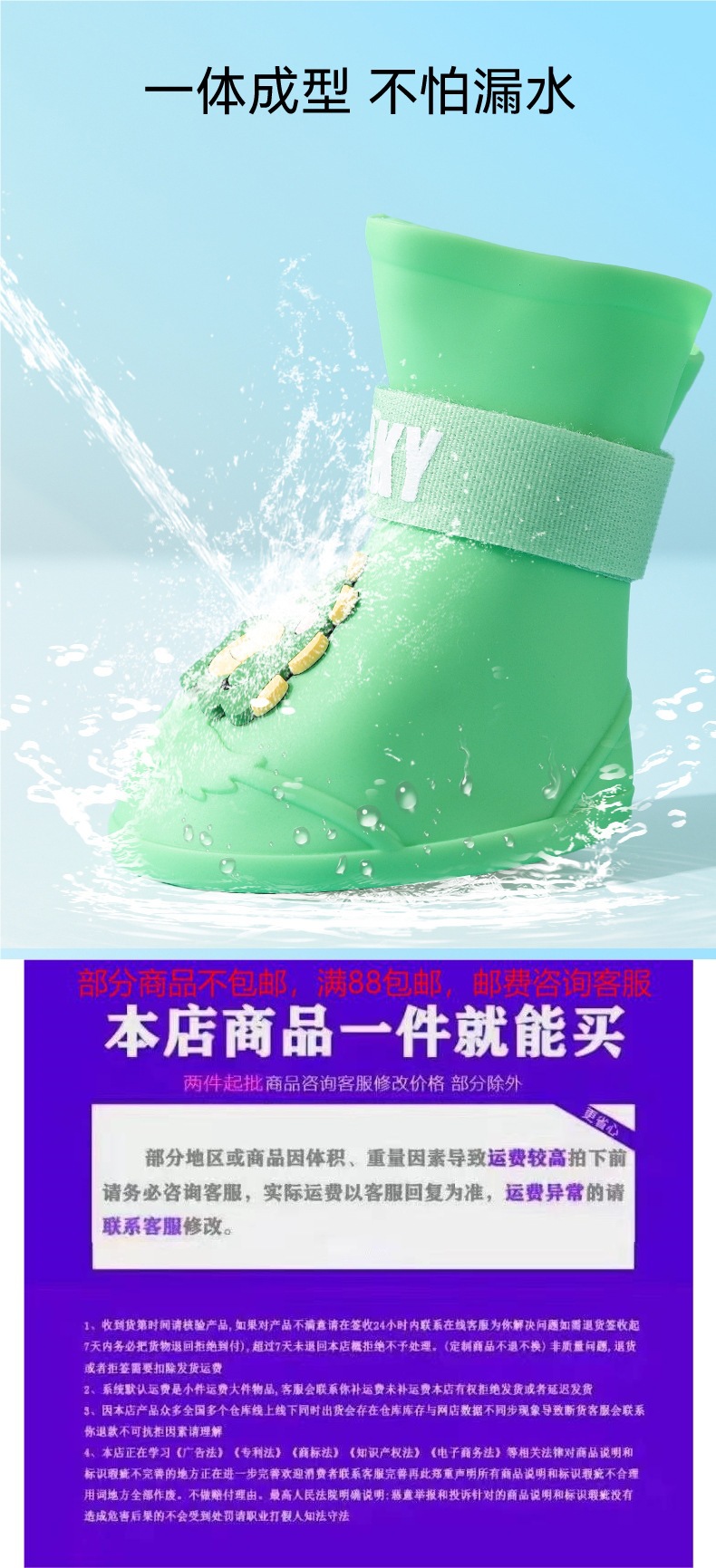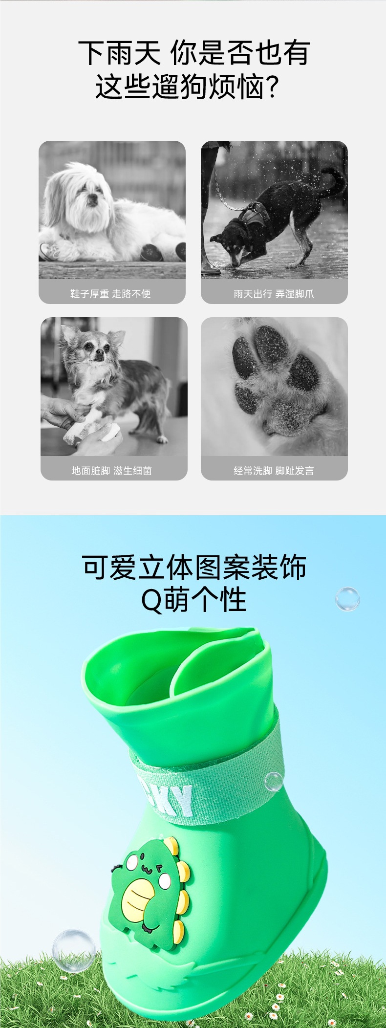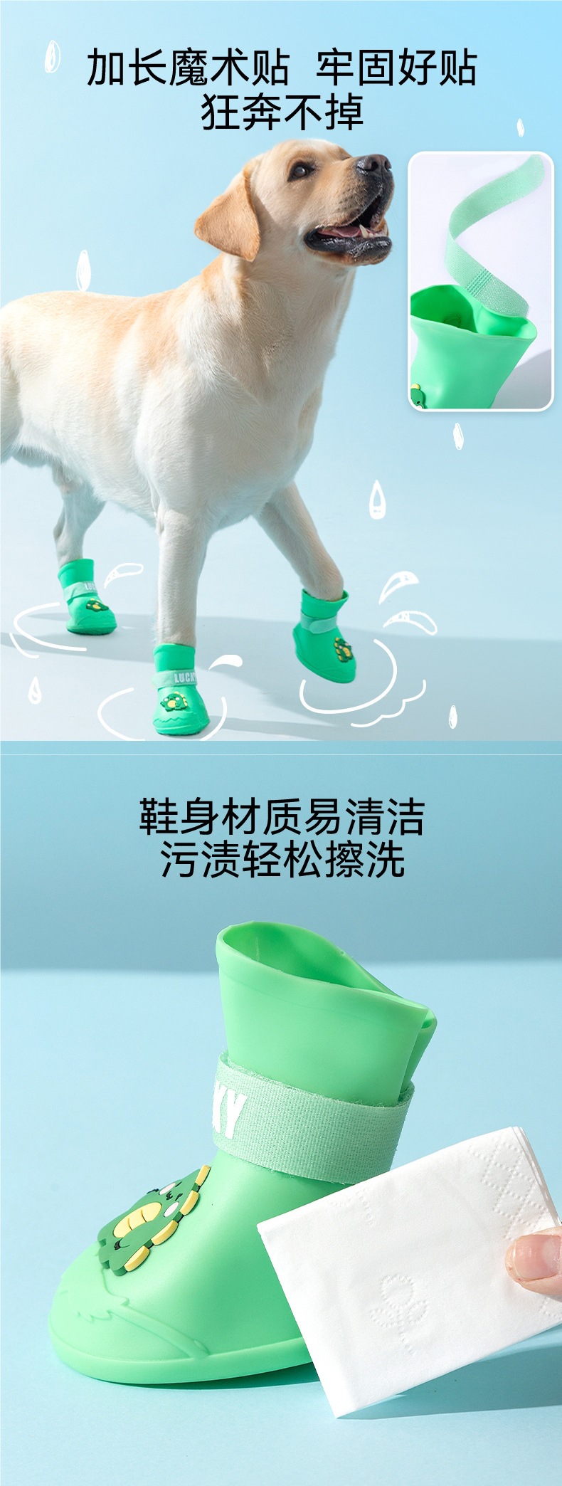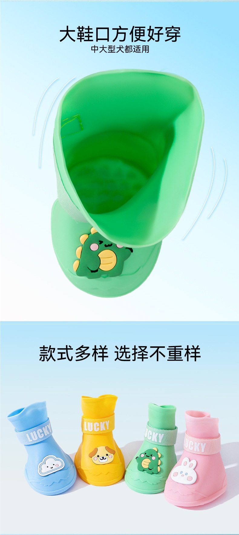 황금 애완견 미끄럼 방지 대형 개 실리콘 만화 외출 장화 비오는 날 내마모성 방수 개 모피 대형 개 신발스토어 가기