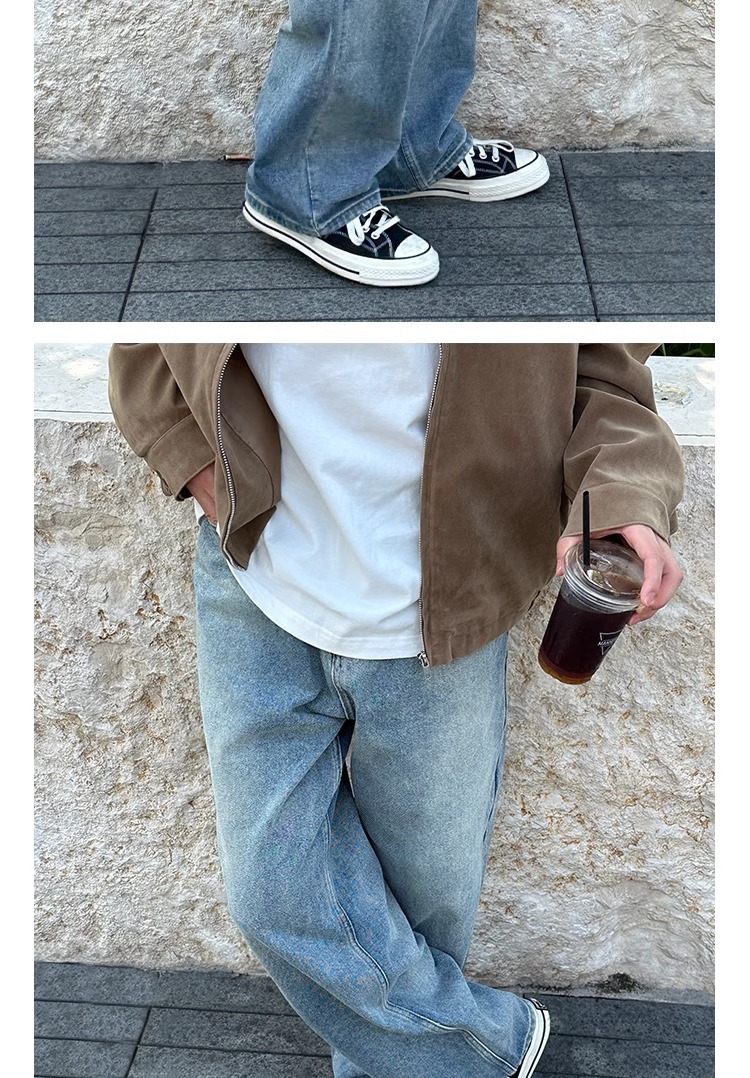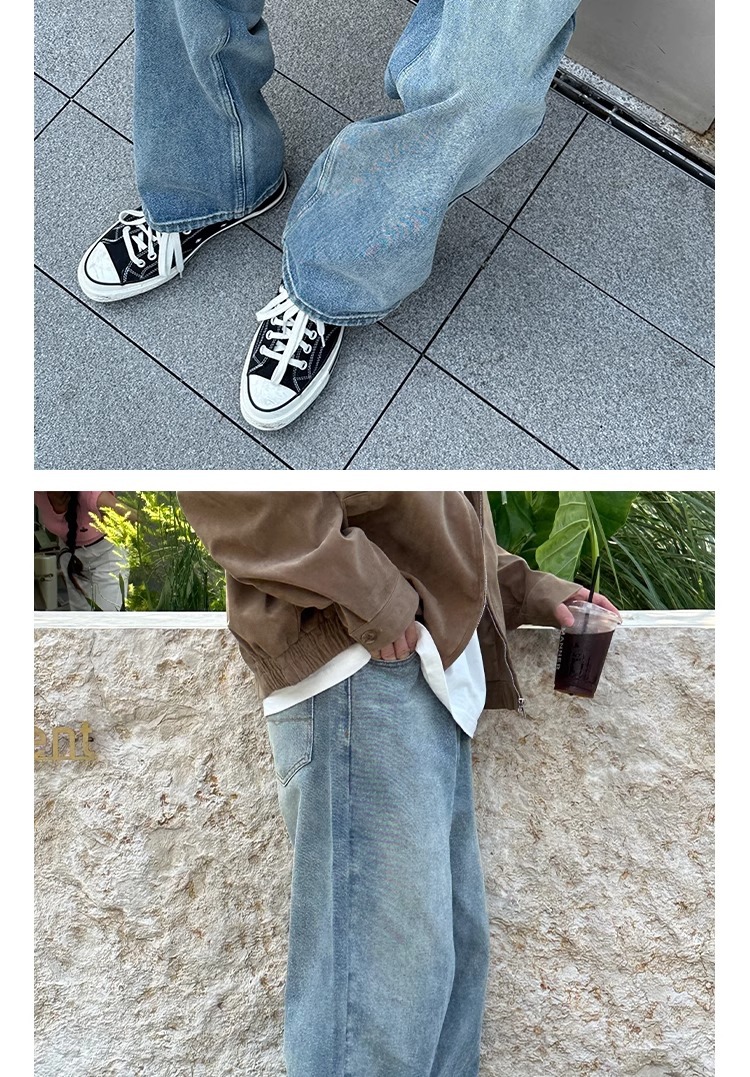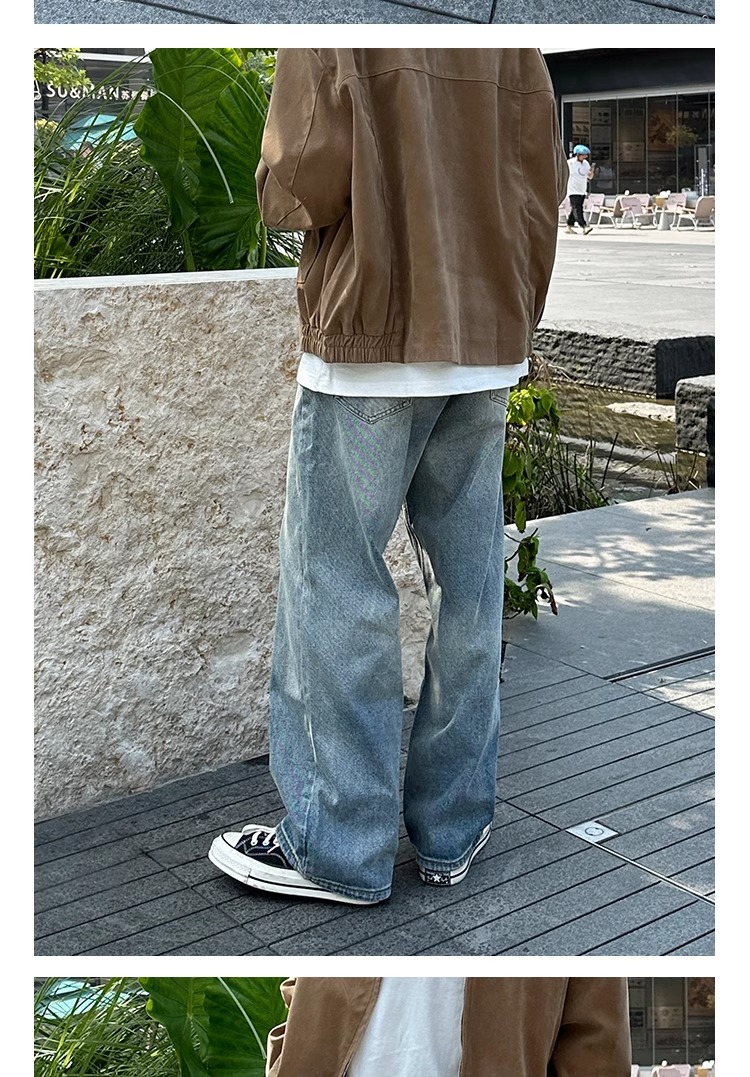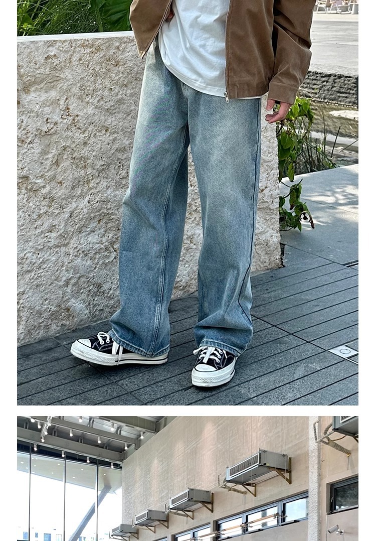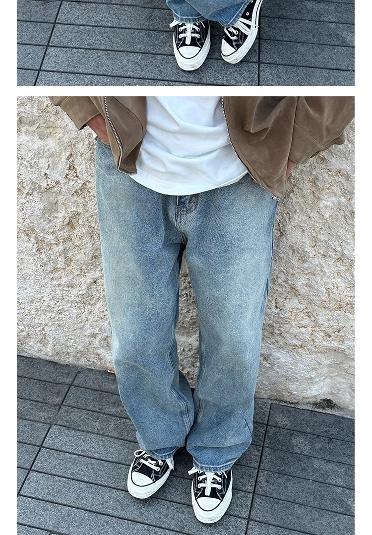 워싱 블루 진 남성 스트레이트 루즈 와이드 레그 아메리칸 하이 스트리트 팬츠 트렌디하고 활용도가 높은 심플 캐주얼 팬츠스토어 가기