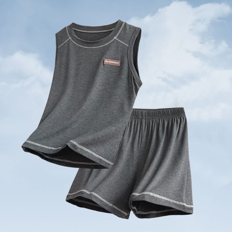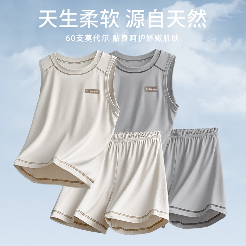 모달 아동 잠옷, 여름용 얇은 남아 조끼, 가정복 세트, 큰 아동 및 여아용 캐주얼 에어컨 의류스토어 가기