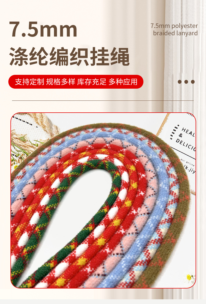 7.5mm 폴리에스터 브레이드 스트랩, 맞춤형 DIY 휴대폰 스트랩, 크로스바디 스트랩, 야외용 휴대폰 목걸이 스트랩, 컬러풀한 코어 스트랩