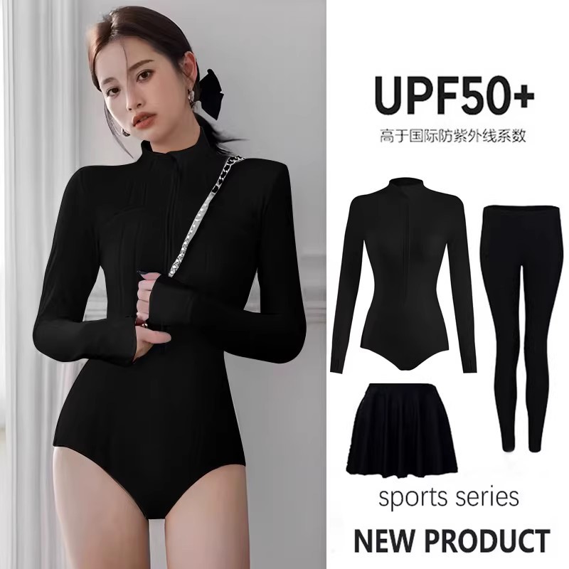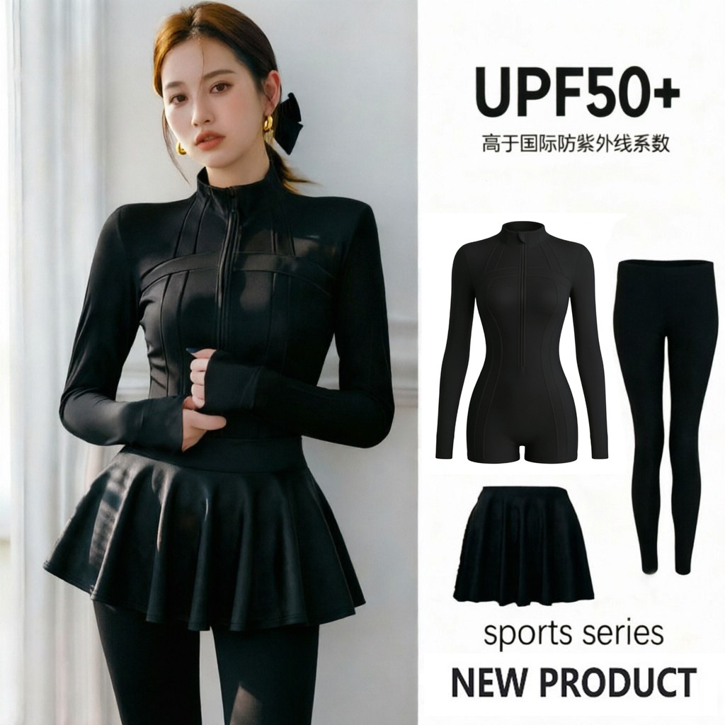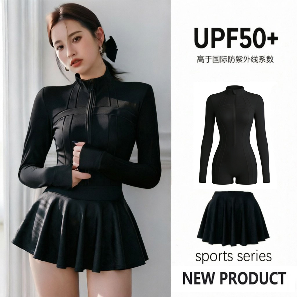 • 검정색 원피스 사각 수영복 + 스커트