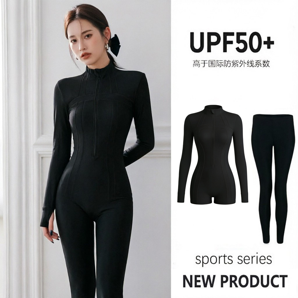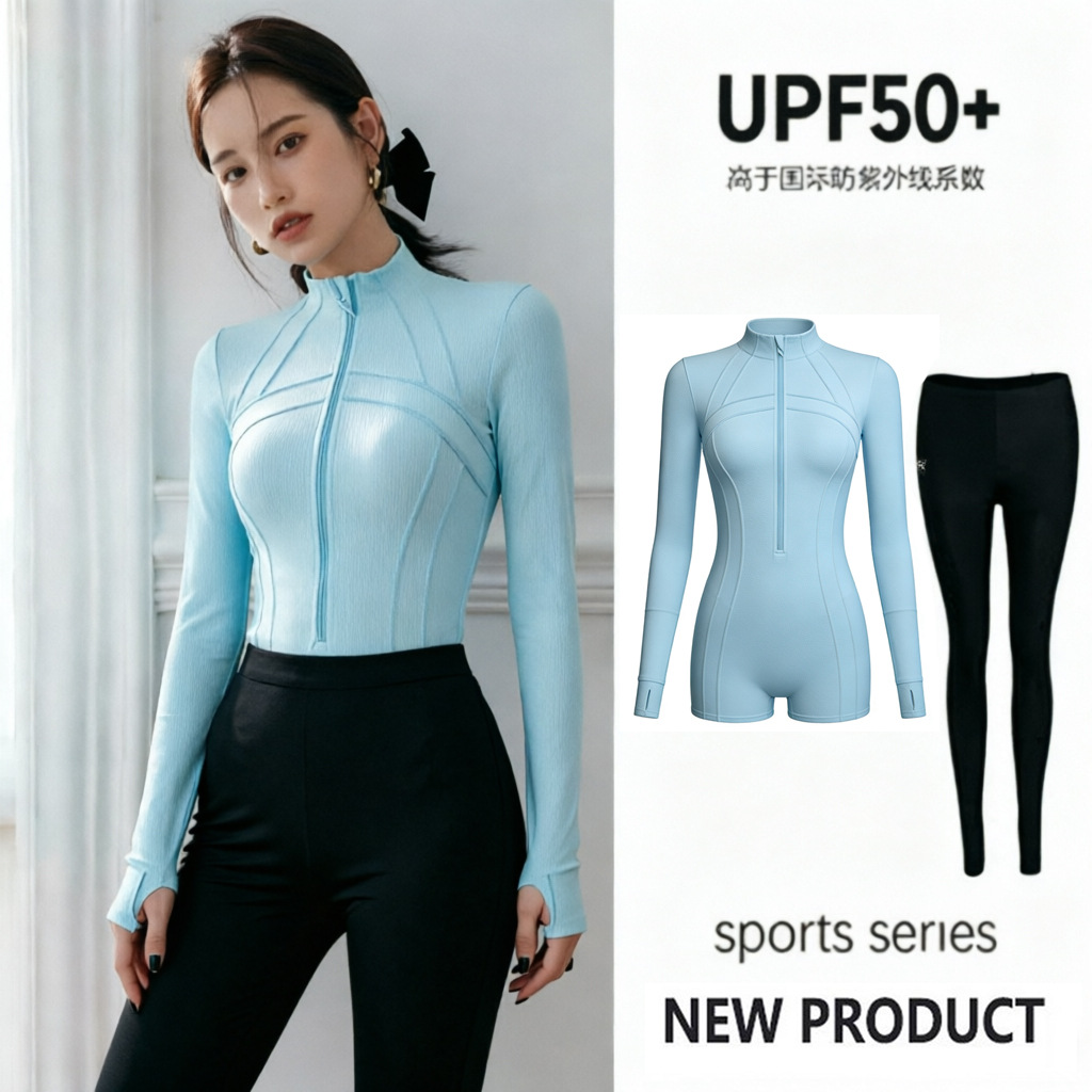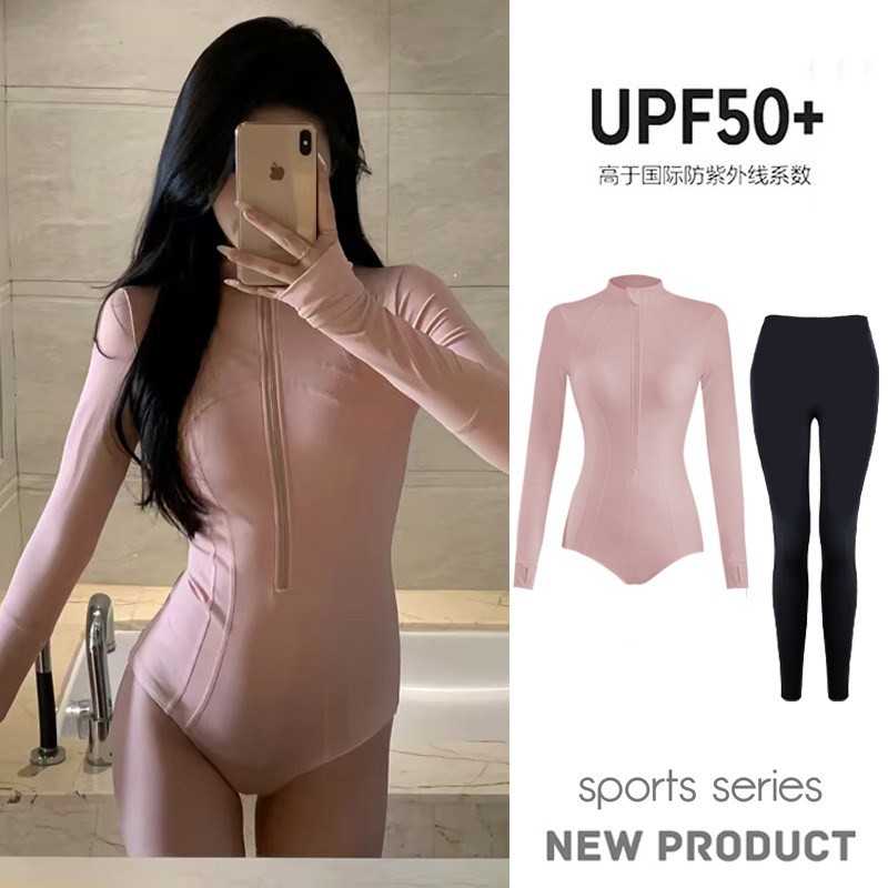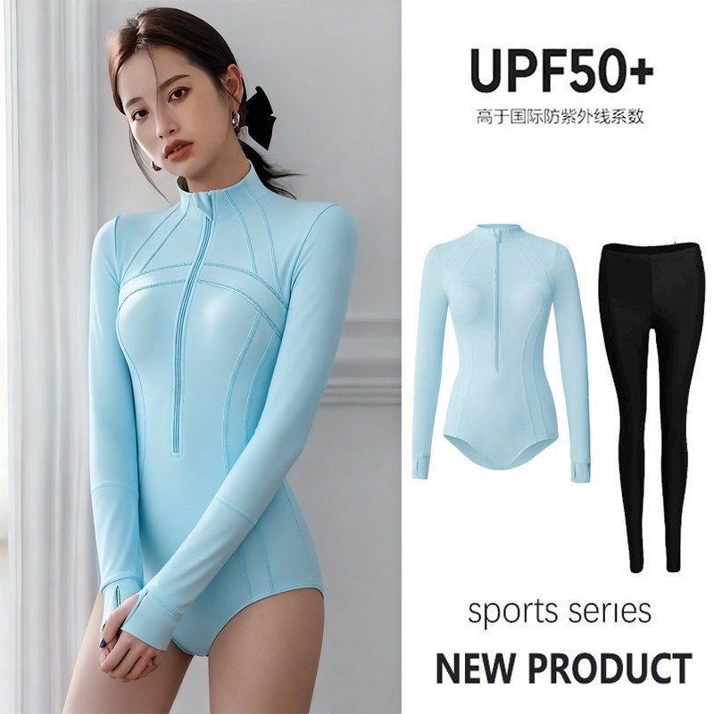 여성용 웨이브 서핑 하이넥 수영복, 긴팔 바지, 전문 자외선 차단 UPF50+ 원피스 속건 잠수복, 해파리 슈트