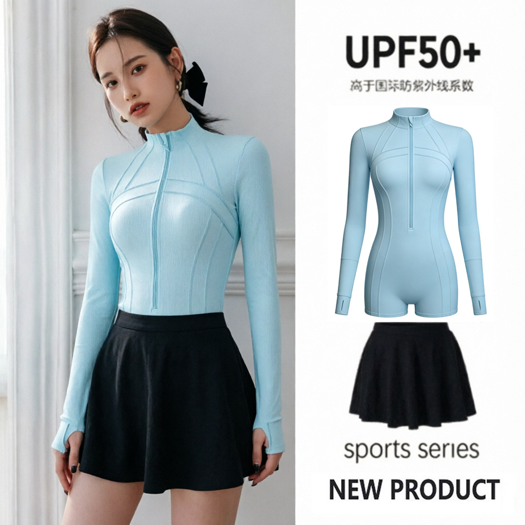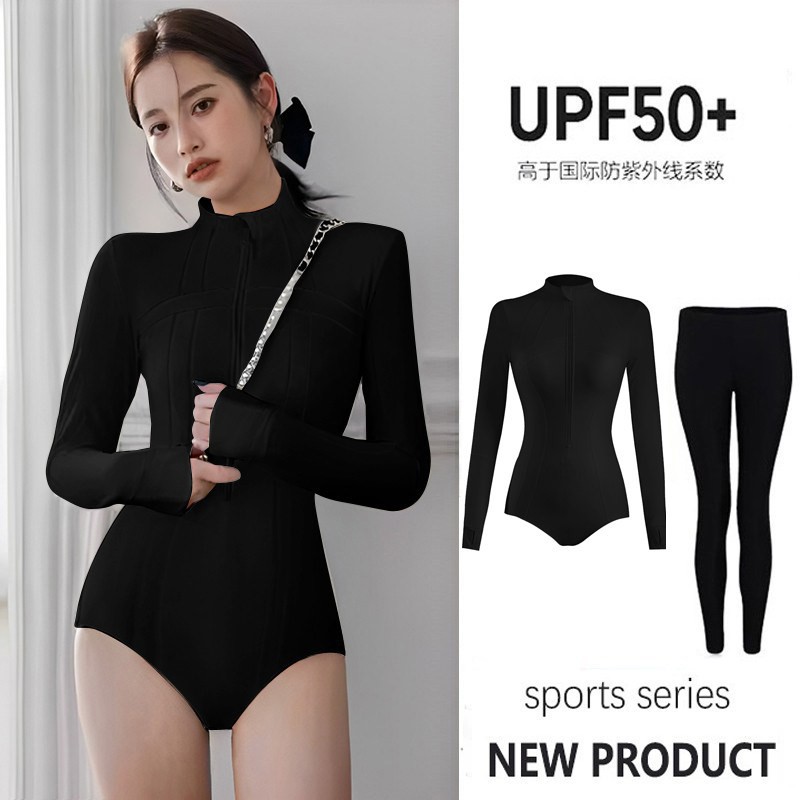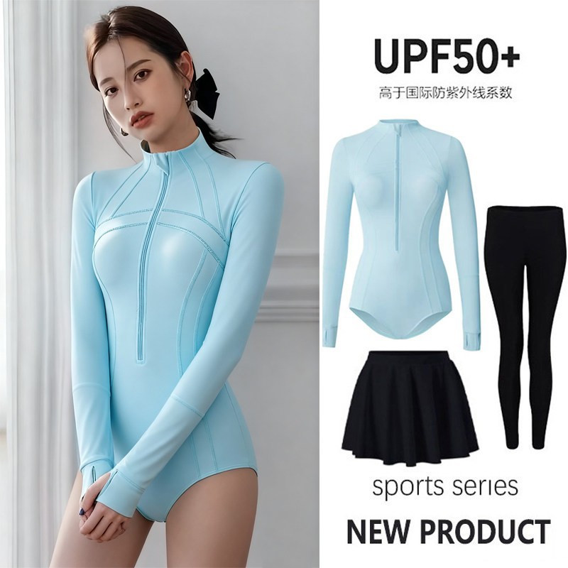 여성용 웨이브 서핑 하이넥 수영복, 긴팔 바지, 전문 자외선 차단 UPF50+ 원피스 속건 잠수복, 해파리 슈트스토어 가기