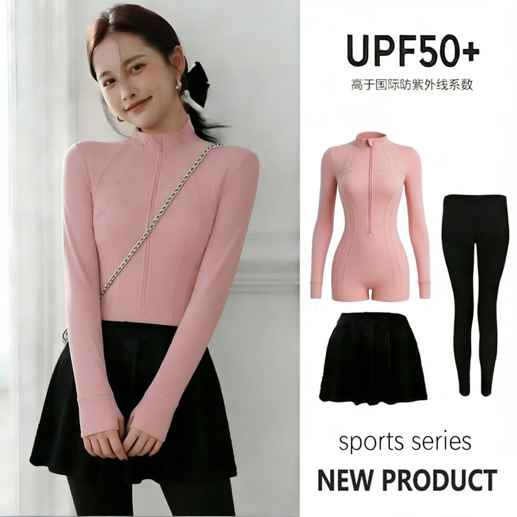 • 핑크색 수영복 + 바지 + 스커트