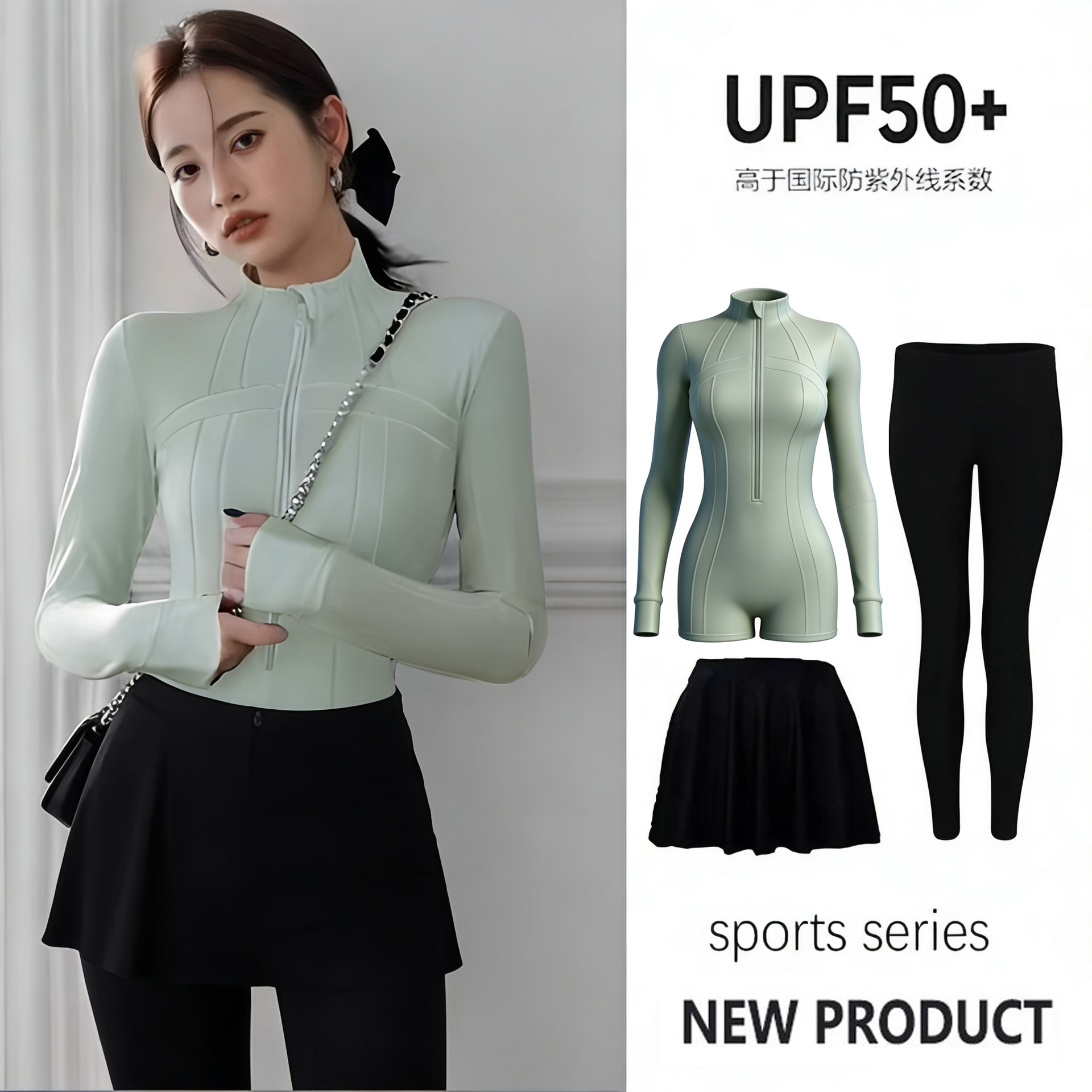 • 연두색 점프수트 + 스커트