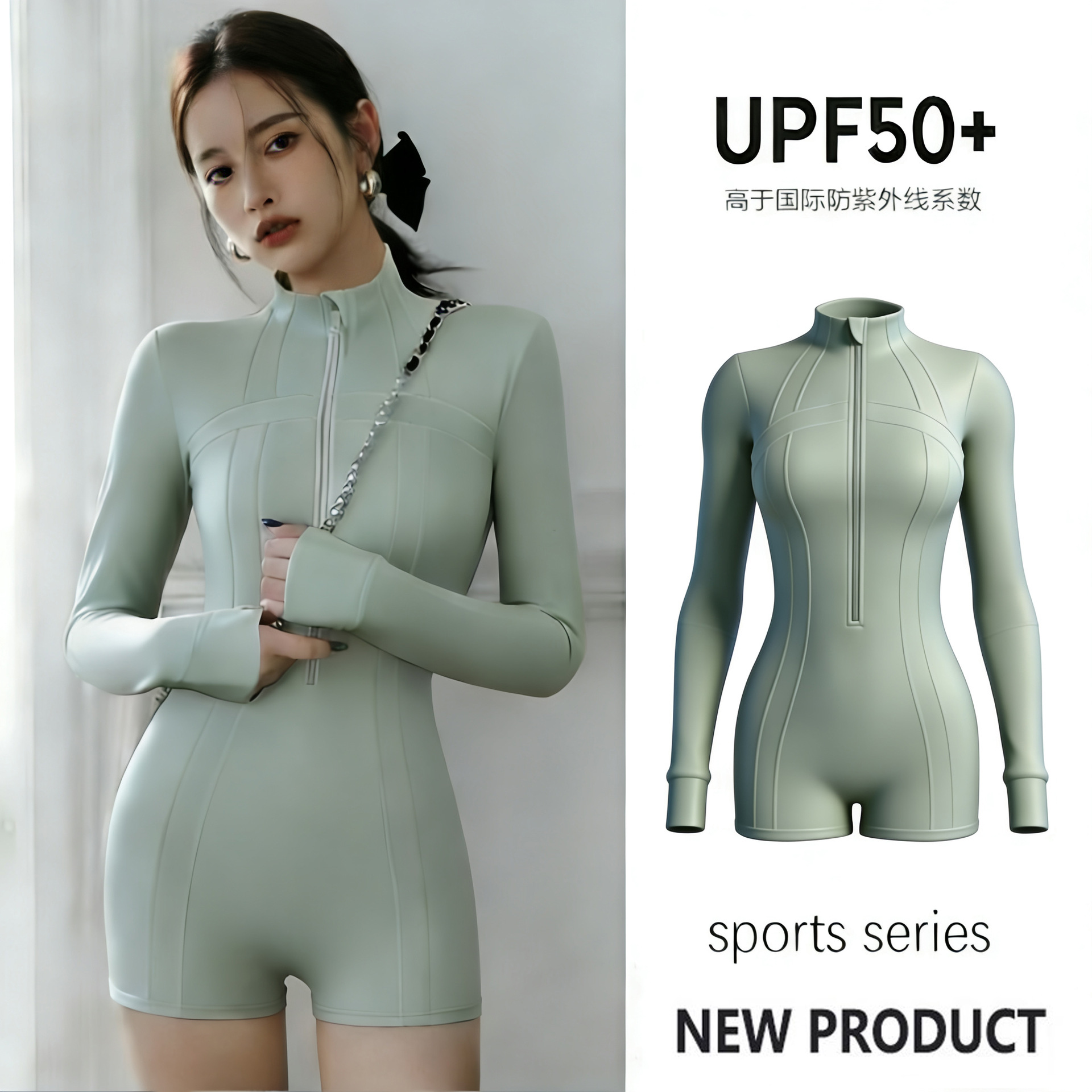 • 연두색 원피스 사각 수영복