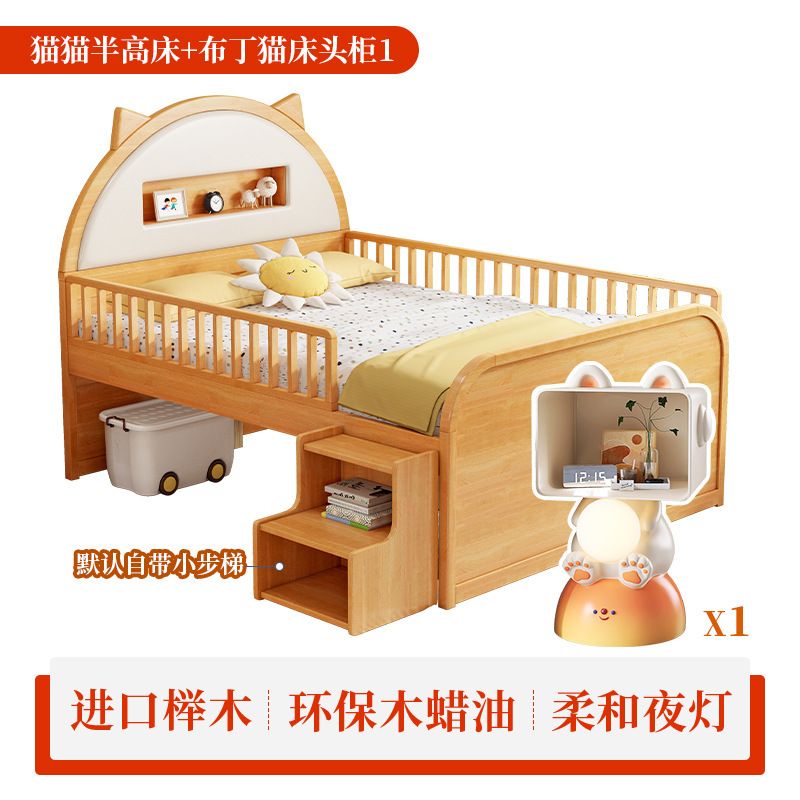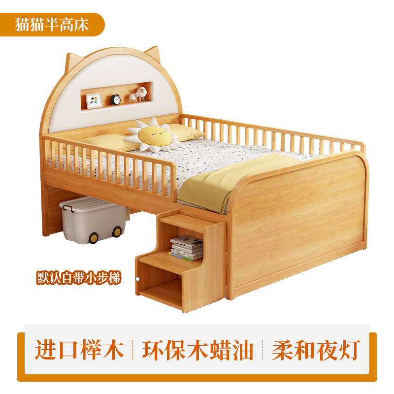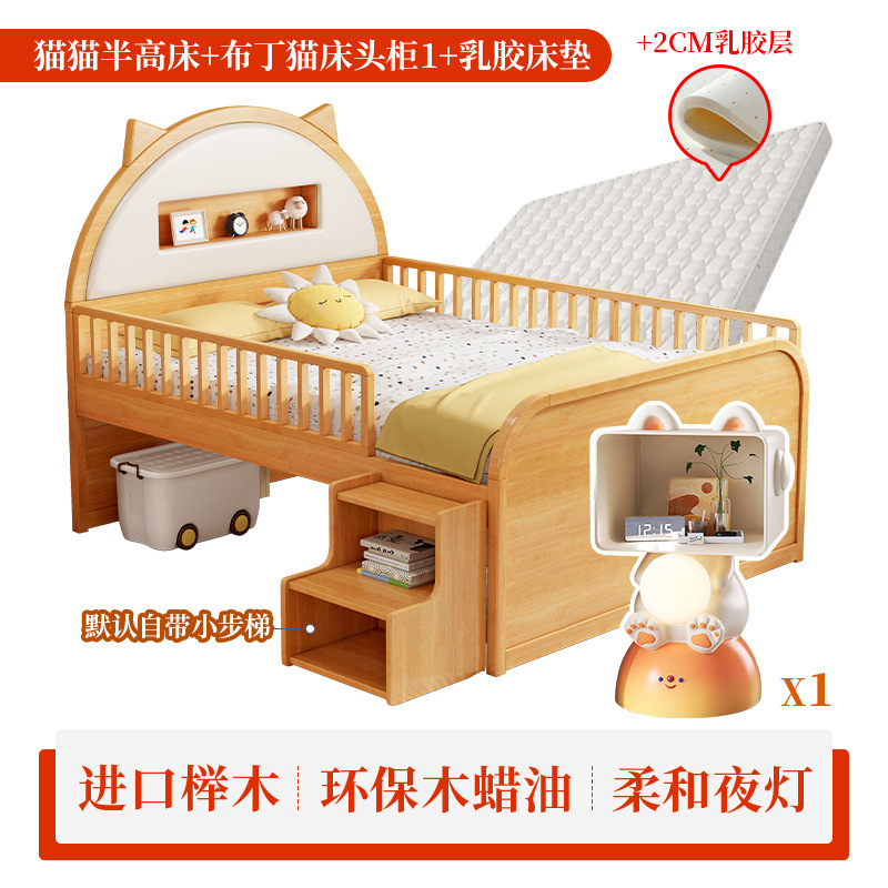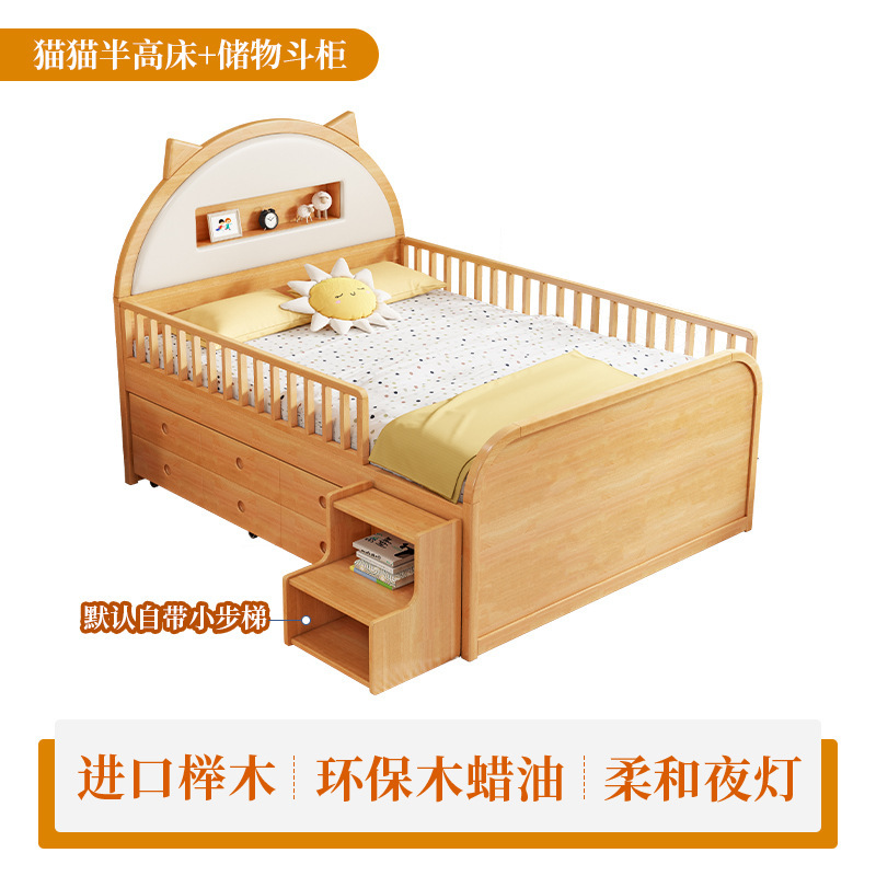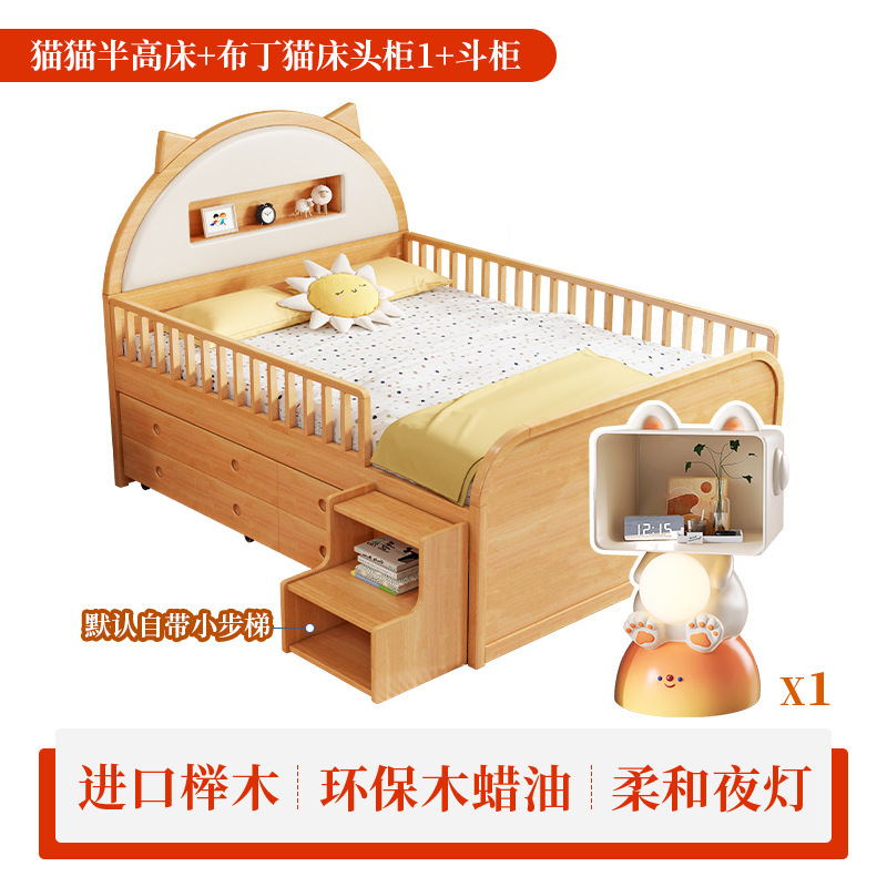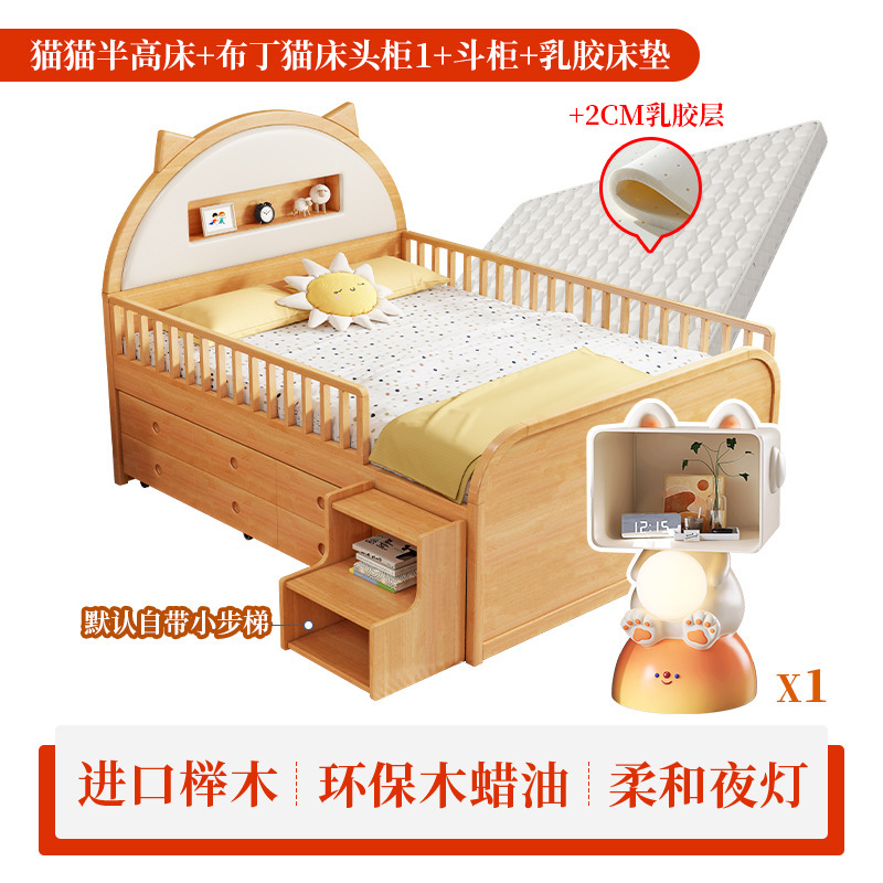 0 너도밤 나무 단단한 나무 어린이 침대 소년 소녀 하프 하이 침대 1.35m 다기능 가드 레일 소프트 박스 침대 어린이 방스토어 가기