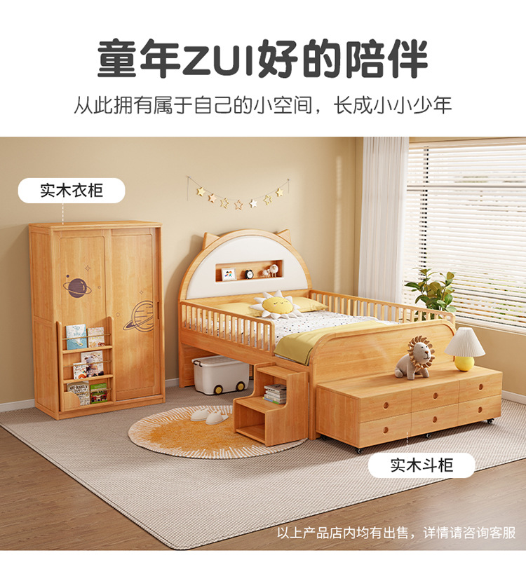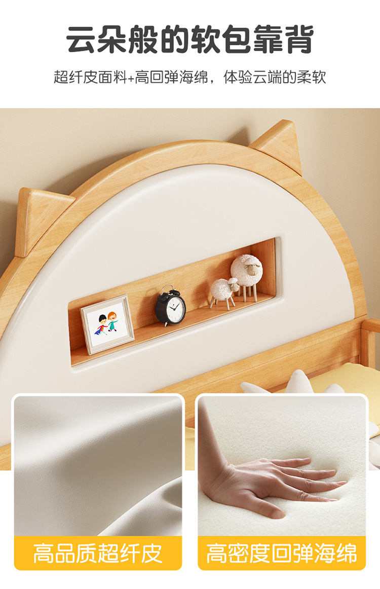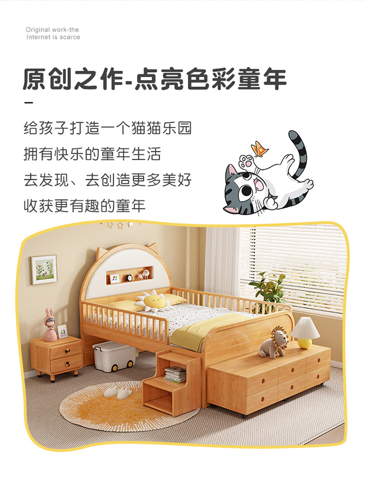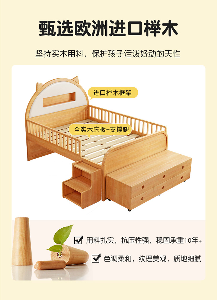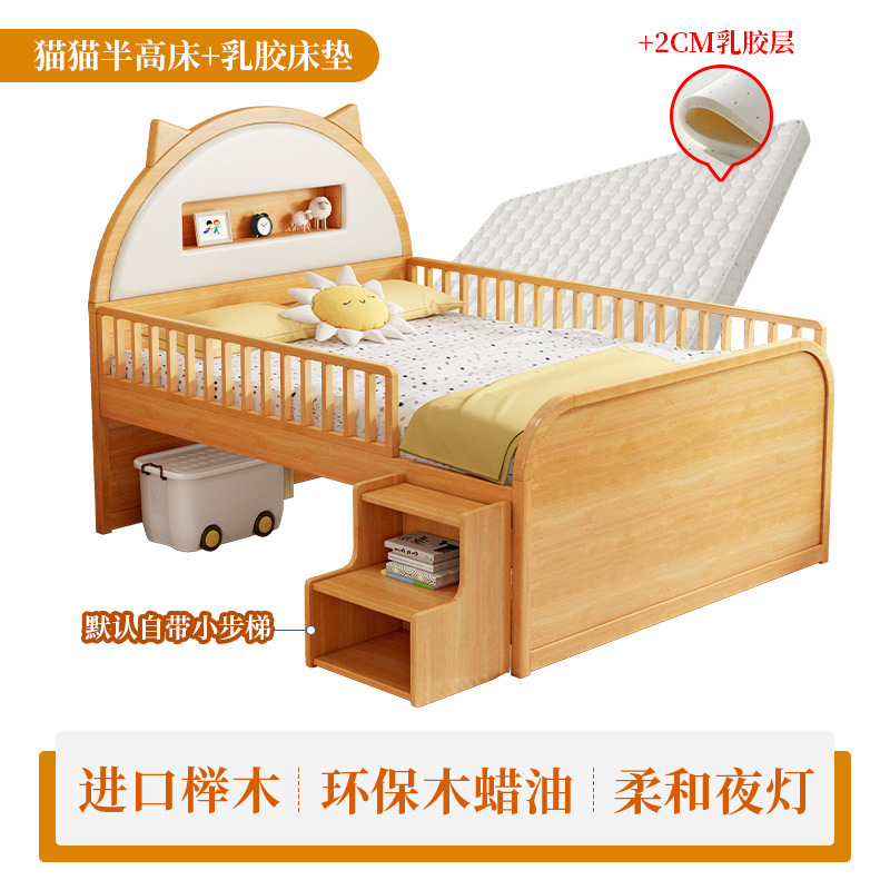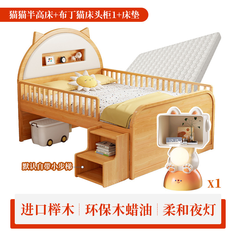 0 너도밤 나무 단단한 나무 어린이 침대 소년 소녀 하프 하이 침대 1.35m 다기능 가드 레일 소프트 박스 침대 어린이 방스토어 가기