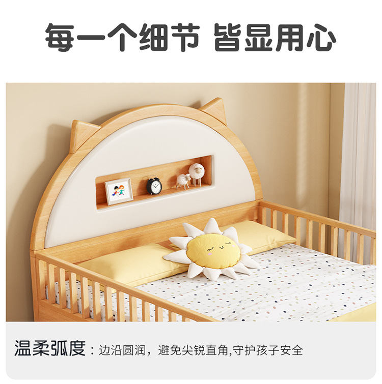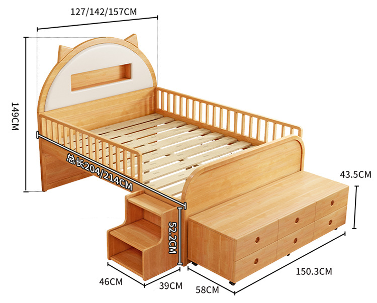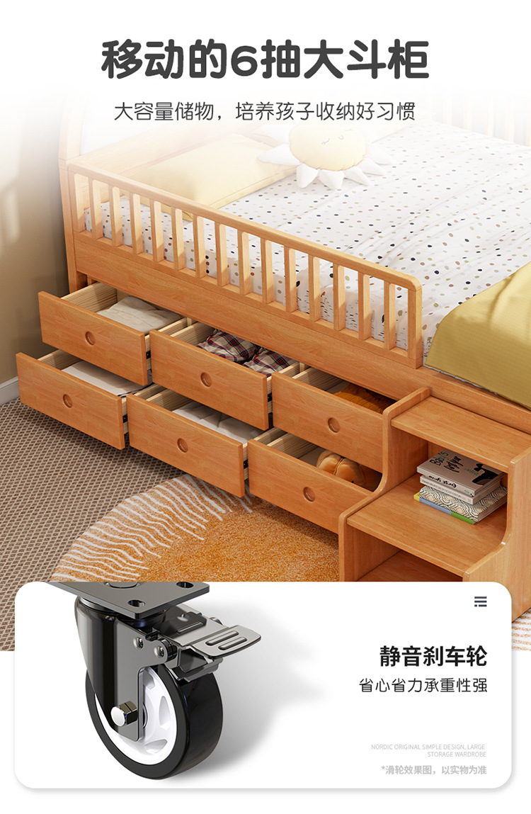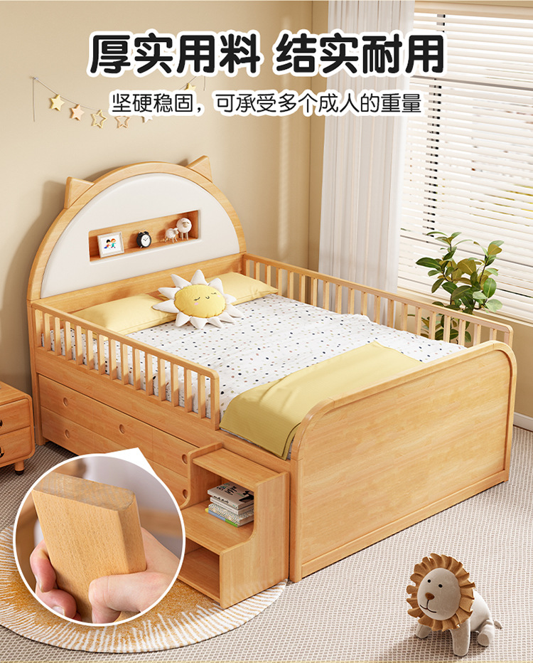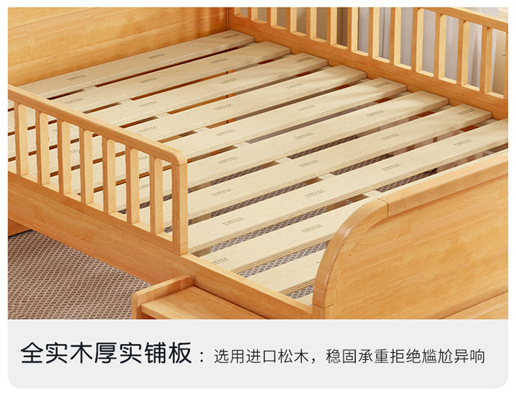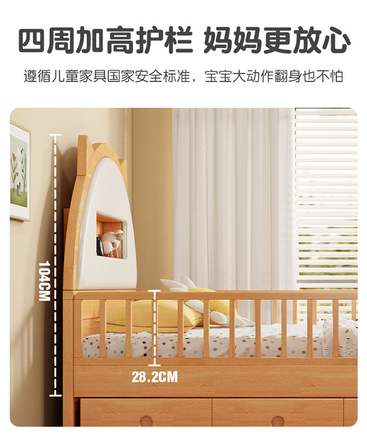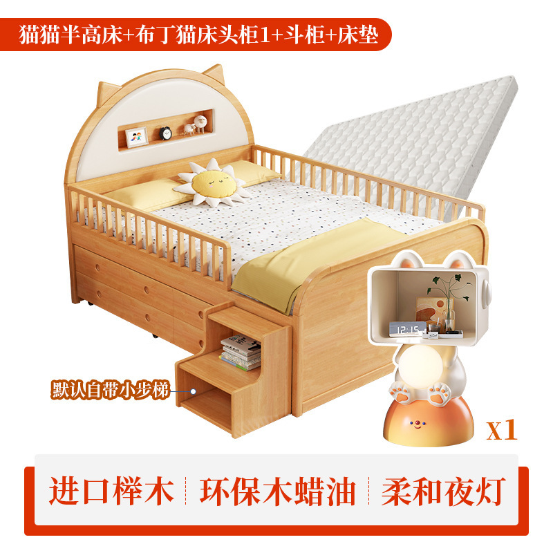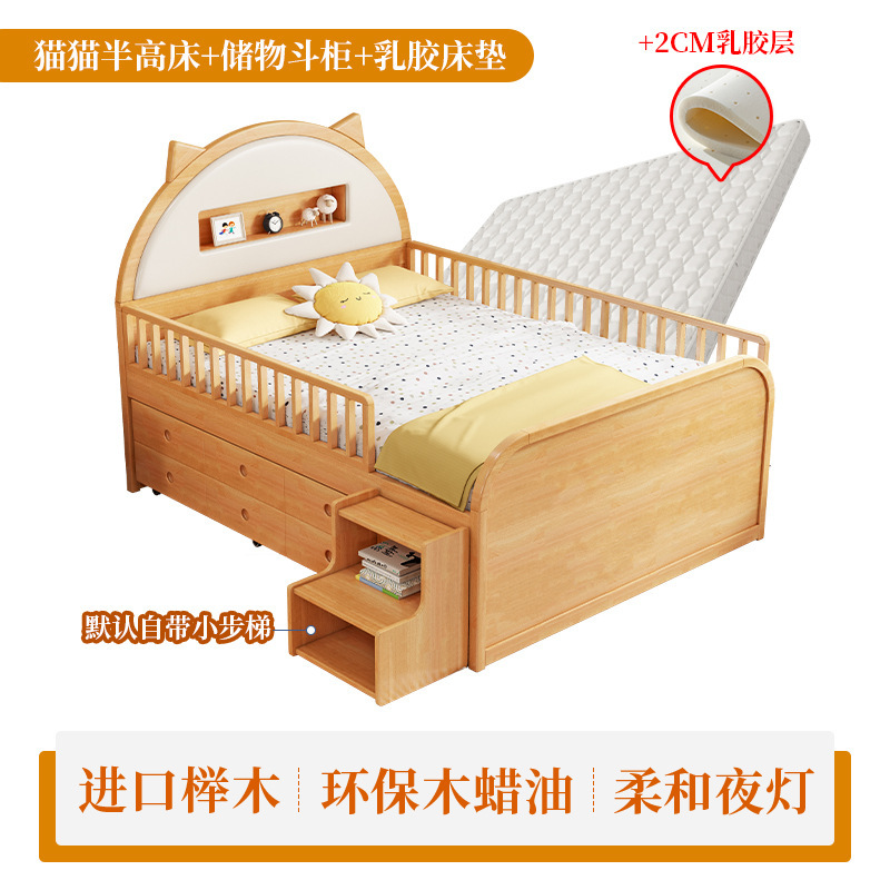 0 너도밤 나무 단단한 나무 어린이 침대 소년 소녀 하프 하이 침대 1.35m 다기능 가드 레일 소프트 박스 침대 어린이 방