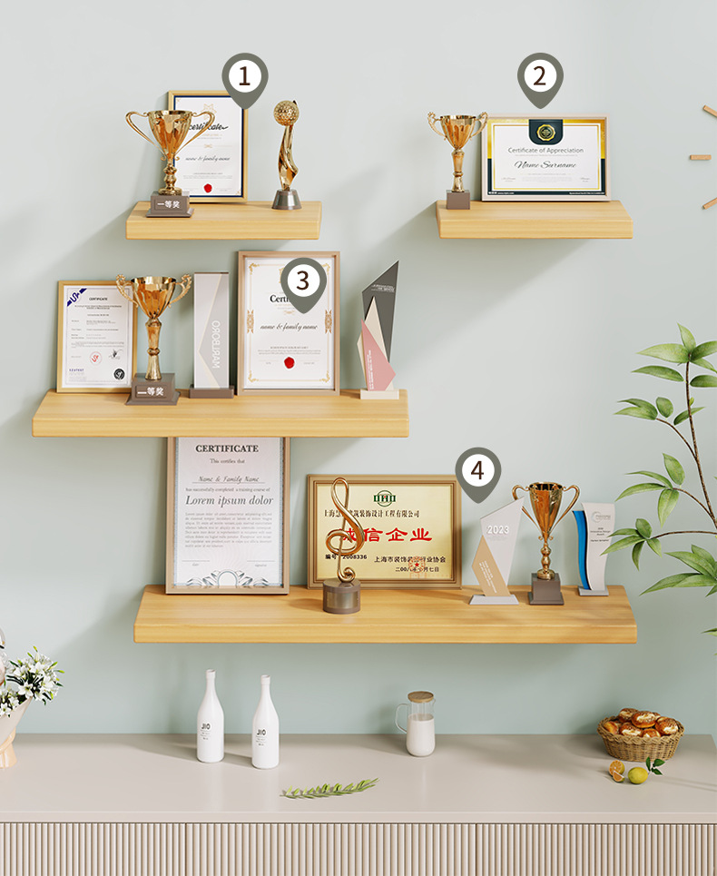 명예 벽 디스플레이 랙 벽걸이 형 파티션 디스플레이 랙 트로피 기업 인증서 메달 벽 선반 랙스토어 가기