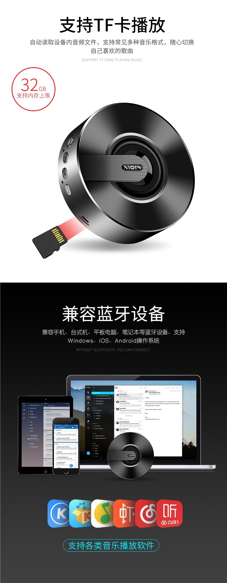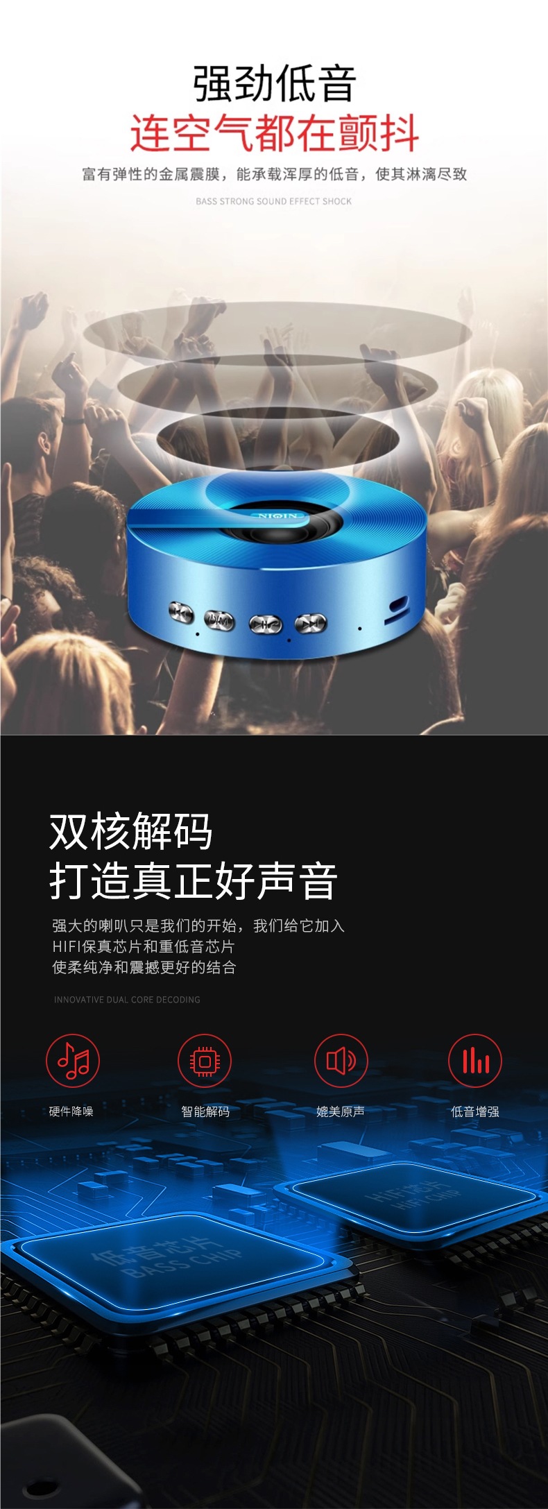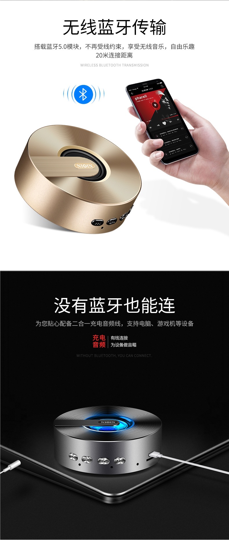 무선 블루투스 스피커, 대용량, 휴대폰용, 미니, 휴대용, 야외용, 소형, 강력한 사운드, 가정용 오디오