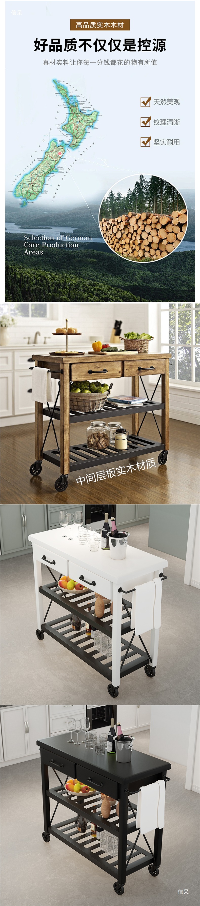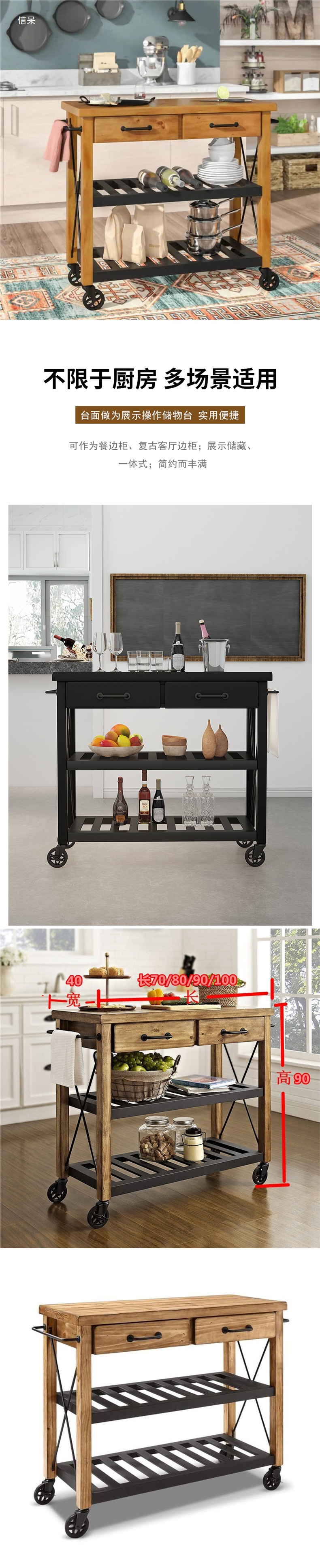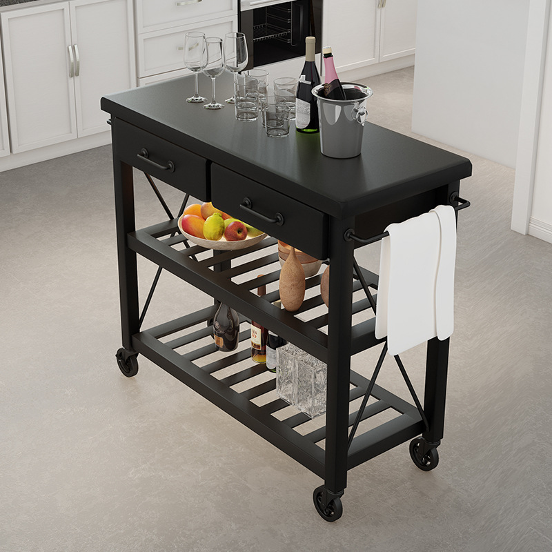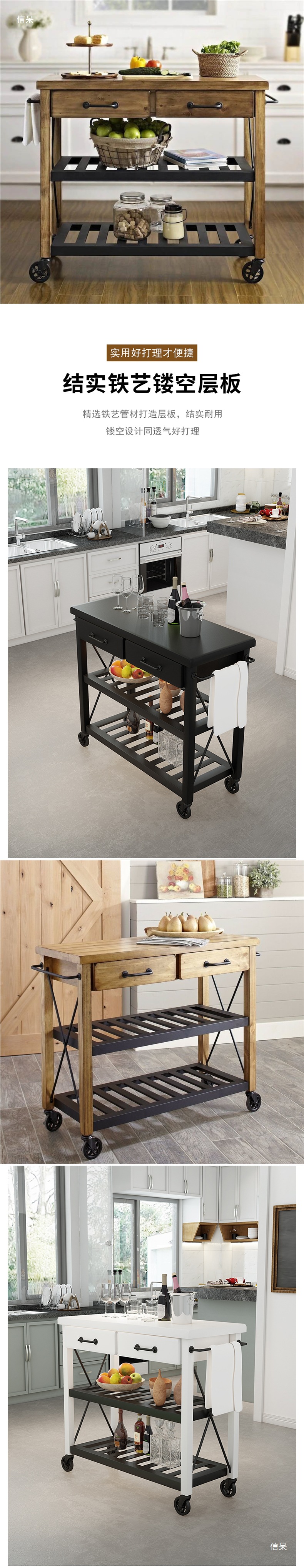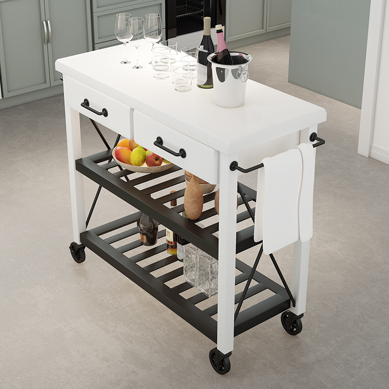 미국식 단단한 나무 찬장, 가정용 주방 작업 아일랜드, 다층 수납 철제 이동식 식탁 캐비닛