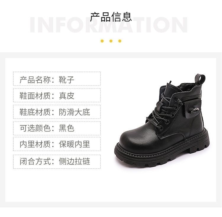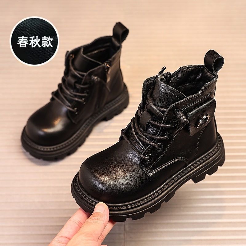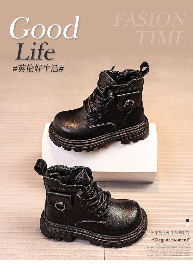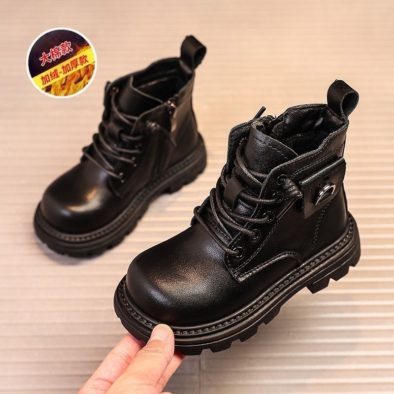 소년 마틴 부츠 2025 가을 겨울 새 스타일 가죽 부드러운 밑창 면화 부츠 소녀 벨벳 짧은 부츠 어린 소년 부츠 재고 있음