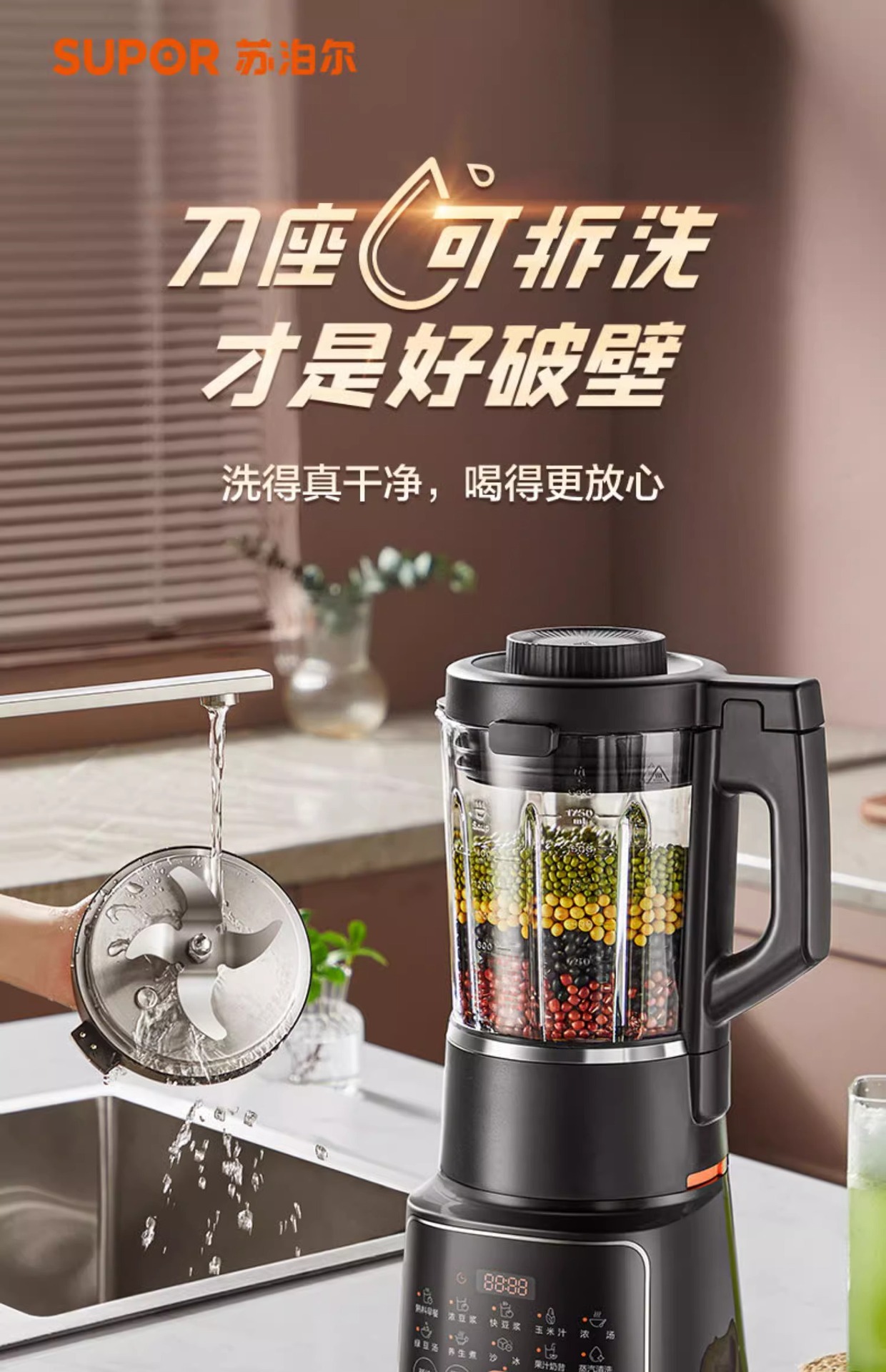 Supor SP605R 분리 및 세척 가능한 벽 파괴 기계 가정용 다기능 완전 자동 대용량 두유 기계 요리 기계스토어 가기