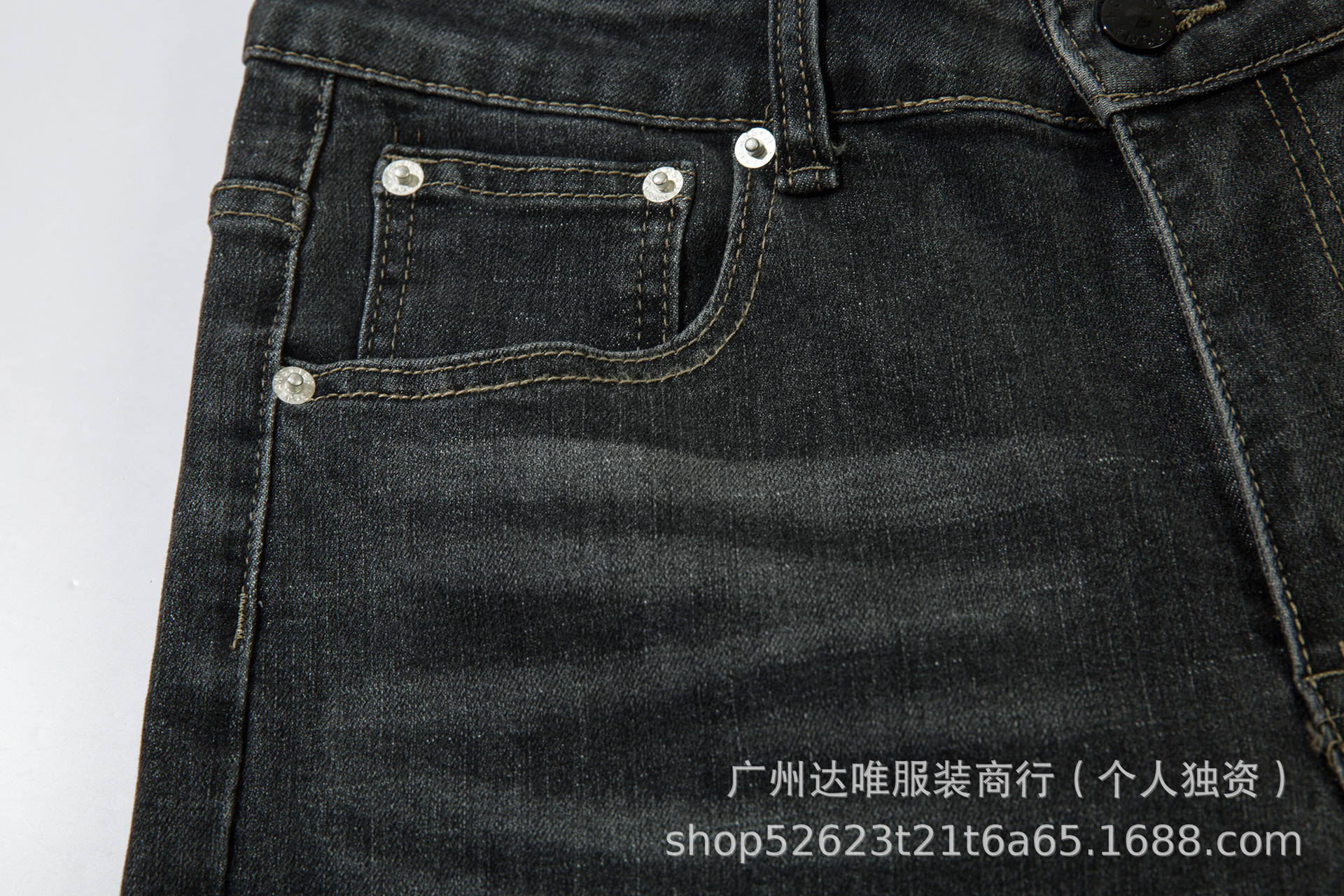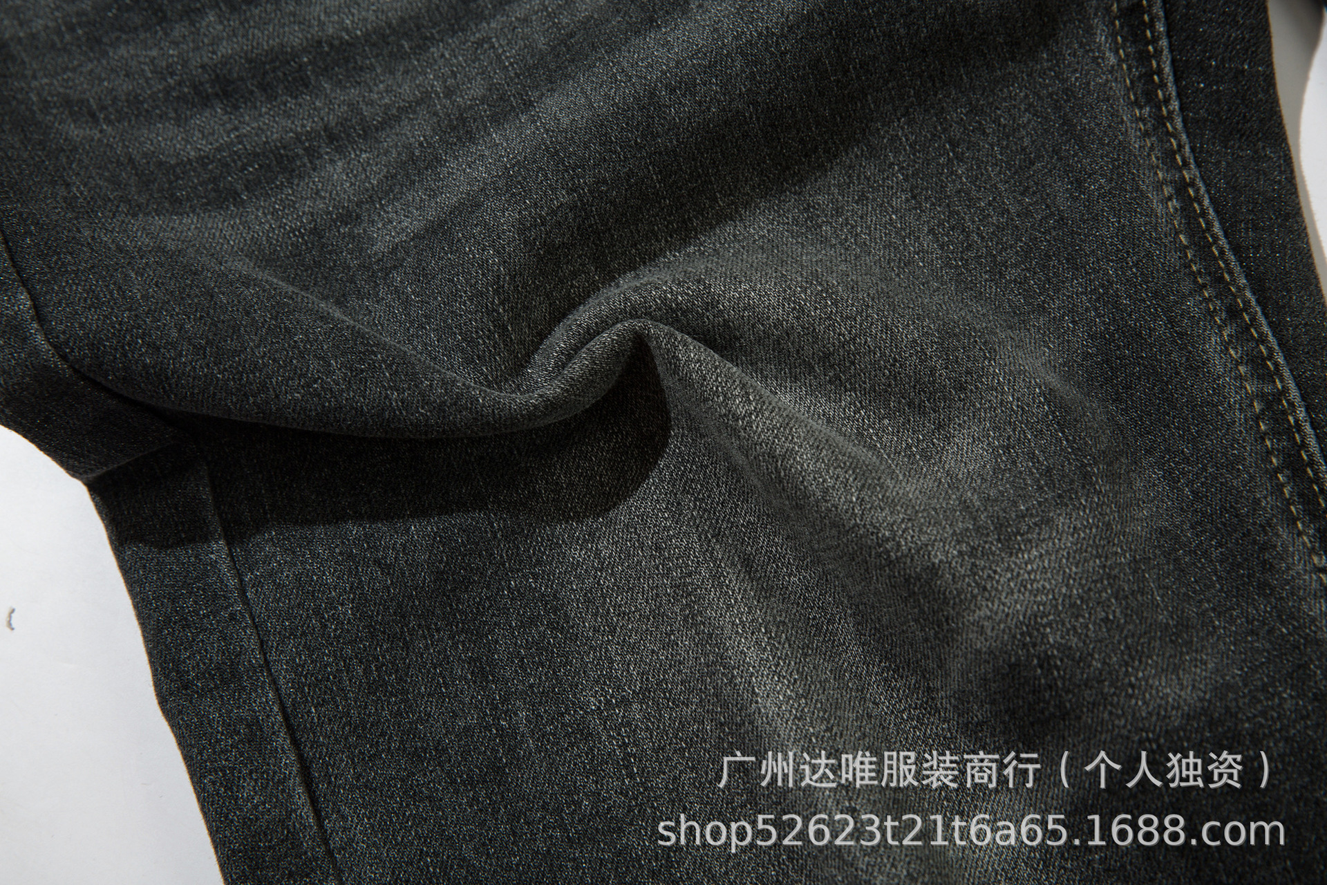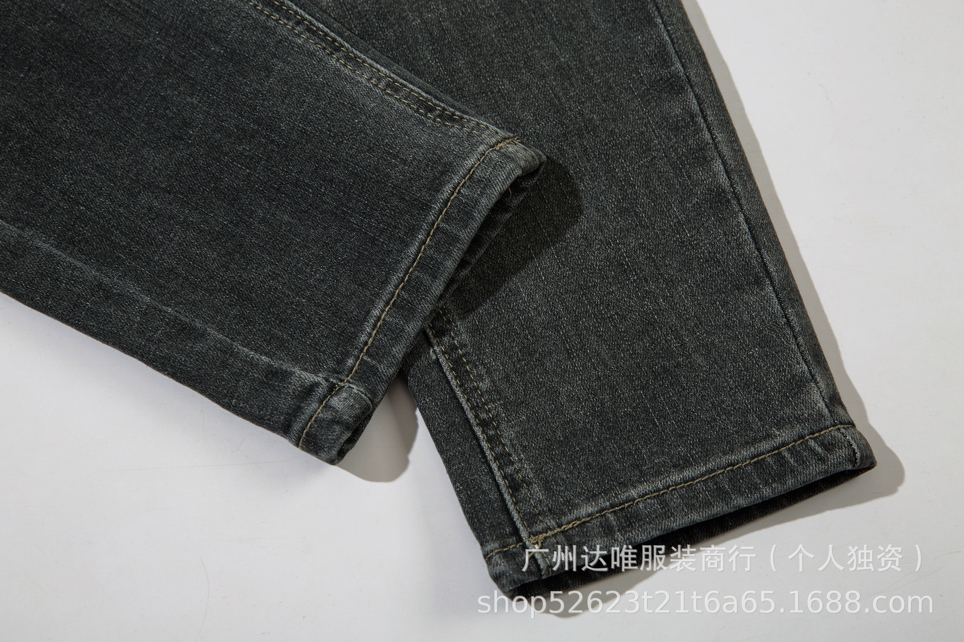 대외 무역 국경 간 스톤 청바지 고탄성 워시 백 포켓 자수 배지 남성용 슬림핏 바지스토어 가기