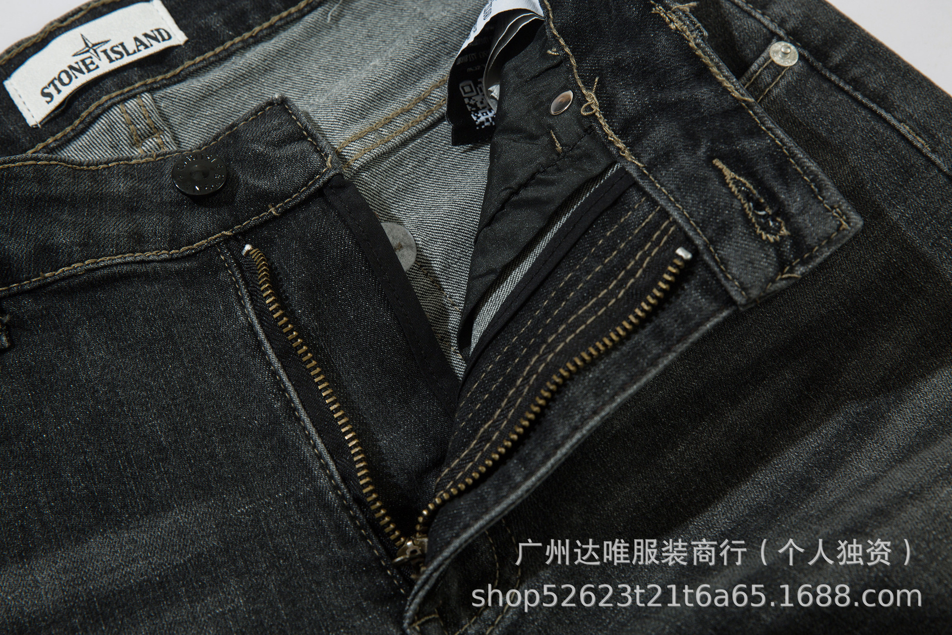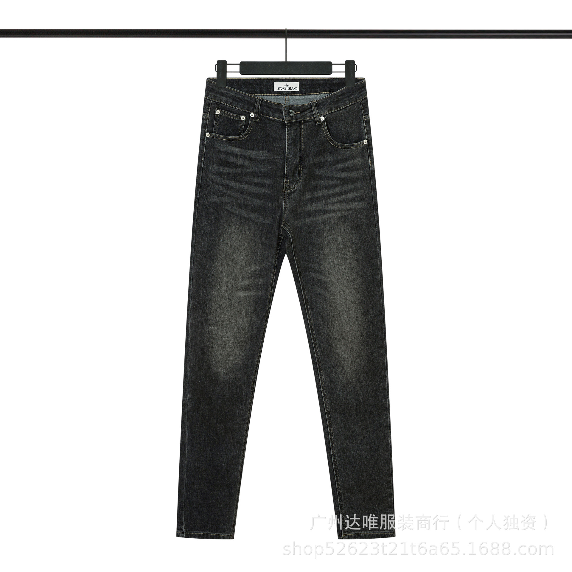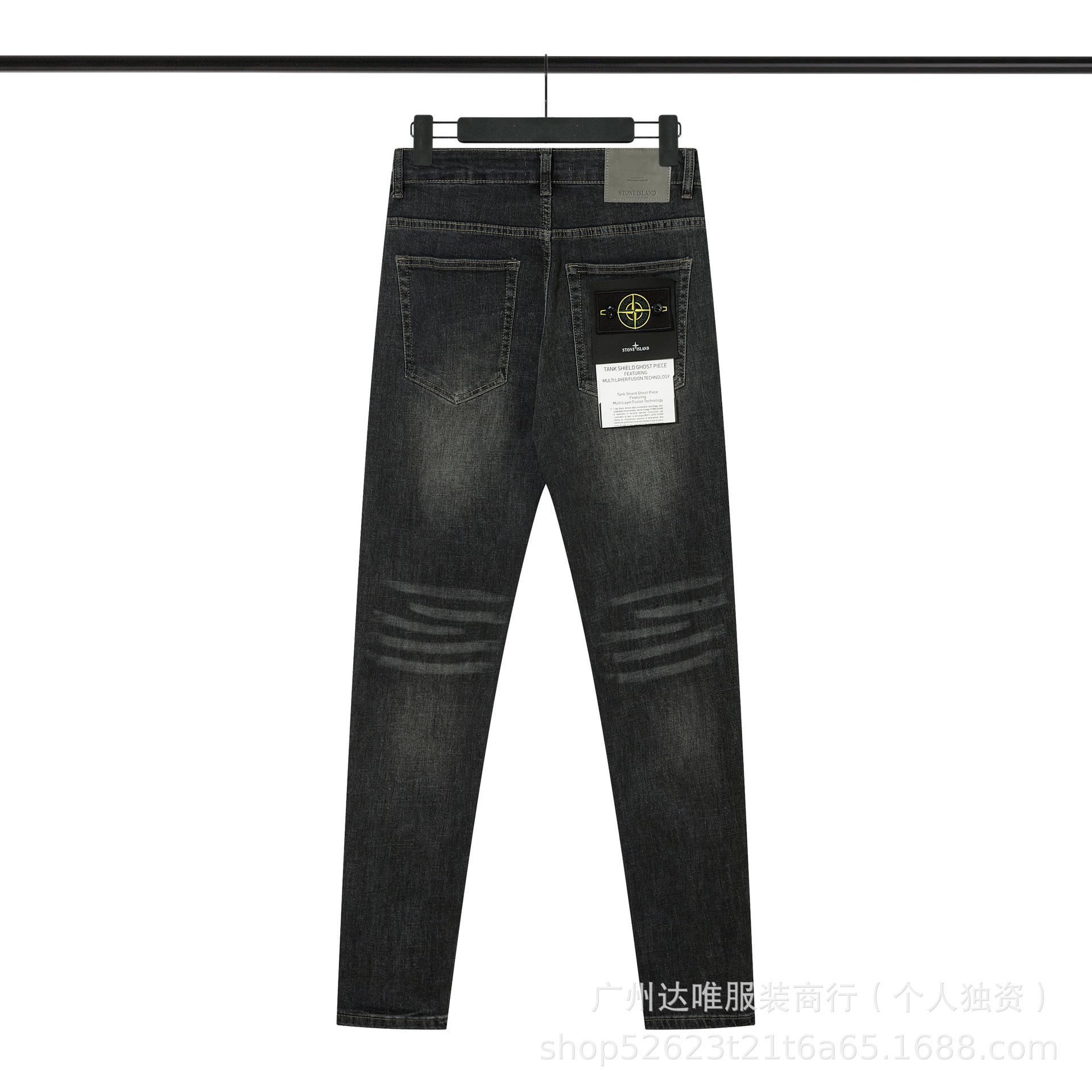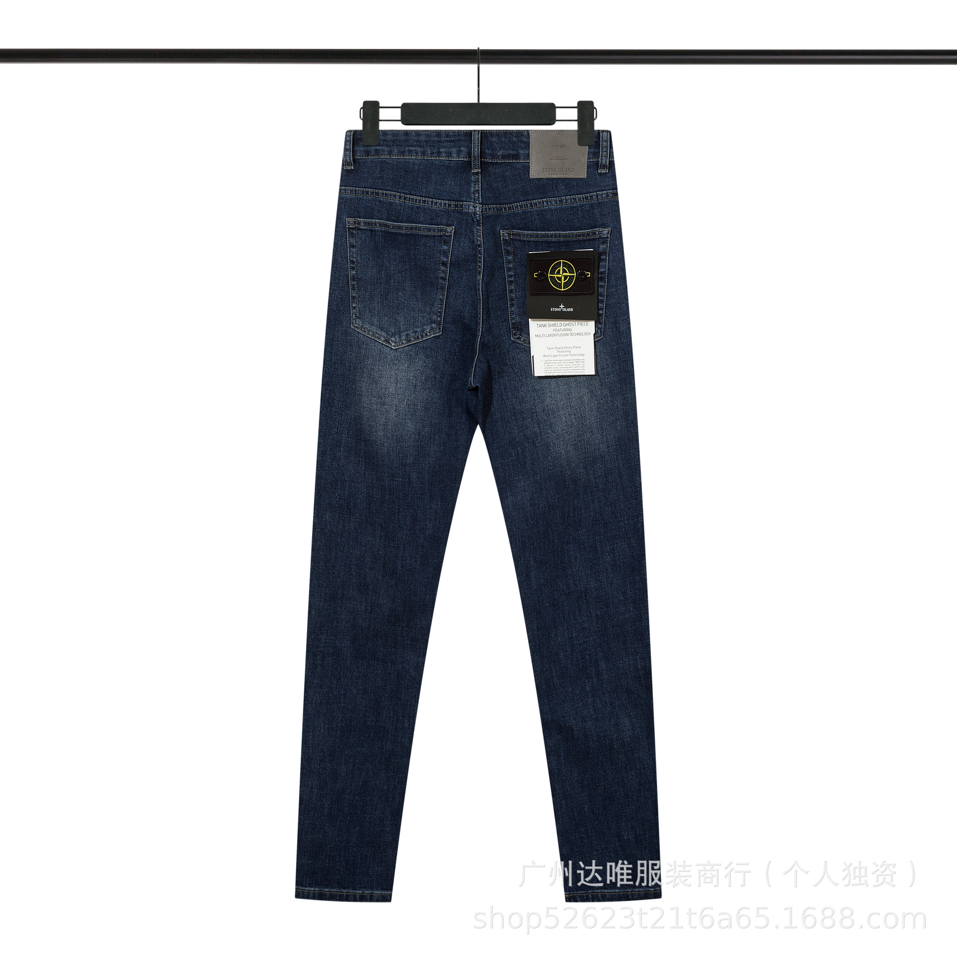 대외 무역 국경 간 스톤 청바지 고탄성 워시 백 포켓 자수 배지 남성용 슬림핏 바지스토어 가기
