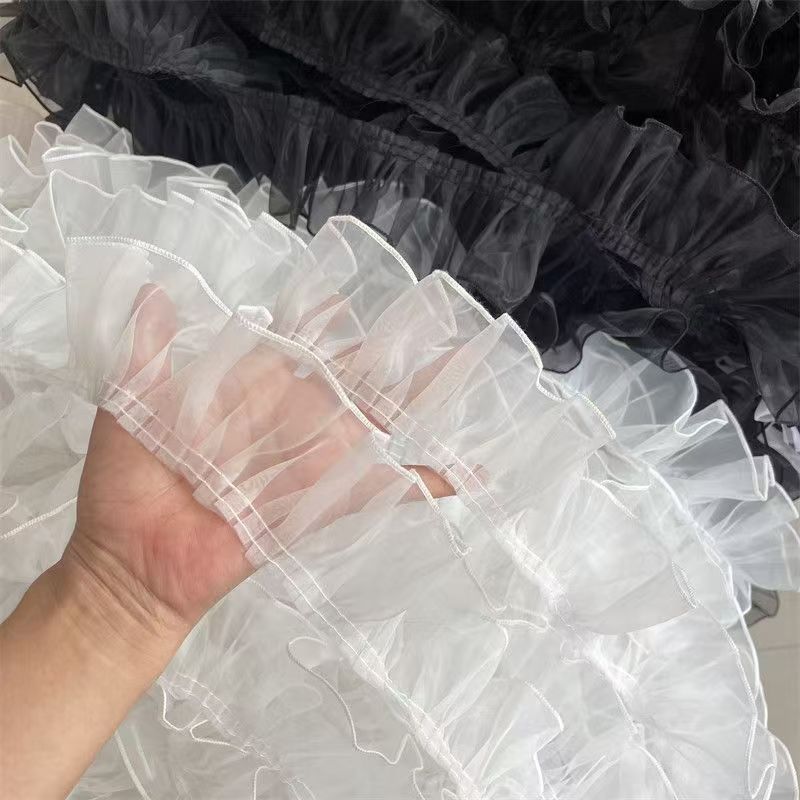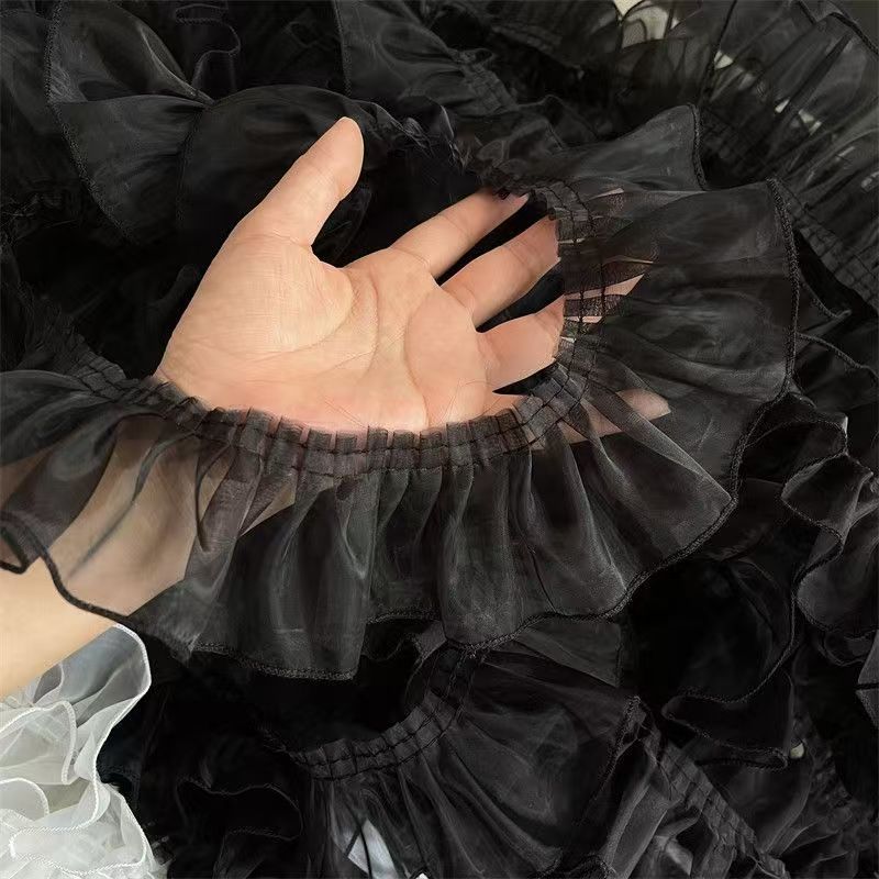 7CM 와이드 흑백 주름 오간자 레이스 커튼 패브릭 장식 의류 로리타 아기 옷 장식
