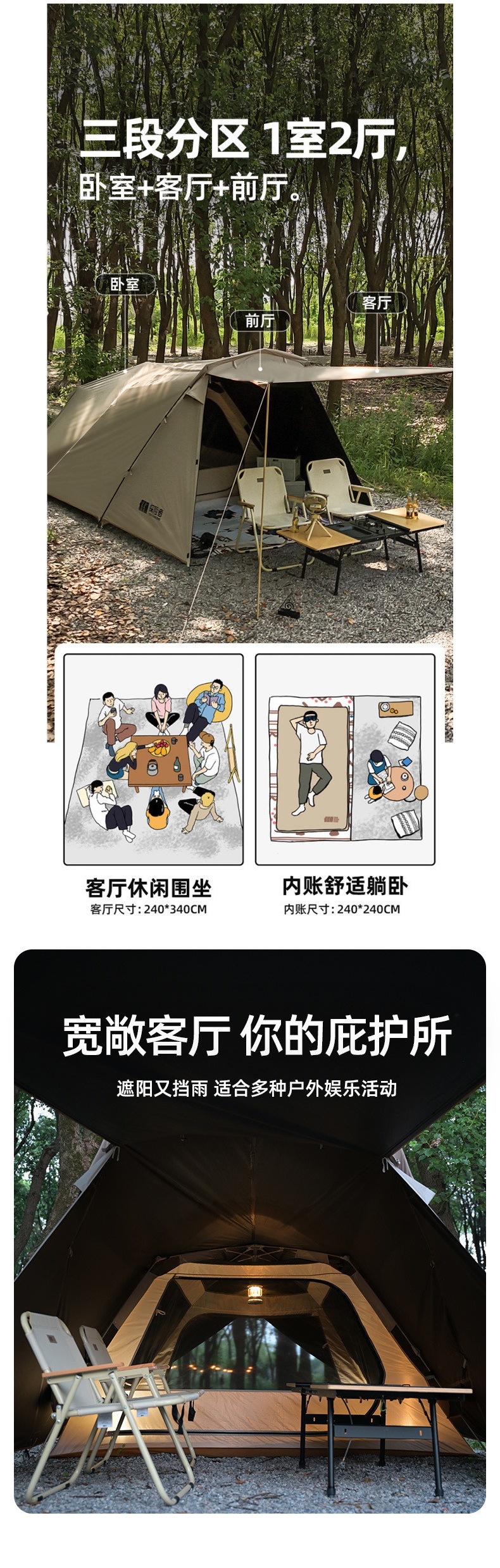 토널텐트 야외캠핑 밤샘 방풍 및 태양광 캠핑장비 [추징] 도매