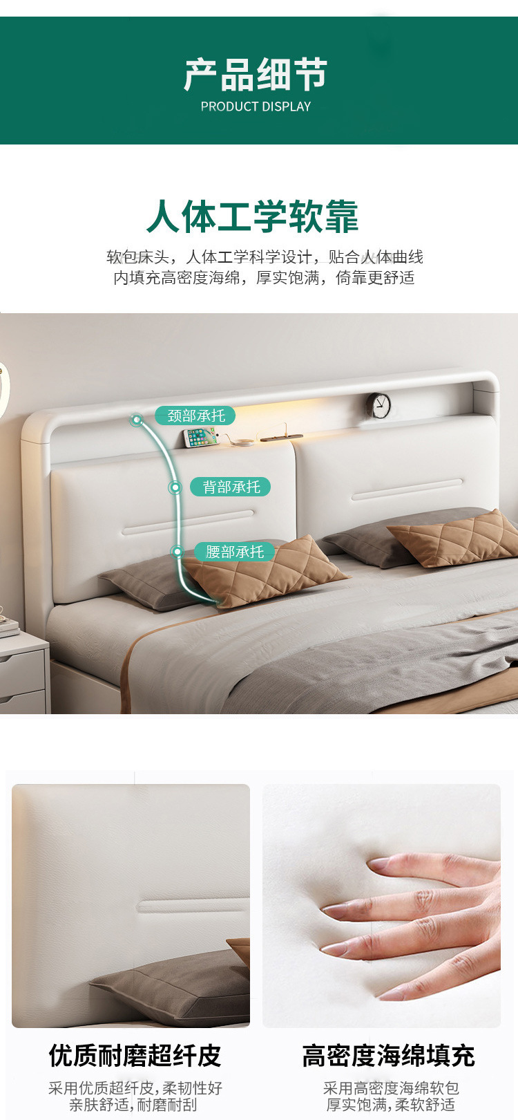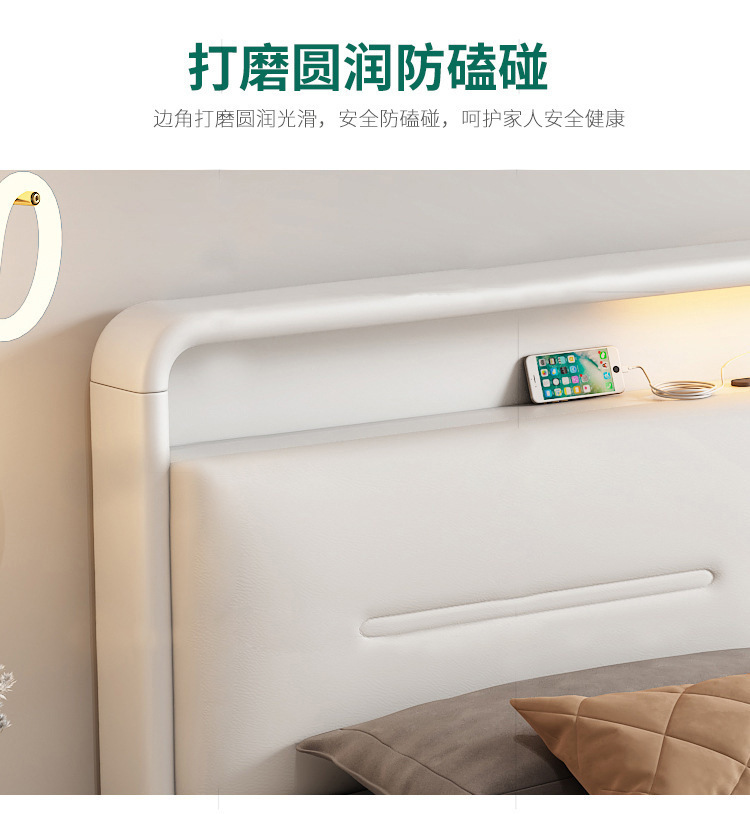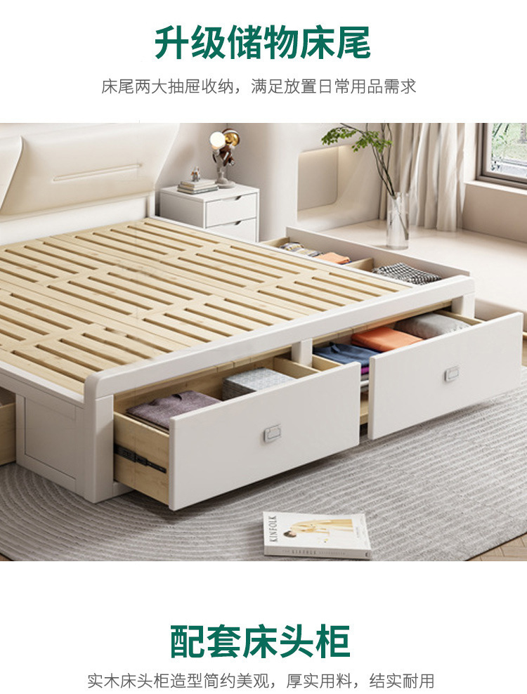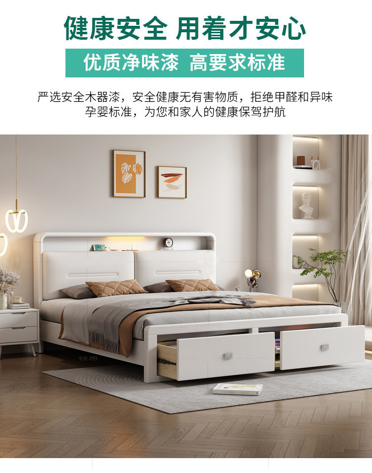 침대 옆 충전용 국경 간 특별 공급 흰색 단단한 나무 침대 현대적인 단순한 높은 상자 서랍 보관 침대 마스터 침실 더블 침대스토어 가기