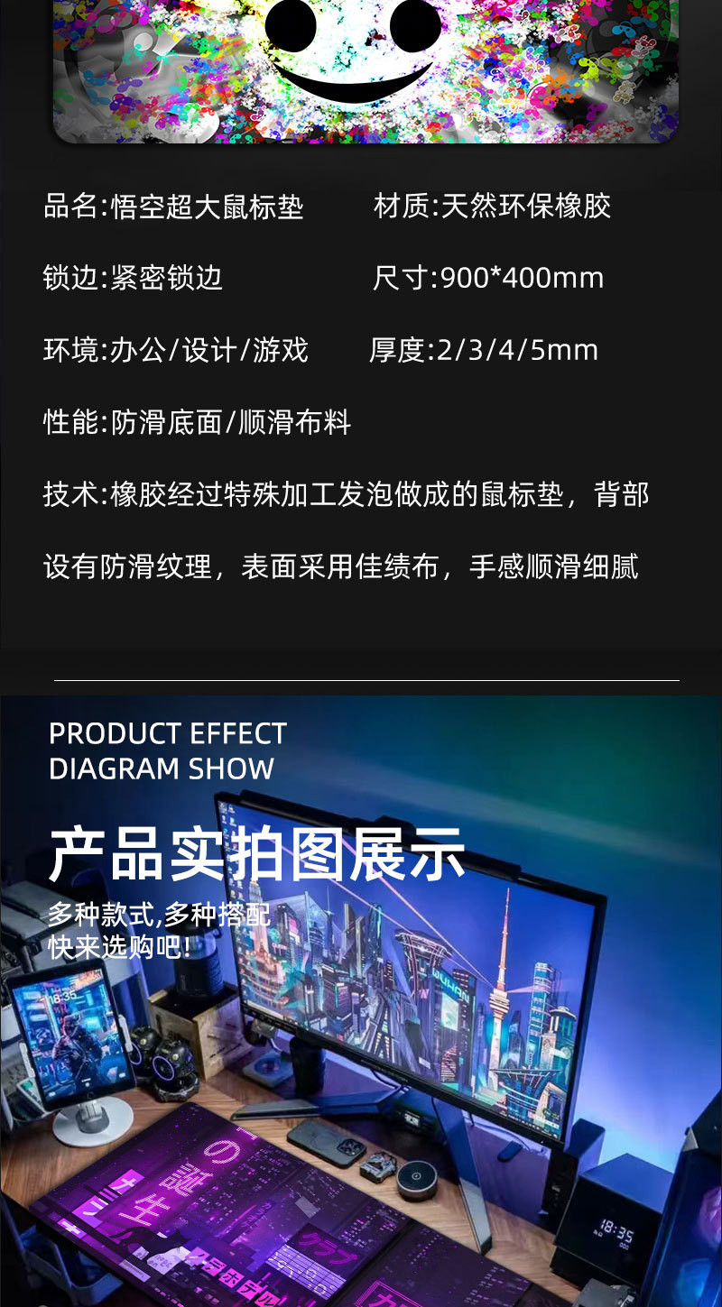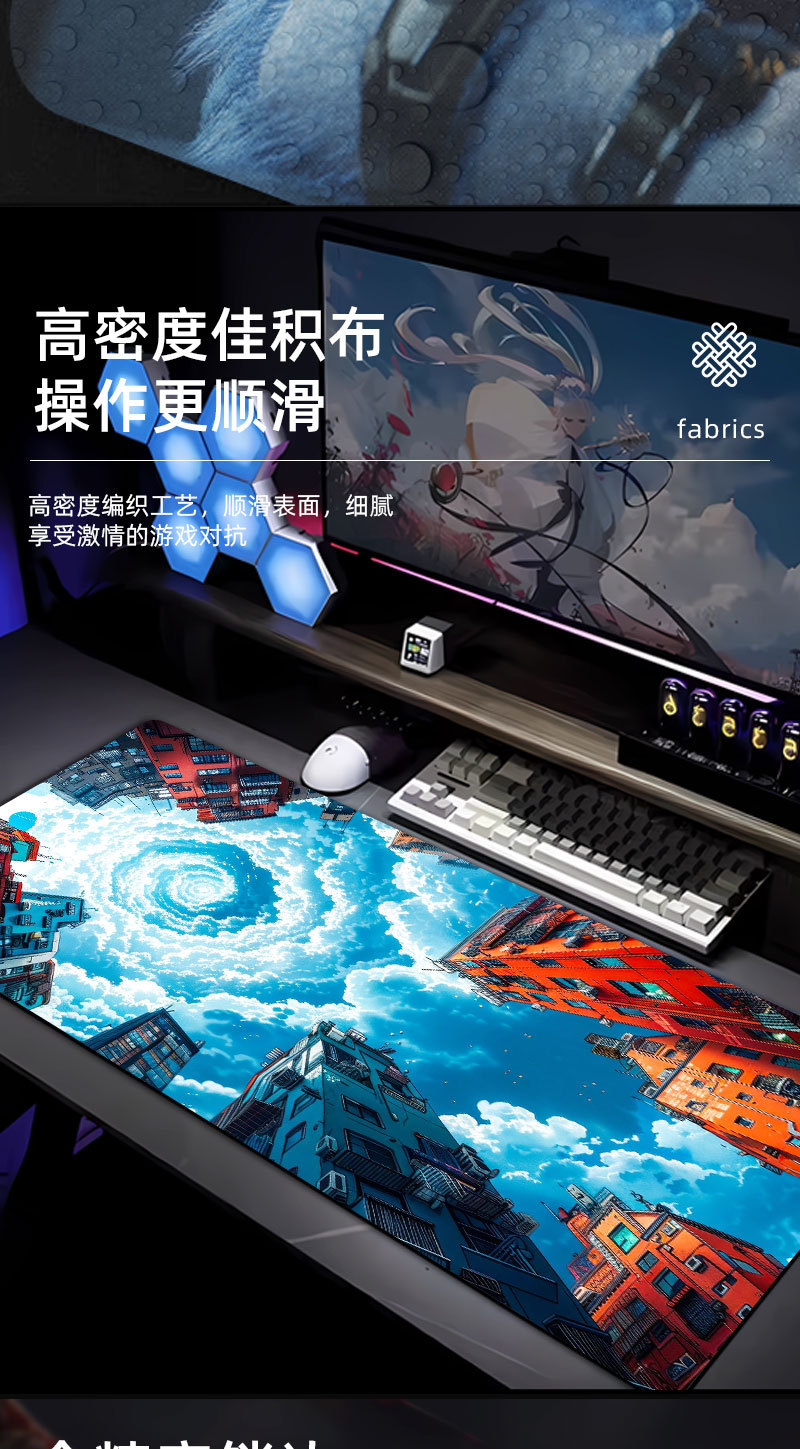 1.布面采用了密度好的佳绩布,表面细腻平滑,适用于大部分光电鼠标且定位好用。