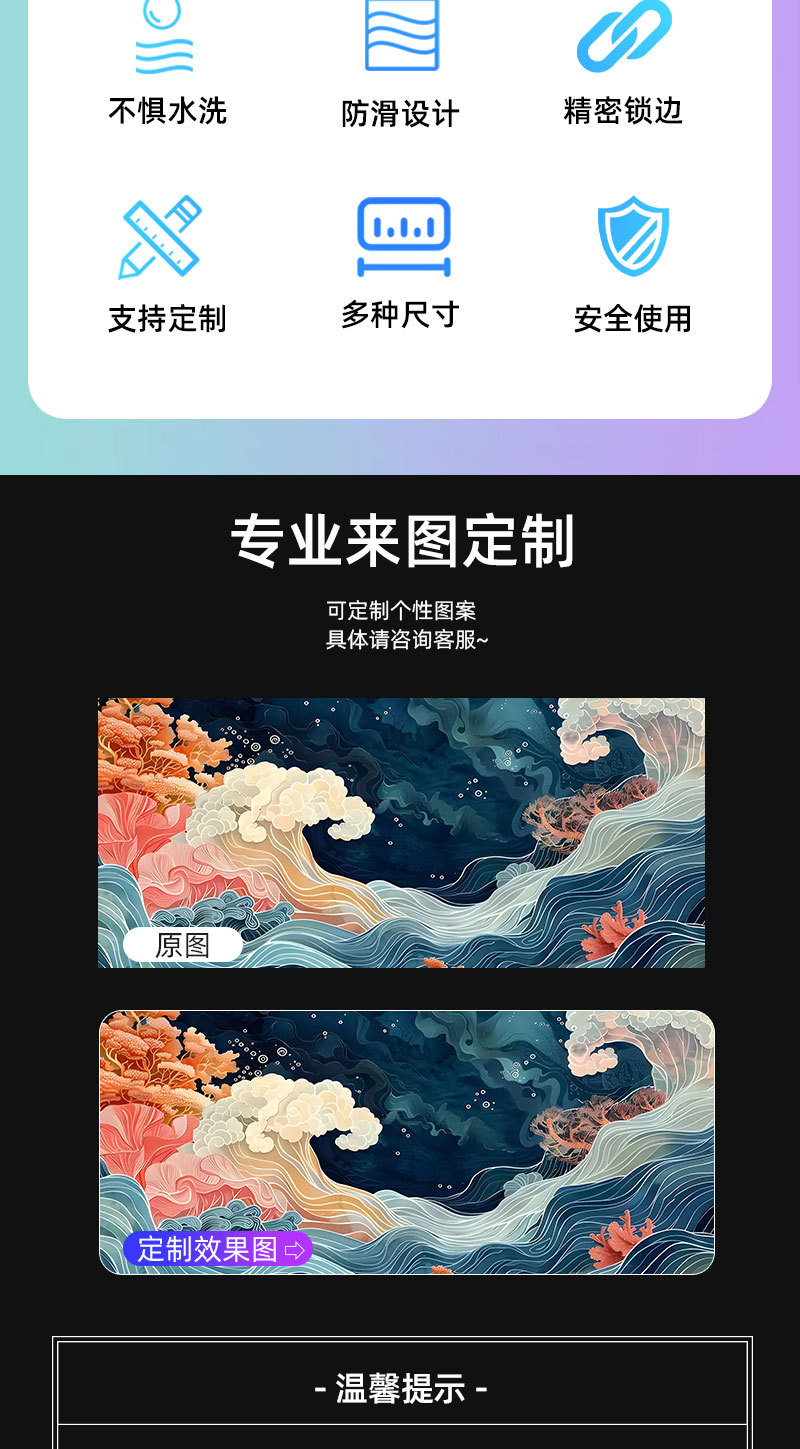 4、我们工厂备有大量白布面现货鼠标垫,多数都是以客户需求才开始生产,因为鼠标垫的图片太多了,每个客人需求都不同,更新速度又很快,客人拍什么我们再做什么,不接受拍了我们生产了再退货,因为印刷了不好处理了,所以请提前要确认清楚;特殊情况可以协商帮助客人处理遇到的难处。