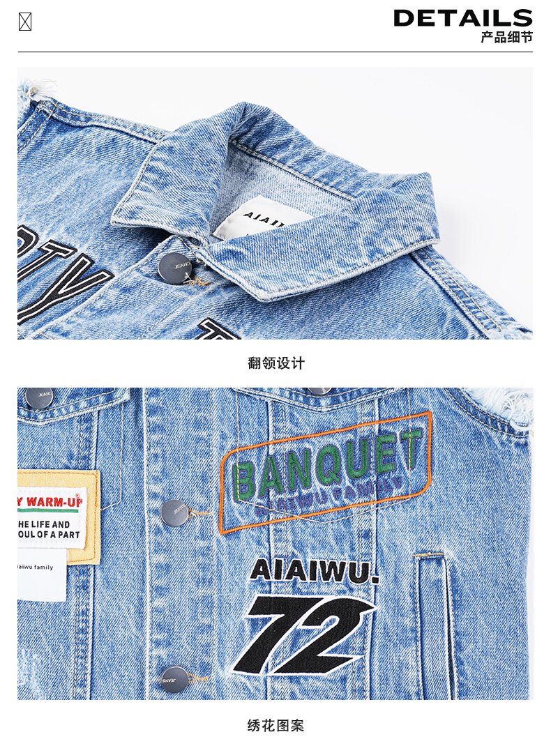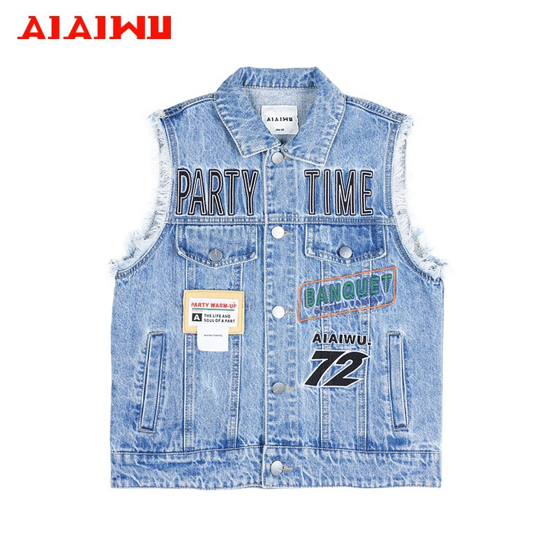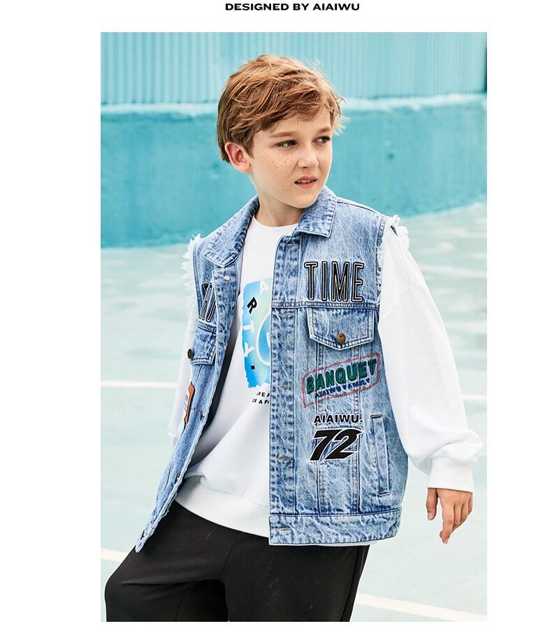 Aaiwu 소년 재킷 가을 중대형 어린이 트렌디 스트리트 데님 조끼 재킷 TLAC03
