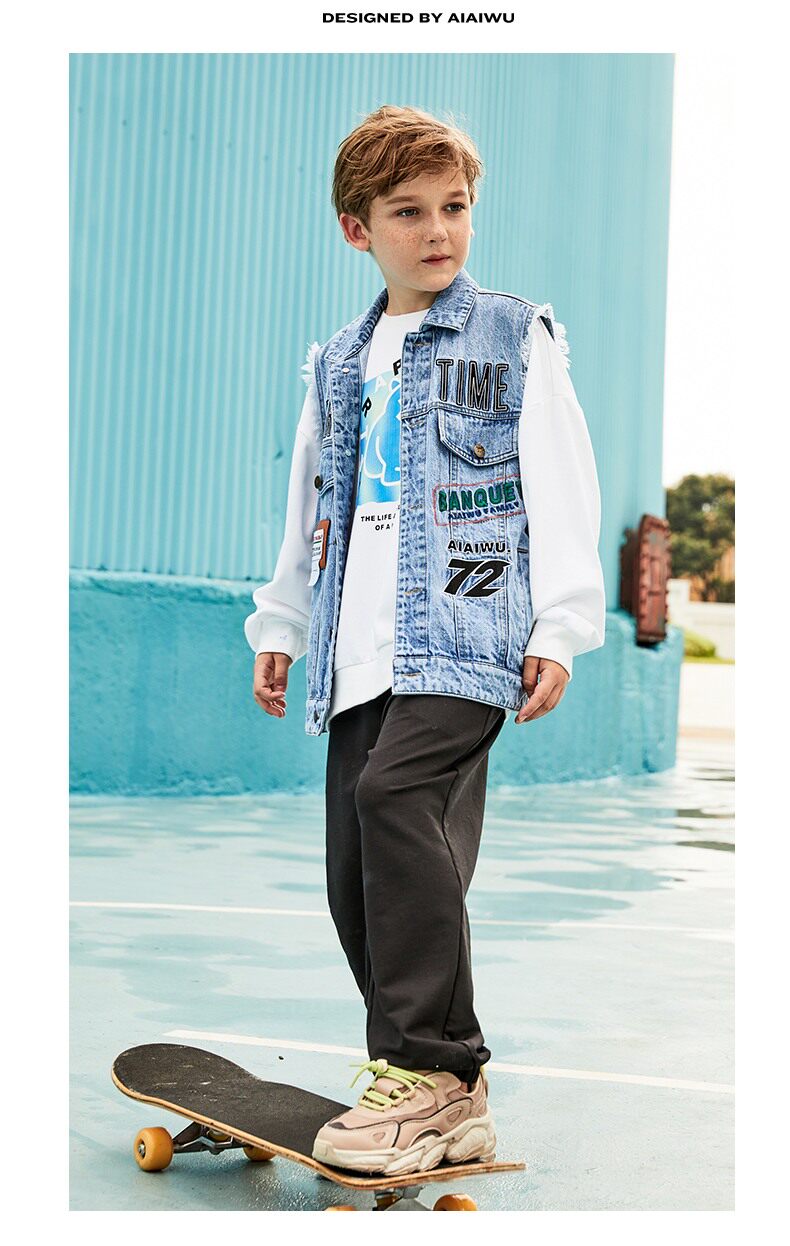Aaiwu 소년 재킷 가을 중대형 어린이 트렌디 스트리트 데님 조끼 재킷 TLAC03스토어 가기