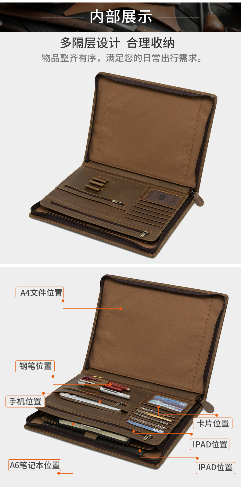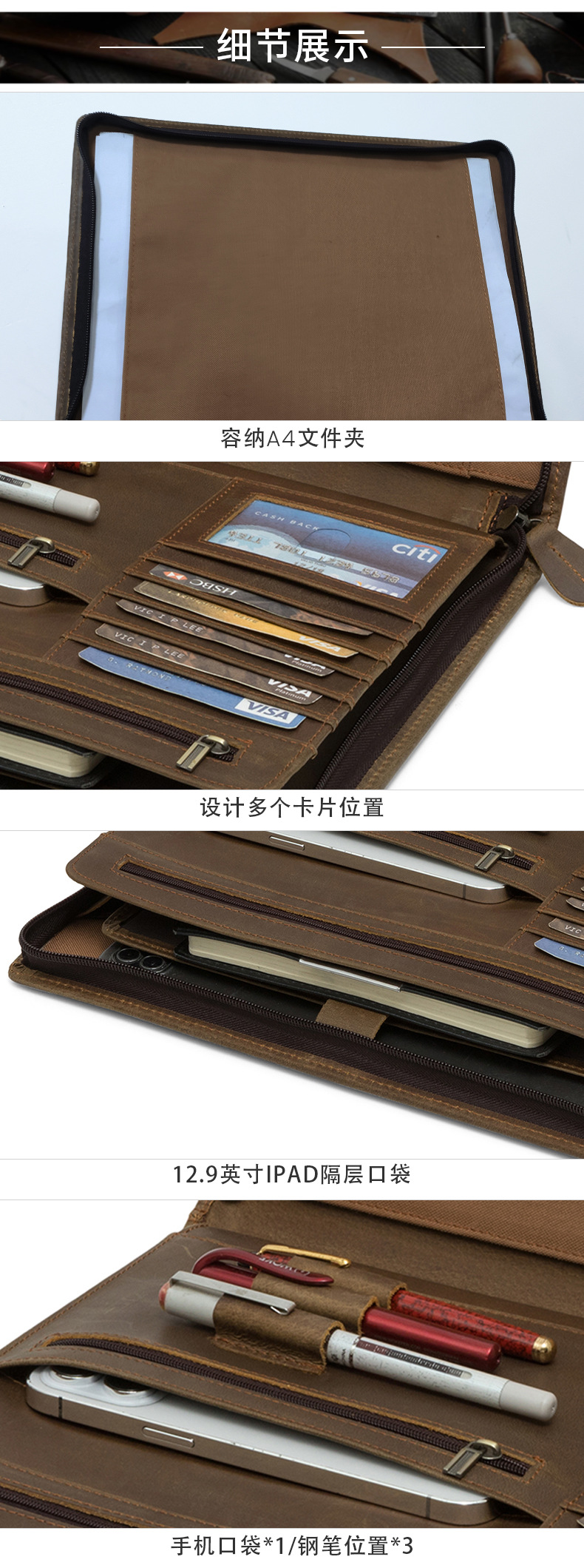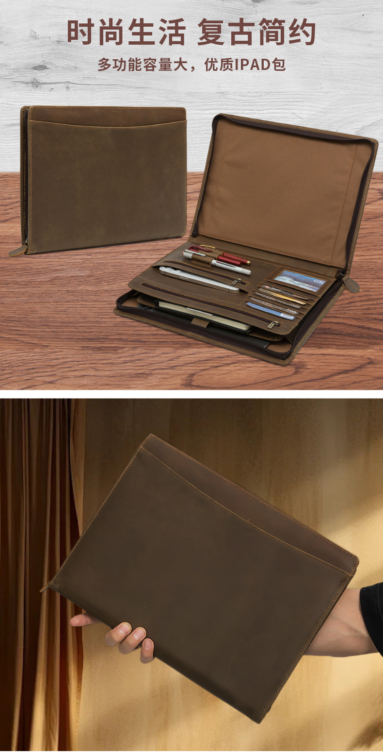 국경 간 정품 가죽 다기능 태블릿 보호 커버 고급 소가죽 비즈니스 서류 가방 남성용 iPad 클러치 백스토어 가기