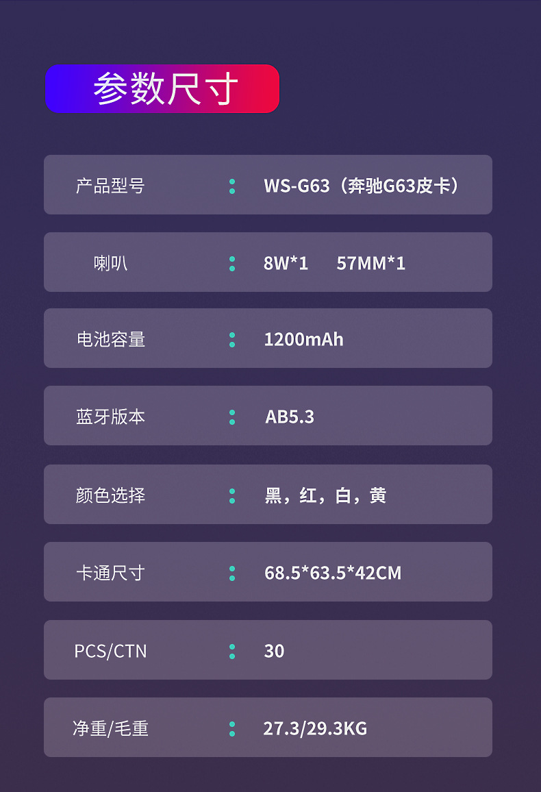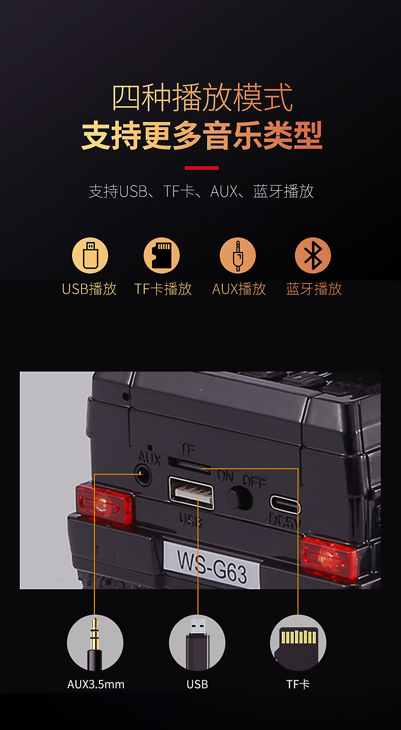 奔驰WS-G63皮卡汽车模型蓝牙音箱重低音多功能高品质家用音响礼品