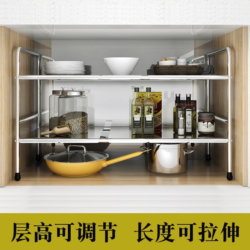 주방 싱크대 아래 수납 선반 스테인레스 스틸 용품 개폐식 바닥 캐비닛 다층 수납 수납 냄비 랙 가정용스토어 가기