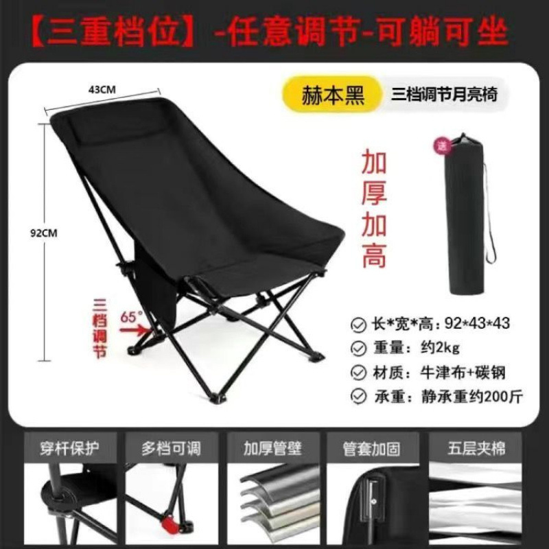 야외 접이식 의자, 간단하고 가벼운 달 의자, 두껍고 두꺼운 휴대용 피크닉 캠핑 의자, 캠핑 필수 용품