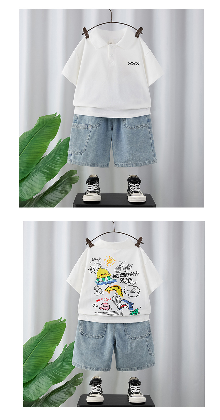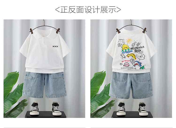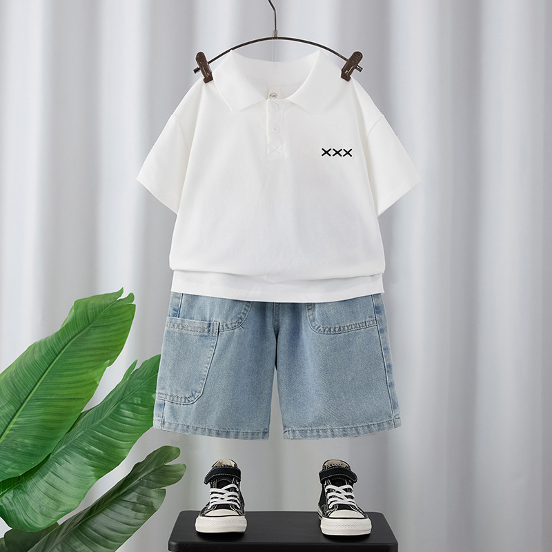 소년 여름 정장 2025 여름 신작 어린이 베이비 폴로 어린이 캐주얼 반바지 반팔 투피스 세트