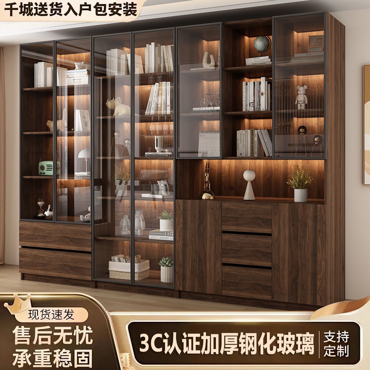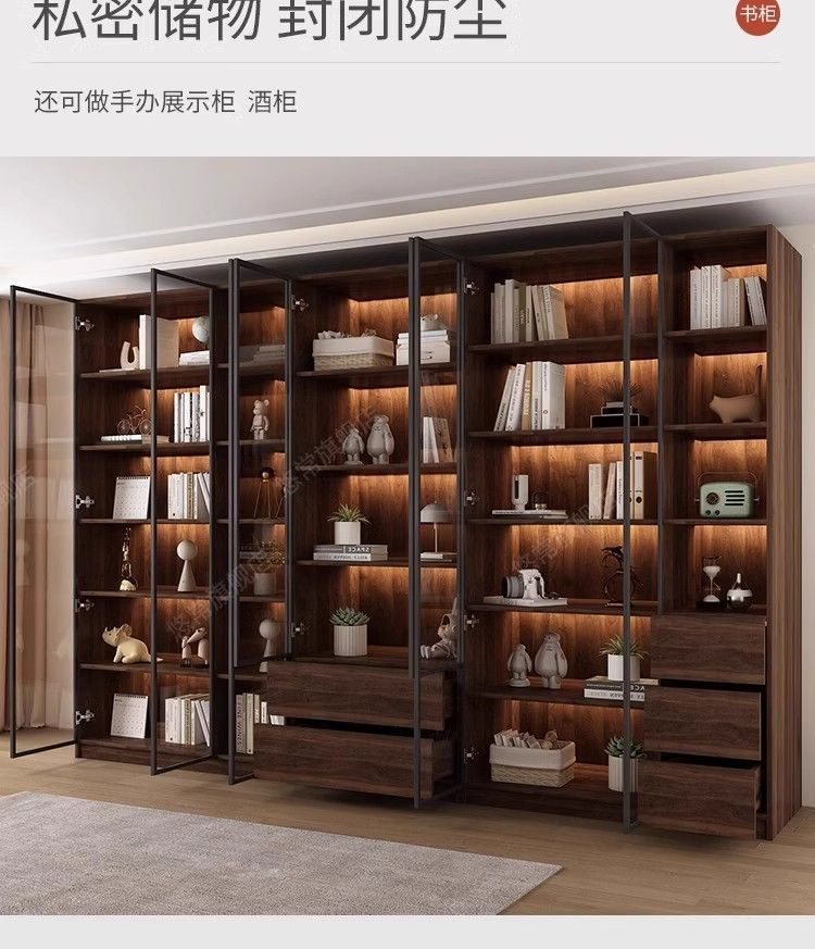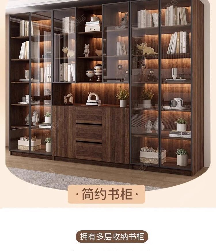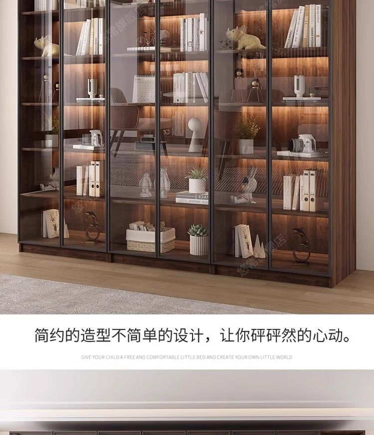 책장 홈 일체형 벽에서 천장까지 책장 유리문 방진 수납 캐비닛 사무실 파일 수납 캐비닛스토어 가기