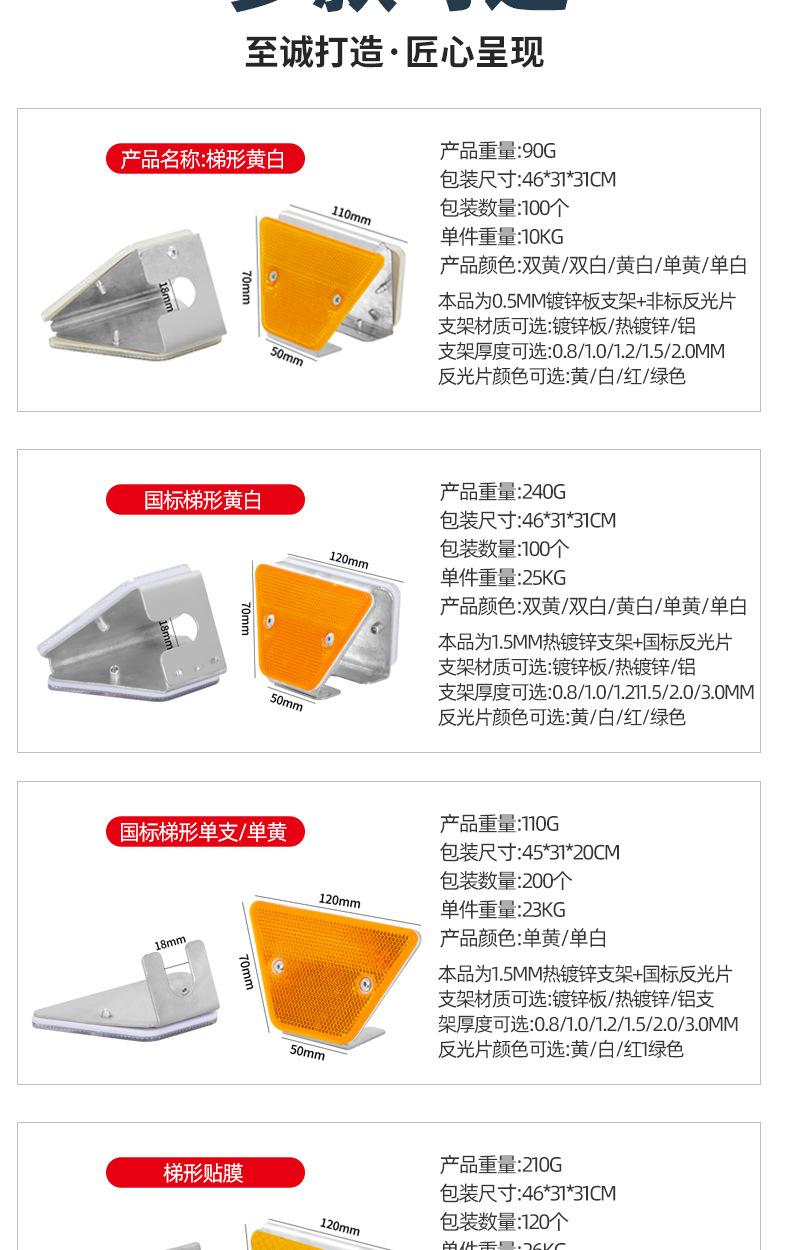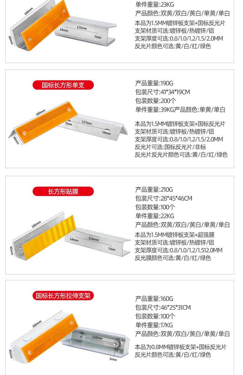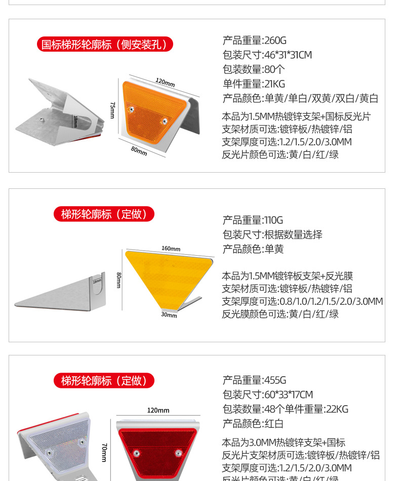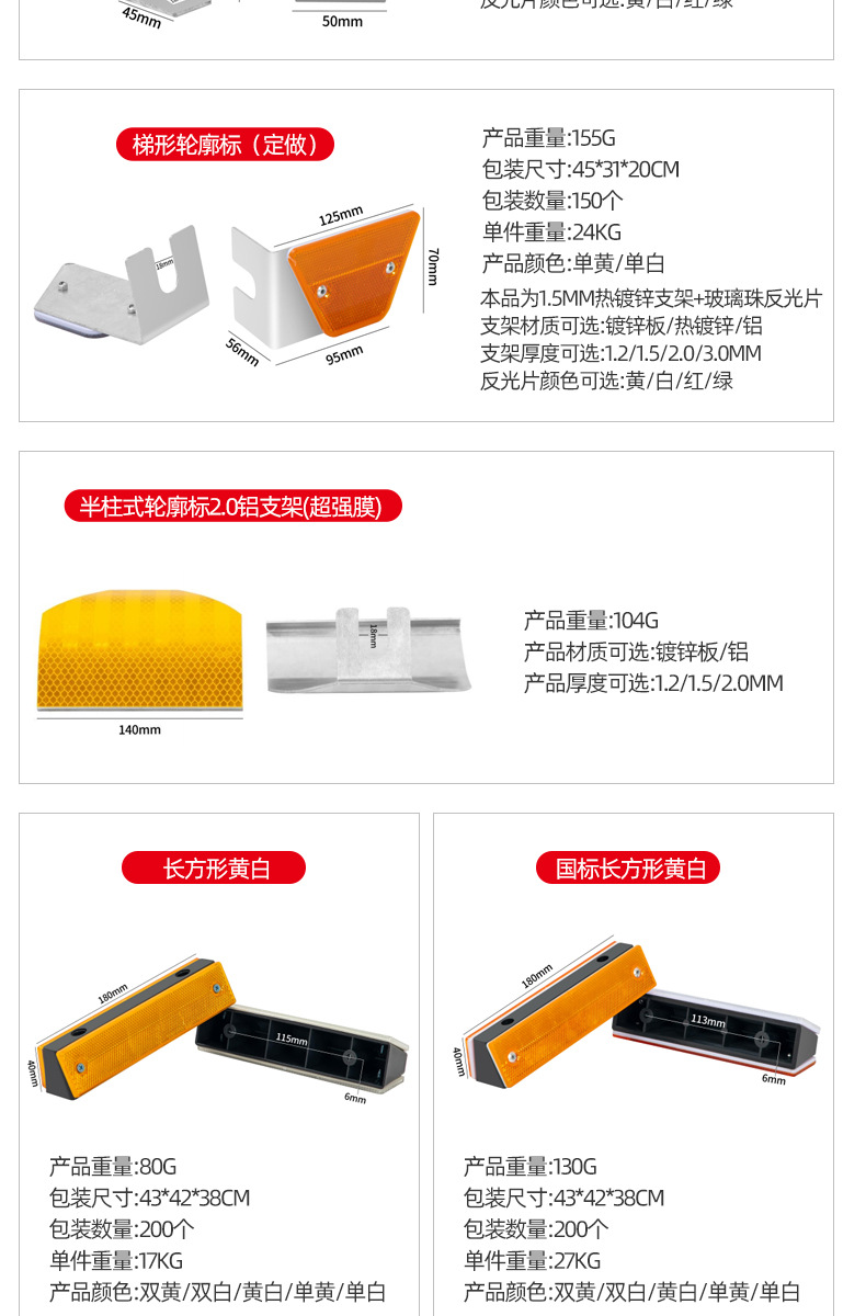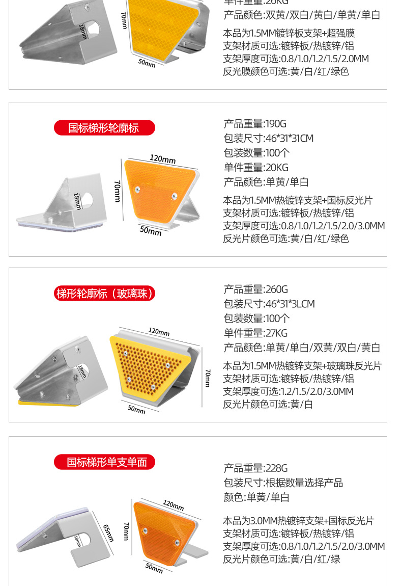 도로 반사 윤곽 표시 단일 및 양면 고속도로 교통 안전 표시 국가 표준 사다리꼴 윤곽 표시 공급