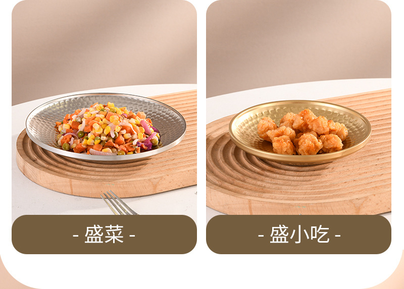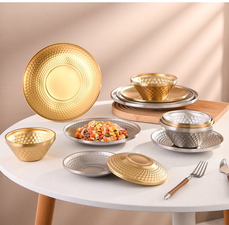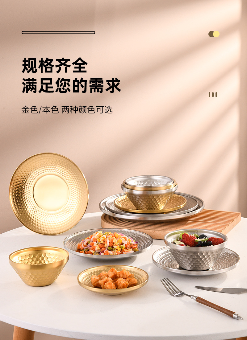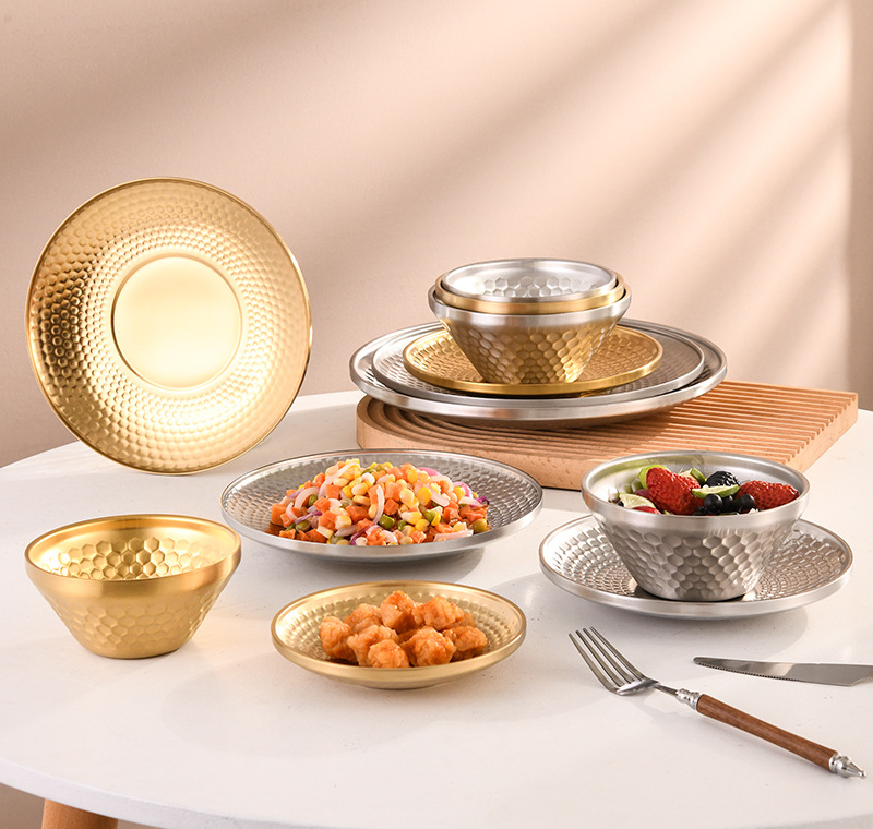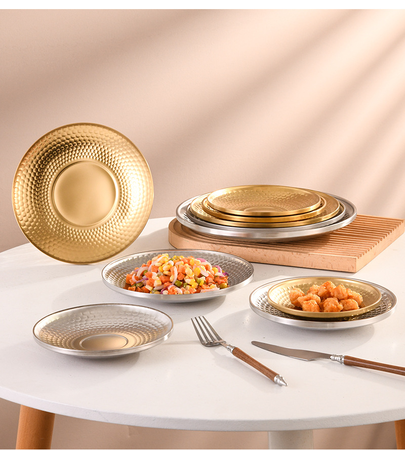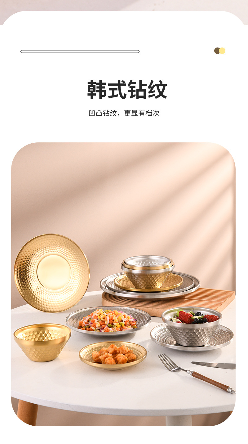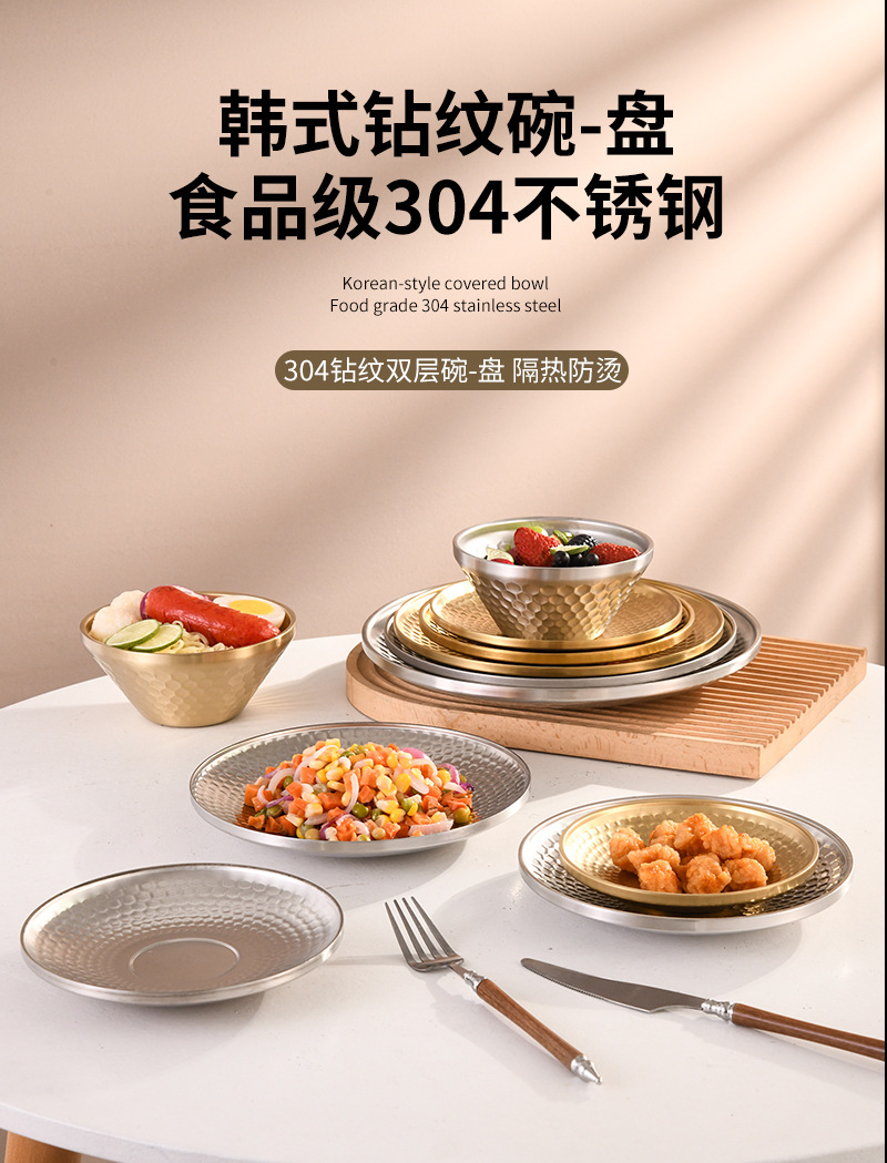 304 이중층 다이아몬드 패턴 접시 V자형 그릇 원형 접시 해머 패턴 바베큐 레스토랑 얕은 접시 스낵 디저트 케이크 피자 아이스 그릇 직접 공급스토어 가기