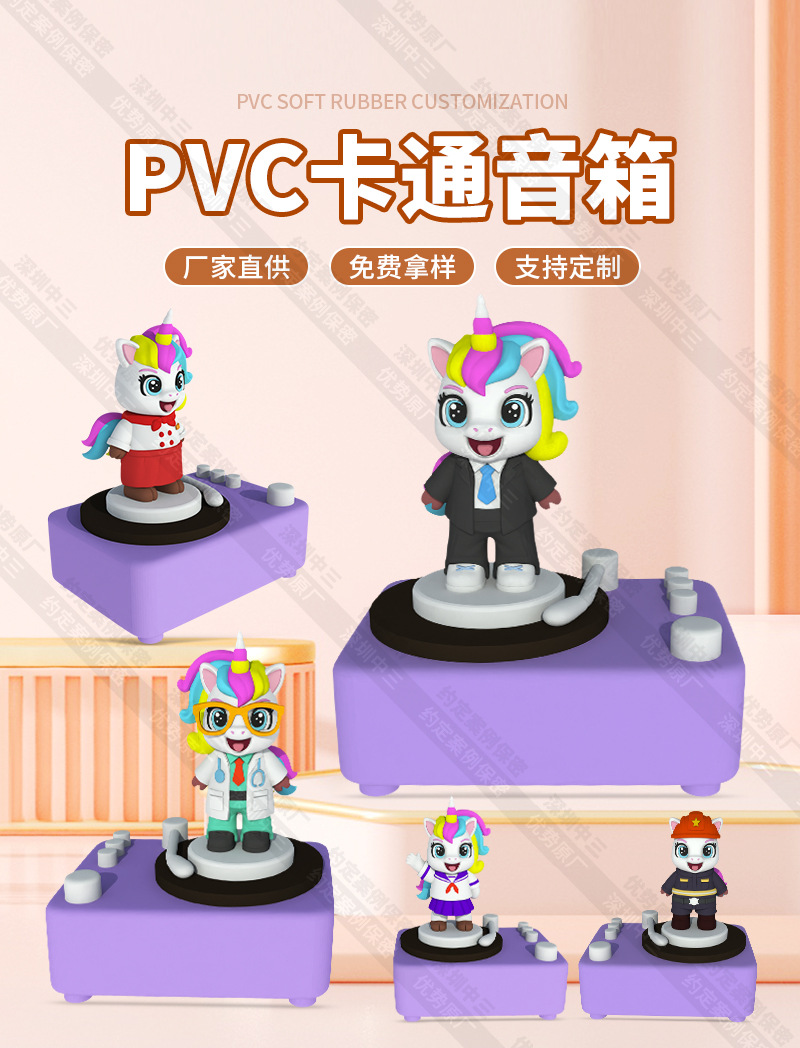 【主营品类】:本厂主要定制生产PVC软胶、硅胶、塑胶等材质的创意卡通类的U盘、移动电源、各类音箱(插卡、蓝牙、智能等)、手机支架、卡通挂饰和卡通盲盒公仔、无线充、数据充电线等,定制个性外形和功能,具体请咨询业务人员;