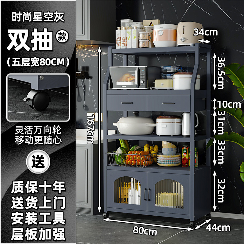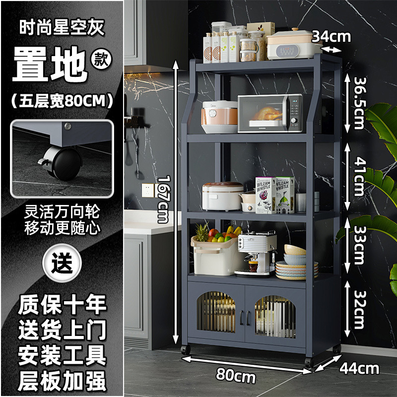 주방 수납 선반 바닥 스탠딩 초두꺼운 다층 다기능 모바일 수납 수납 선반 오븐 전자 레인지 가정용 선반
