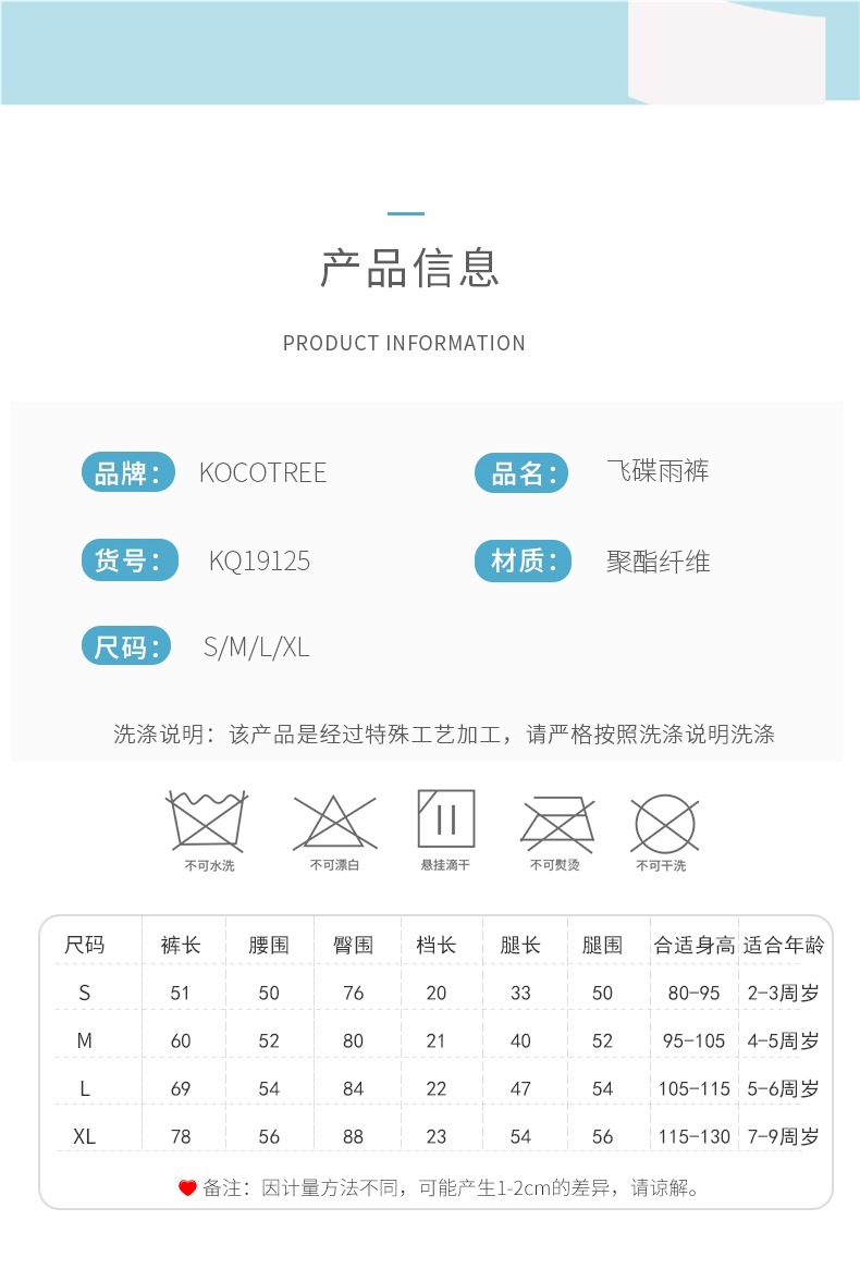 KK 트리 어린이 비옷 소년과 소녀 방수 바지 아기 단일 발 방수 바지 어린이 유치원 물놀이 옷