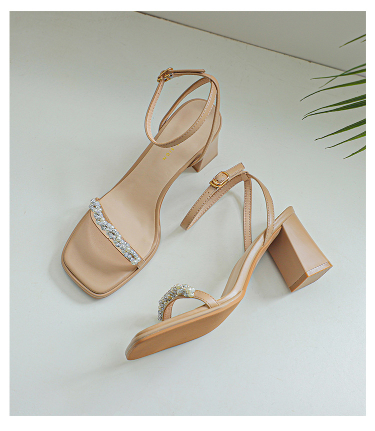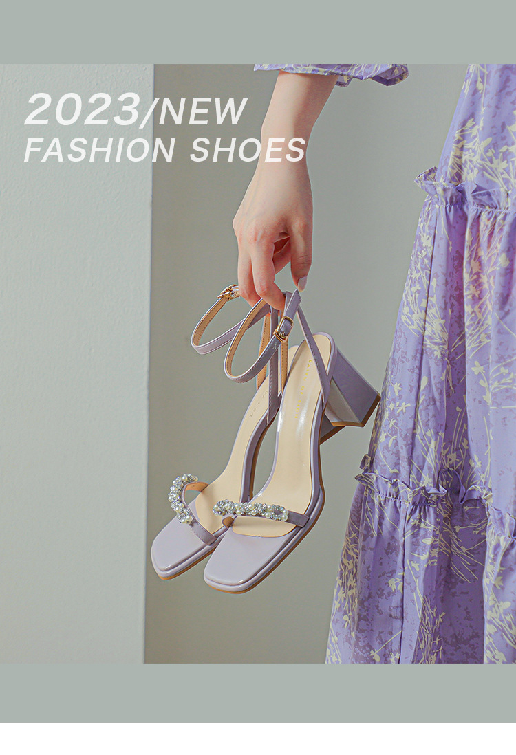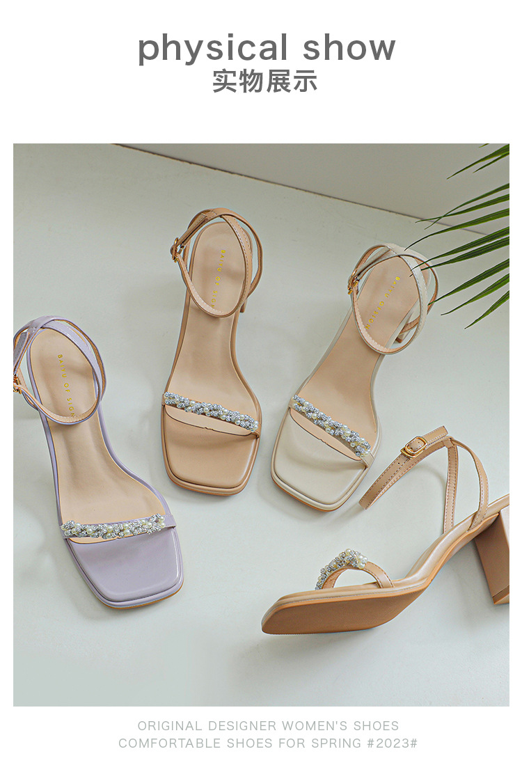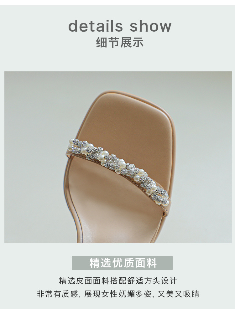 여성을위한 Fuhao 라인스톤 원 스트랩 샌들 2023 여름 신작 여성 오픈 토 신발 두꺼운 굽 패션 심플 캐주얼