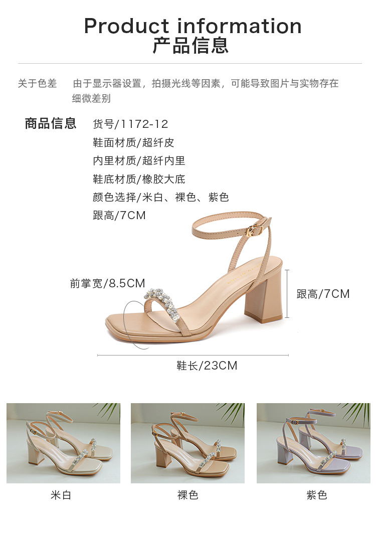 여성을위한 Fuhao 라인스톤 원 스트랩 샌들 2023 여름 신작 여성 오픈 토 신발 두꺼운 굽 패션 심플 캐주얼스토어 가기
