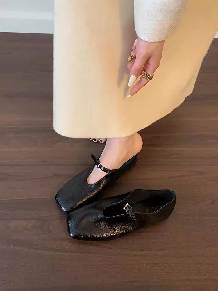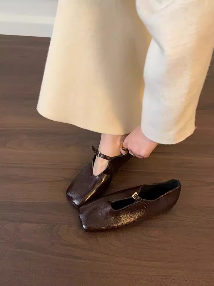 양가죽 버전 ~ 레트로 편안한 스퀘어 토 플랫 슈즈 여성 봄 신작 가죽 할머니 신발 메리 제인 작은 가죽 신발스토어 가기
