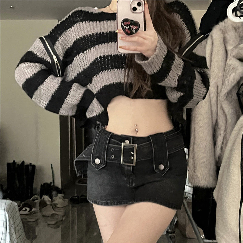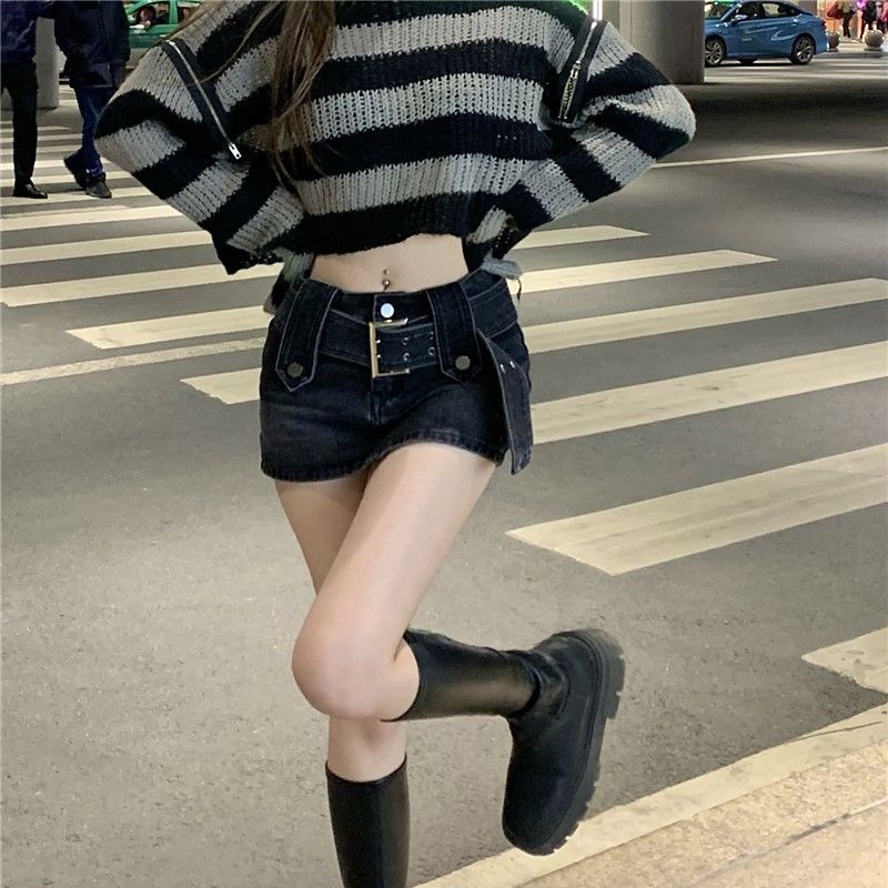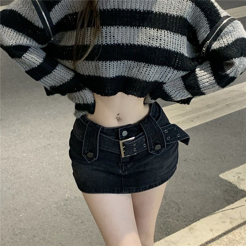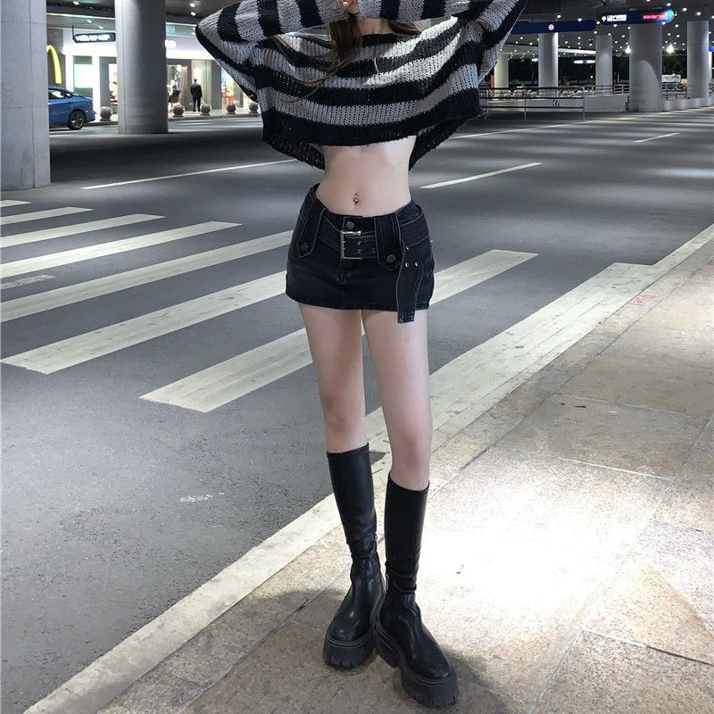 핫 소녀 데님 스커트 여성 여름 착용 2023 새로운 미국 복고풍 하이 웨이스트 A 라인 미니 스커트 스커트스토어 가기