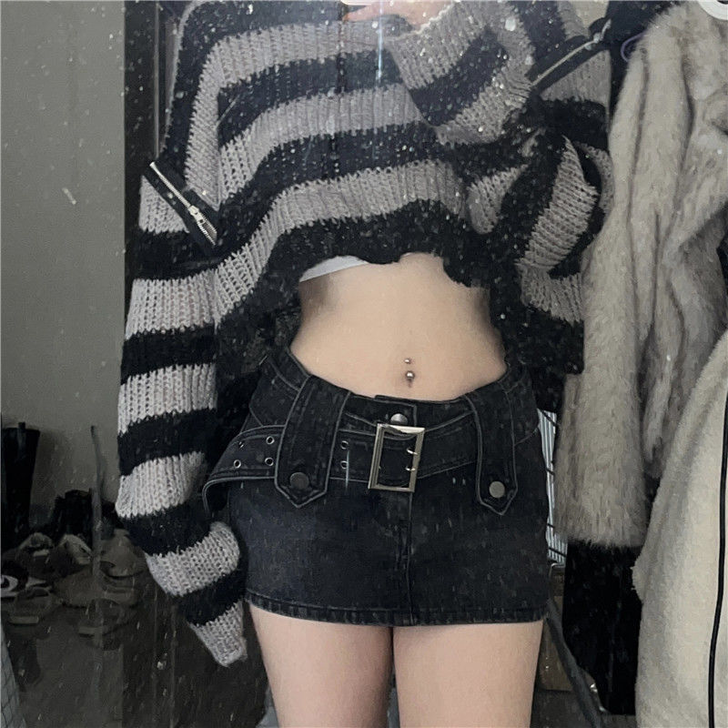 핫 소녀 데님 스커트 여성 여름 착용 2023 새로운 미국 복고풍 하이 웨이스트 A 라인 미니 스커트 스커트