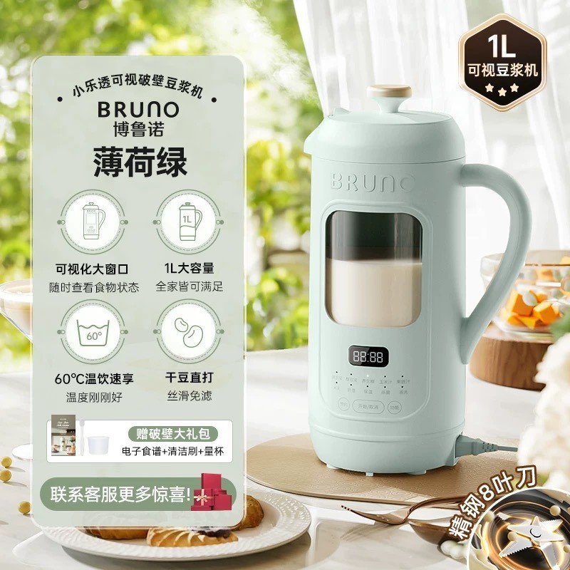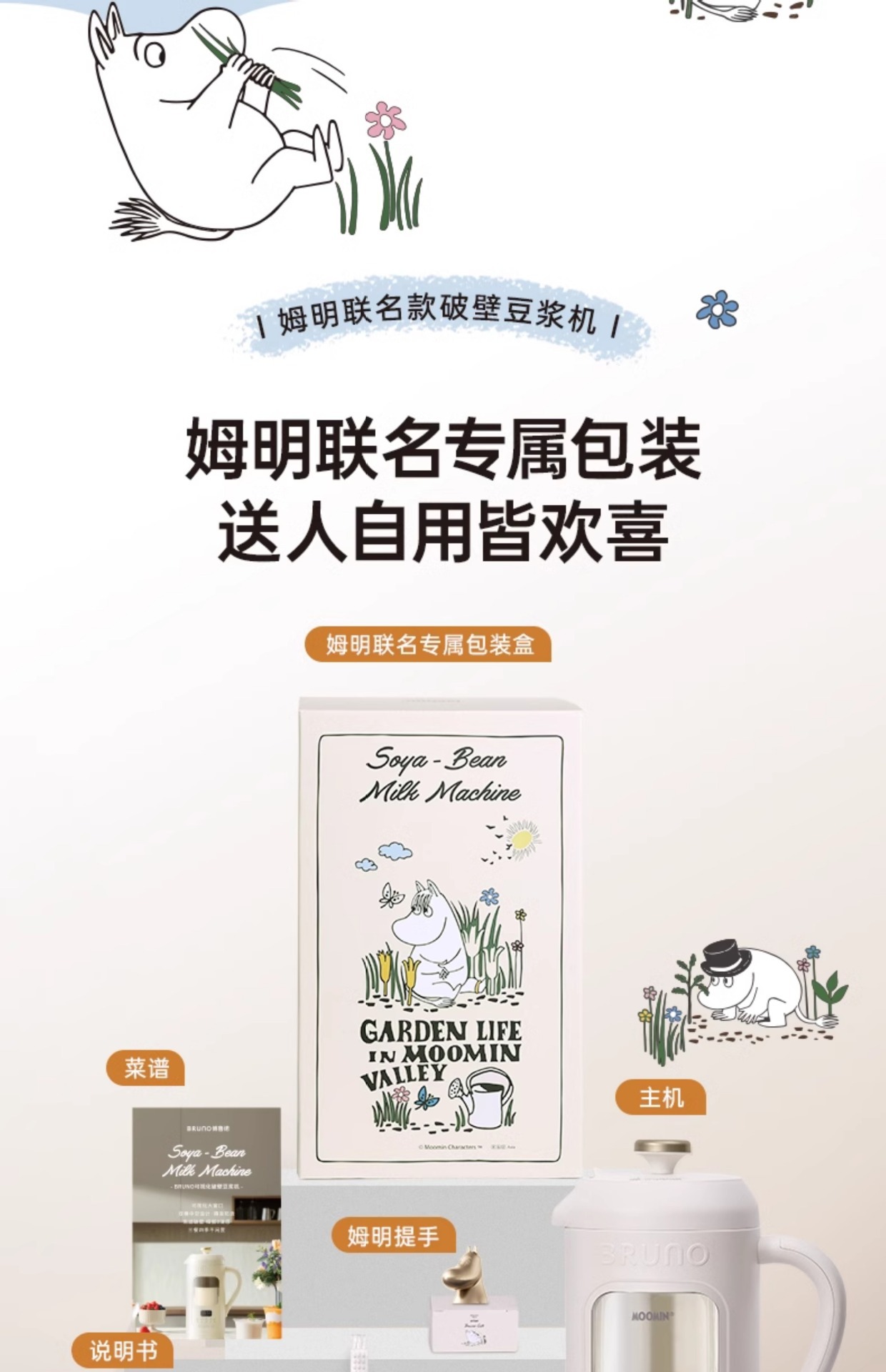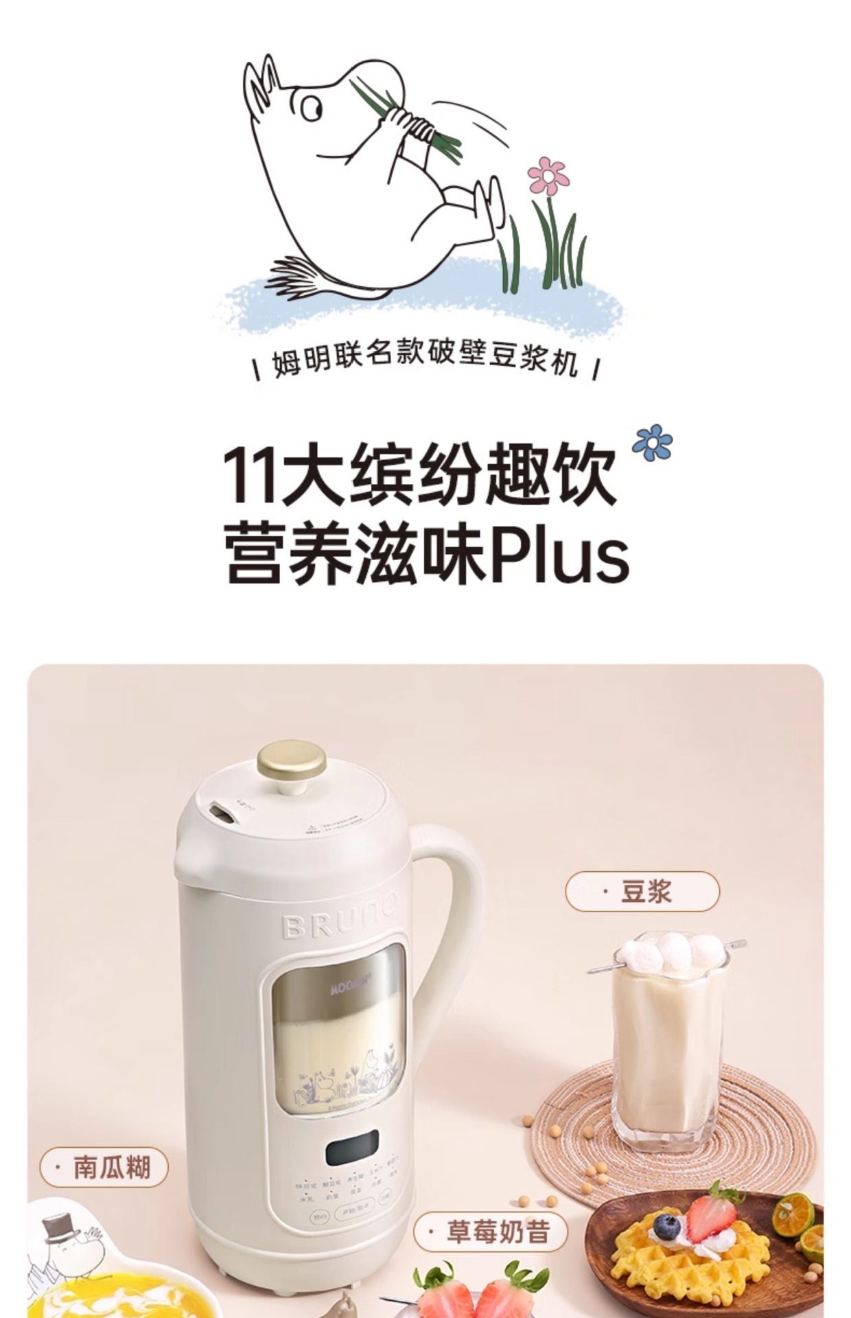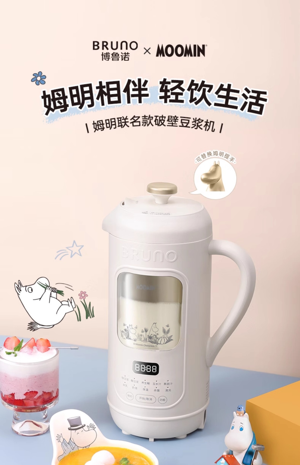 BRUNO 벽 파괴 기계 가정용 소형 시각적 두유 기계 완전 자동 저소음 잔류물없는 미니 공식 Moomin IP스토어 가기