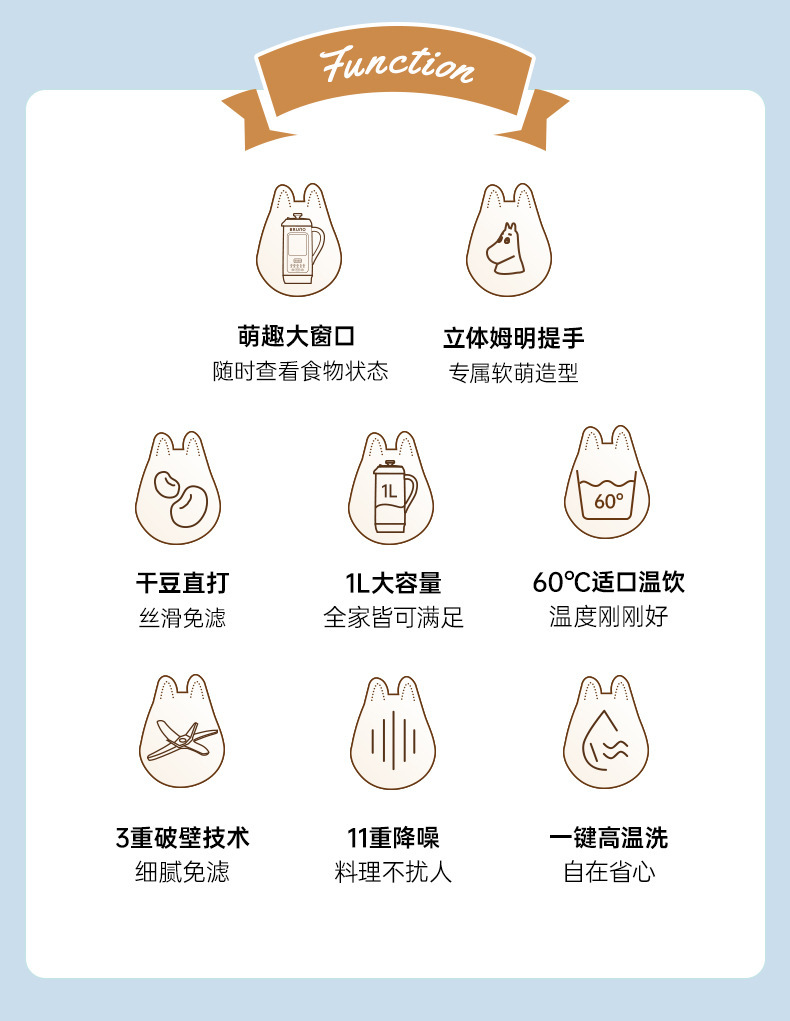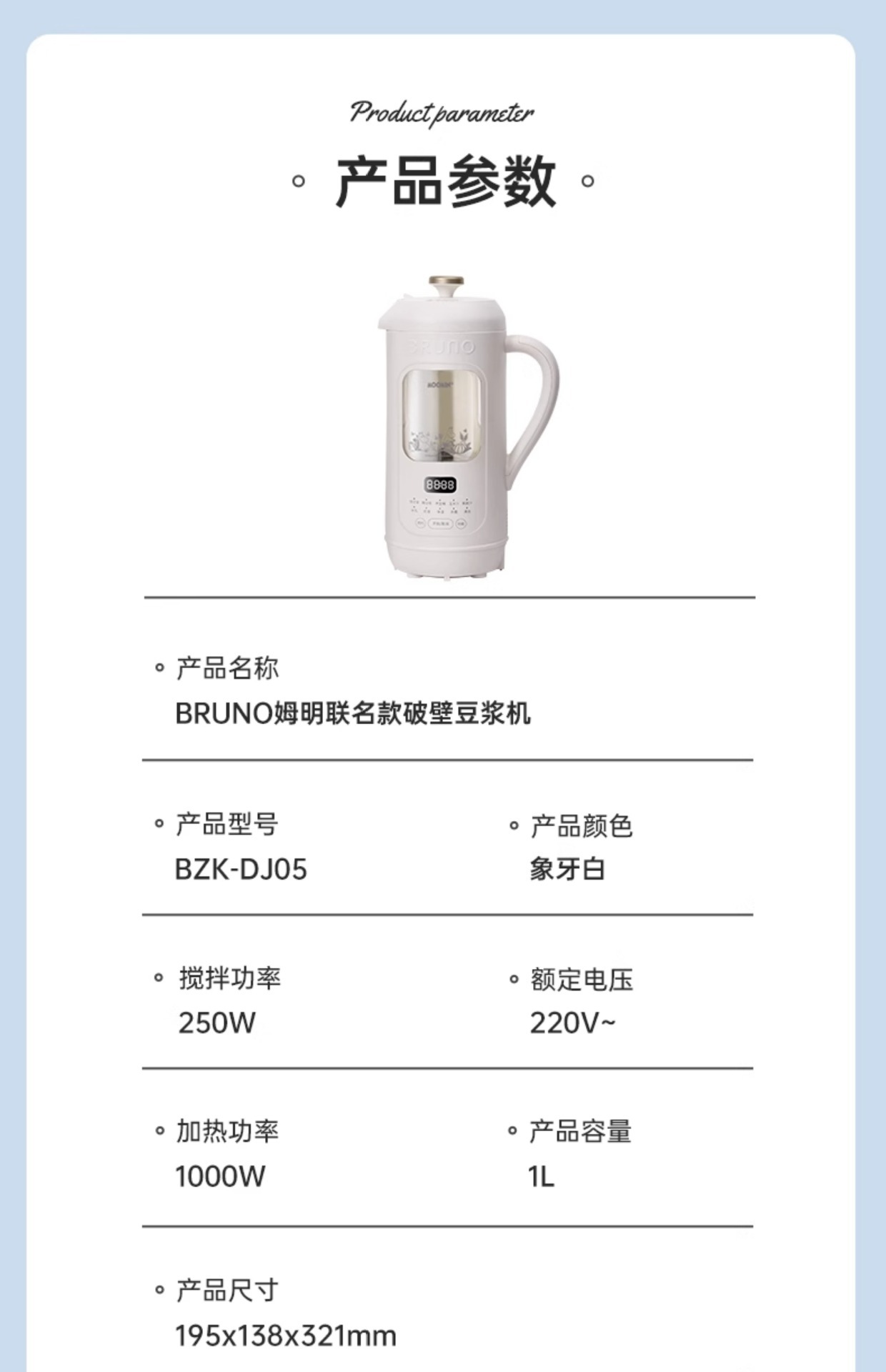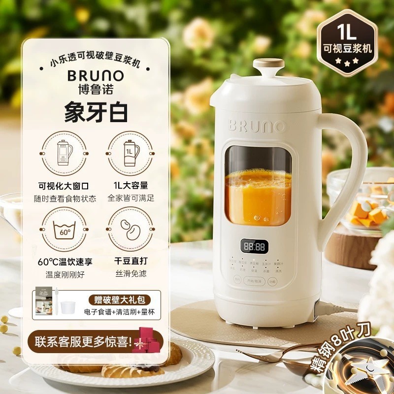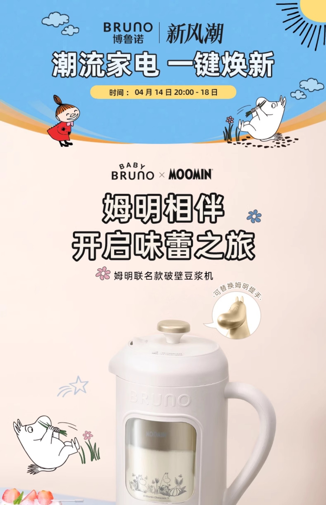 BRUNO 벽 파괴 기계 가정용 소형 시각적 두유 기계 완전 자동 저소음 잔류물없는 미니 공식 Moomin IP스토어 가기