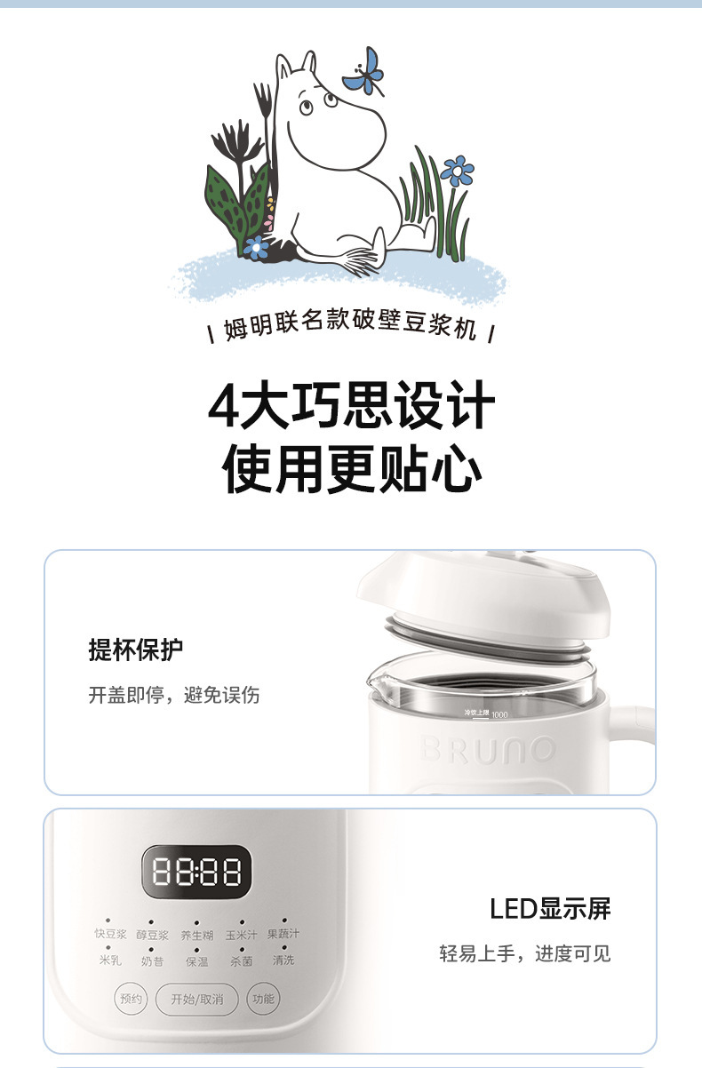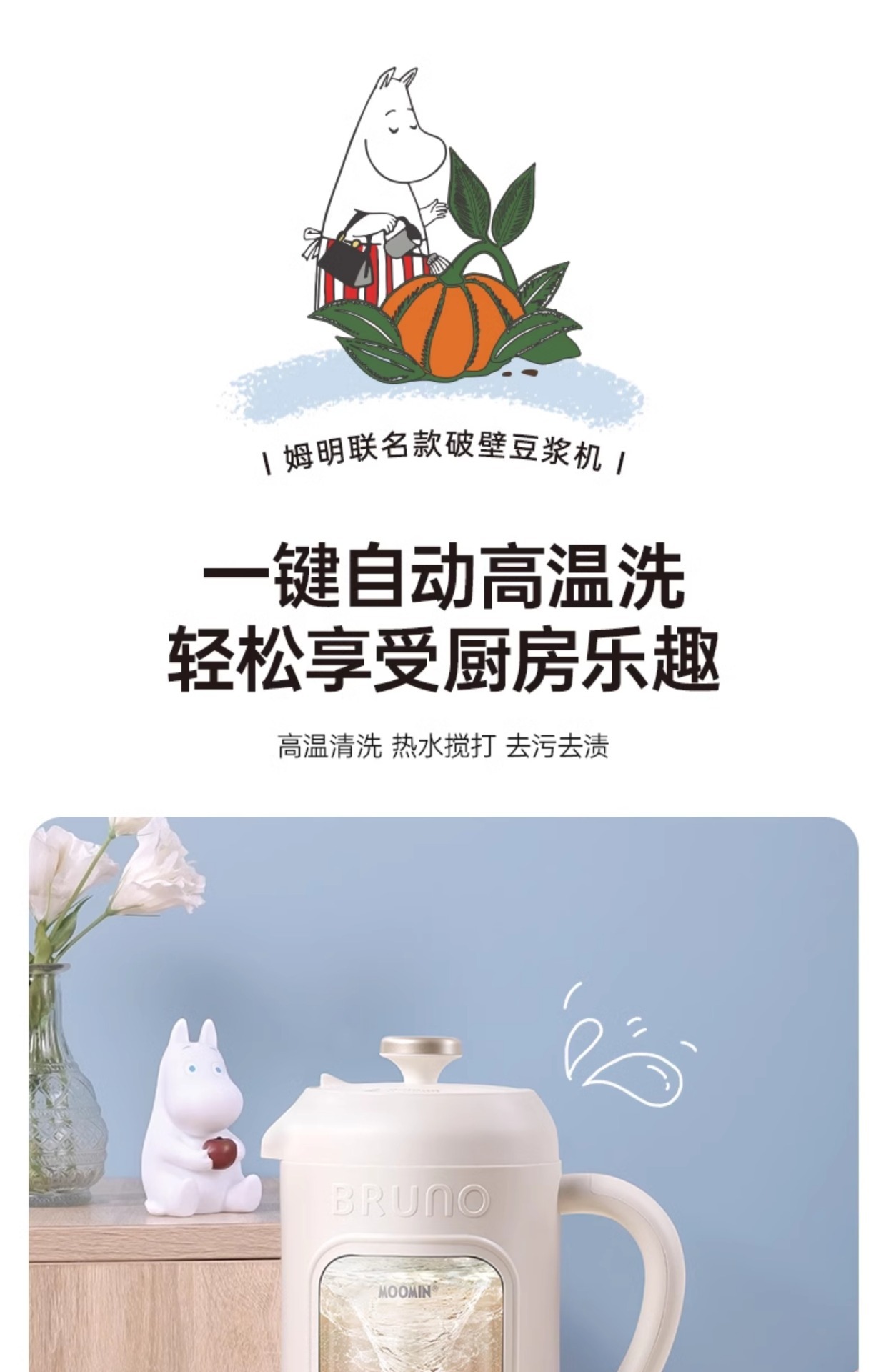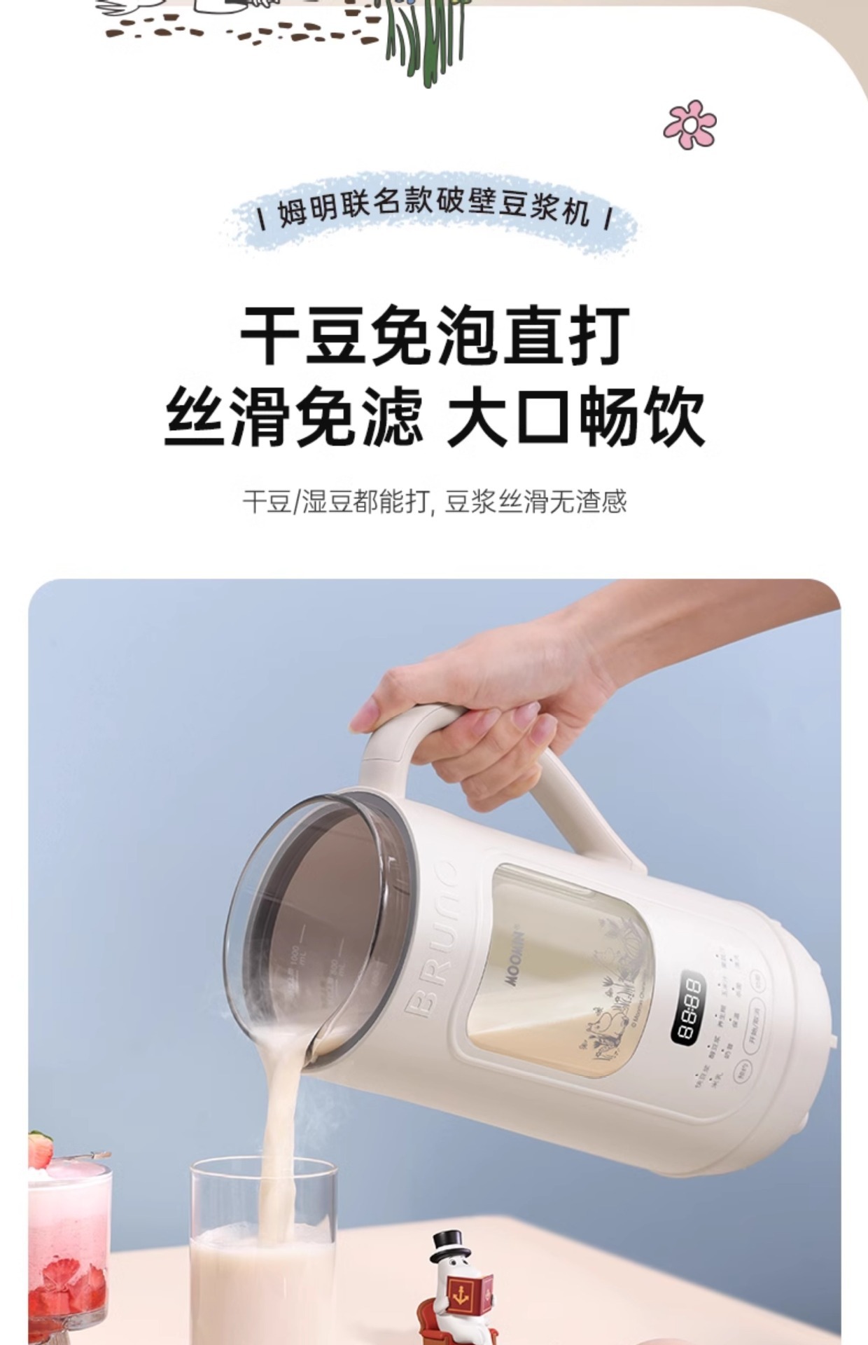 BRUNO 벽 파괴 기계 가정용 소형 시각적 두유 기계 완전 자동 저소음 잔류물없는 미니 공식 Moomin IP